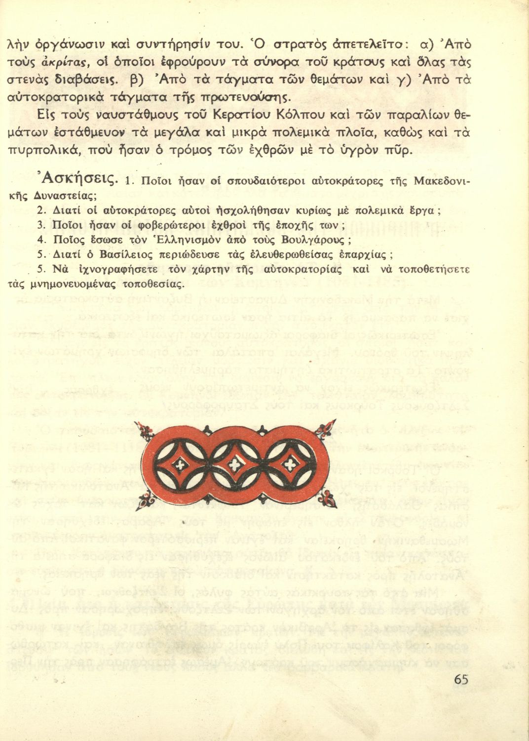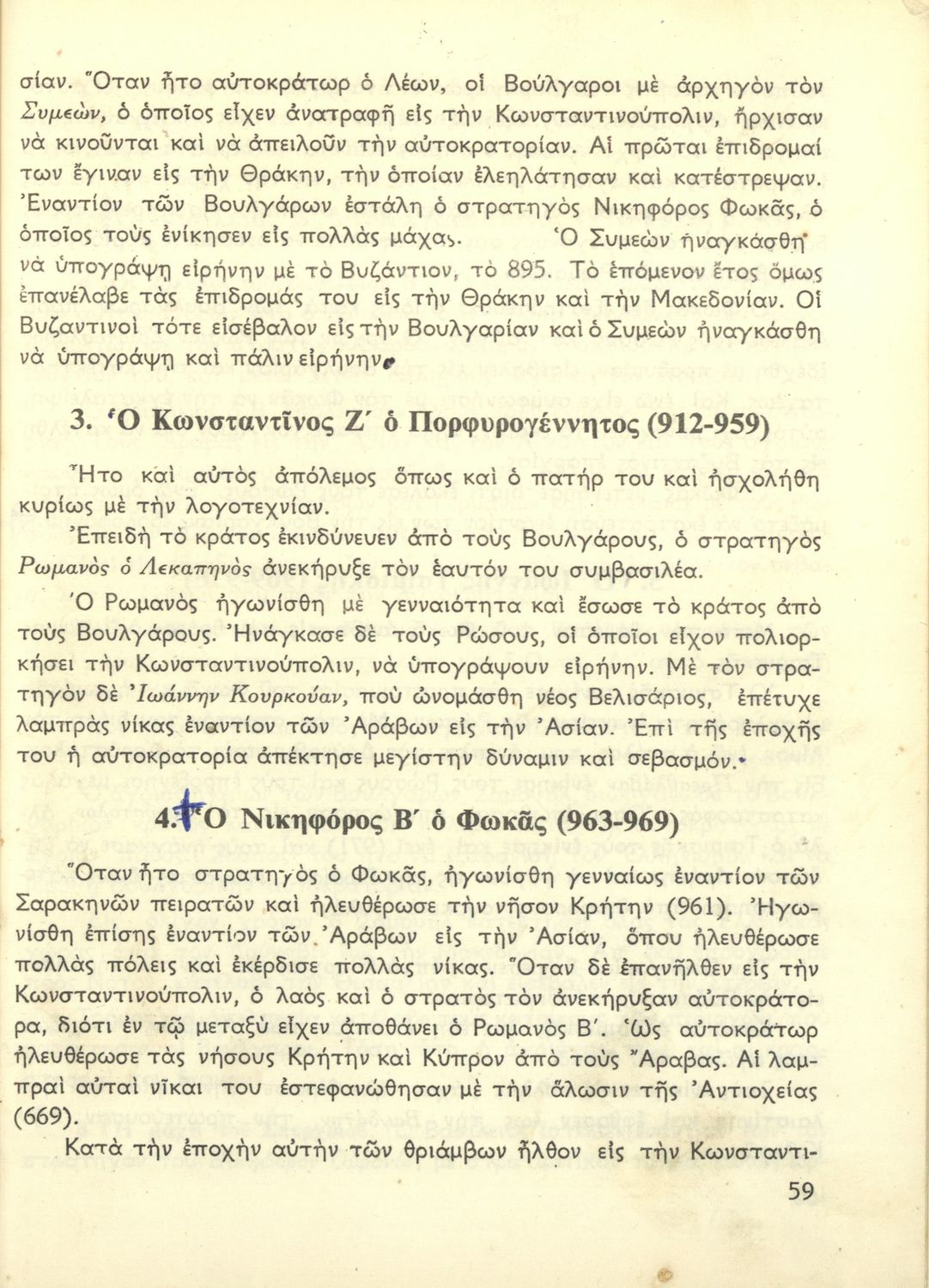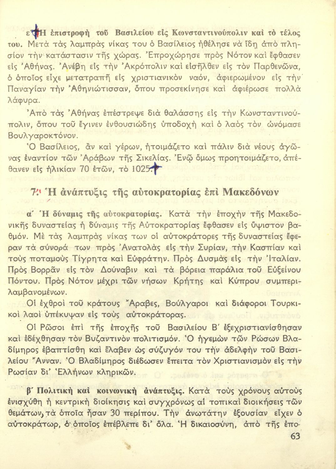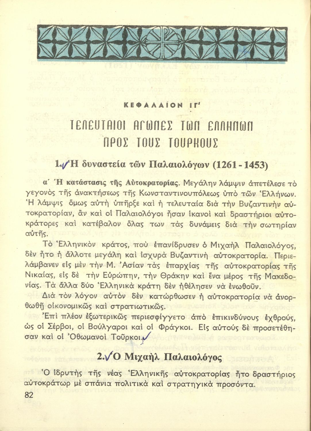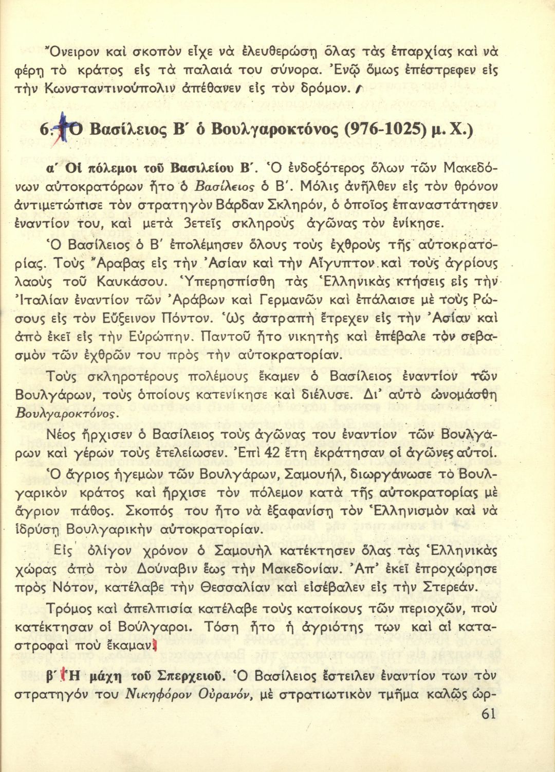 Κωδικός αναγνώρισης: 01-18735 Τίτλος: Ιστορία της Βυζαντινής Αυτοκρατορίας δια την Ε΄ τάξιν των Δημοτικών Σχολείων Συγγραφέας: Μιχαήλ Β. Μπίγκας Μέγεθος και υπόστρωμα: Μαθητικό βοήθημα, 19εκ., 109 σελίδες. Σκίτσα (ασπρόμαυρα και έγχρωμα), εξώφυλλο (έγχρωμο). |