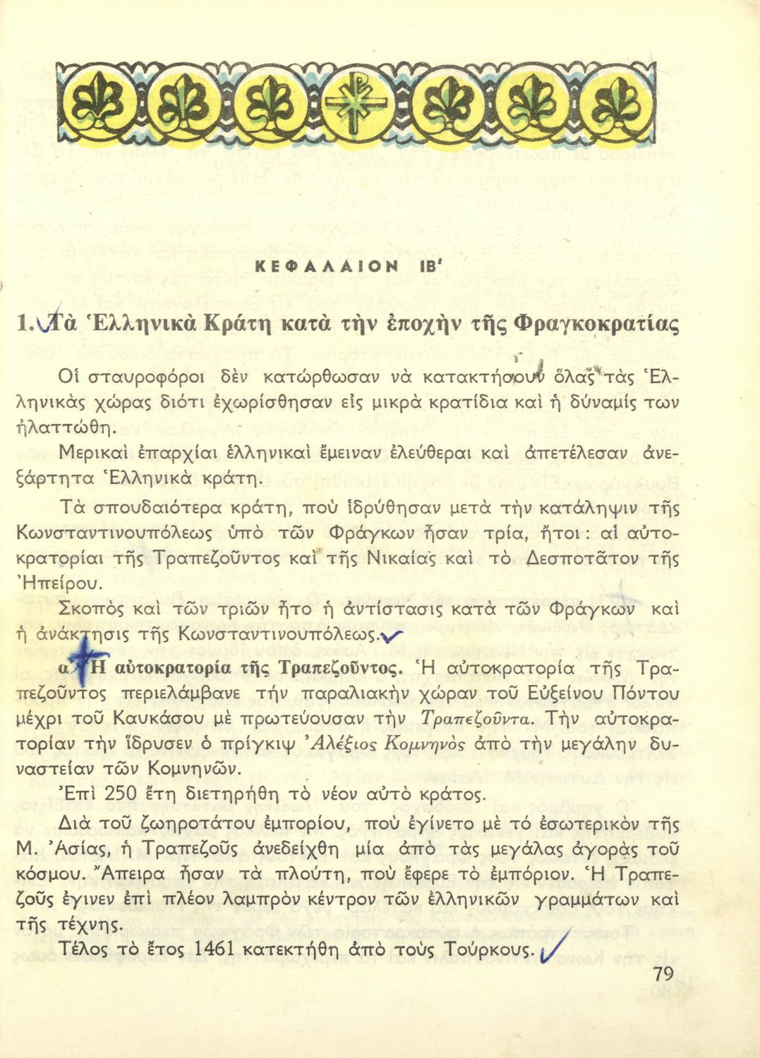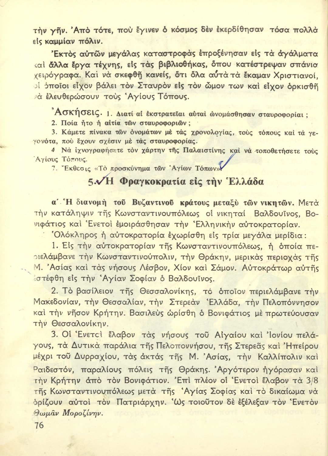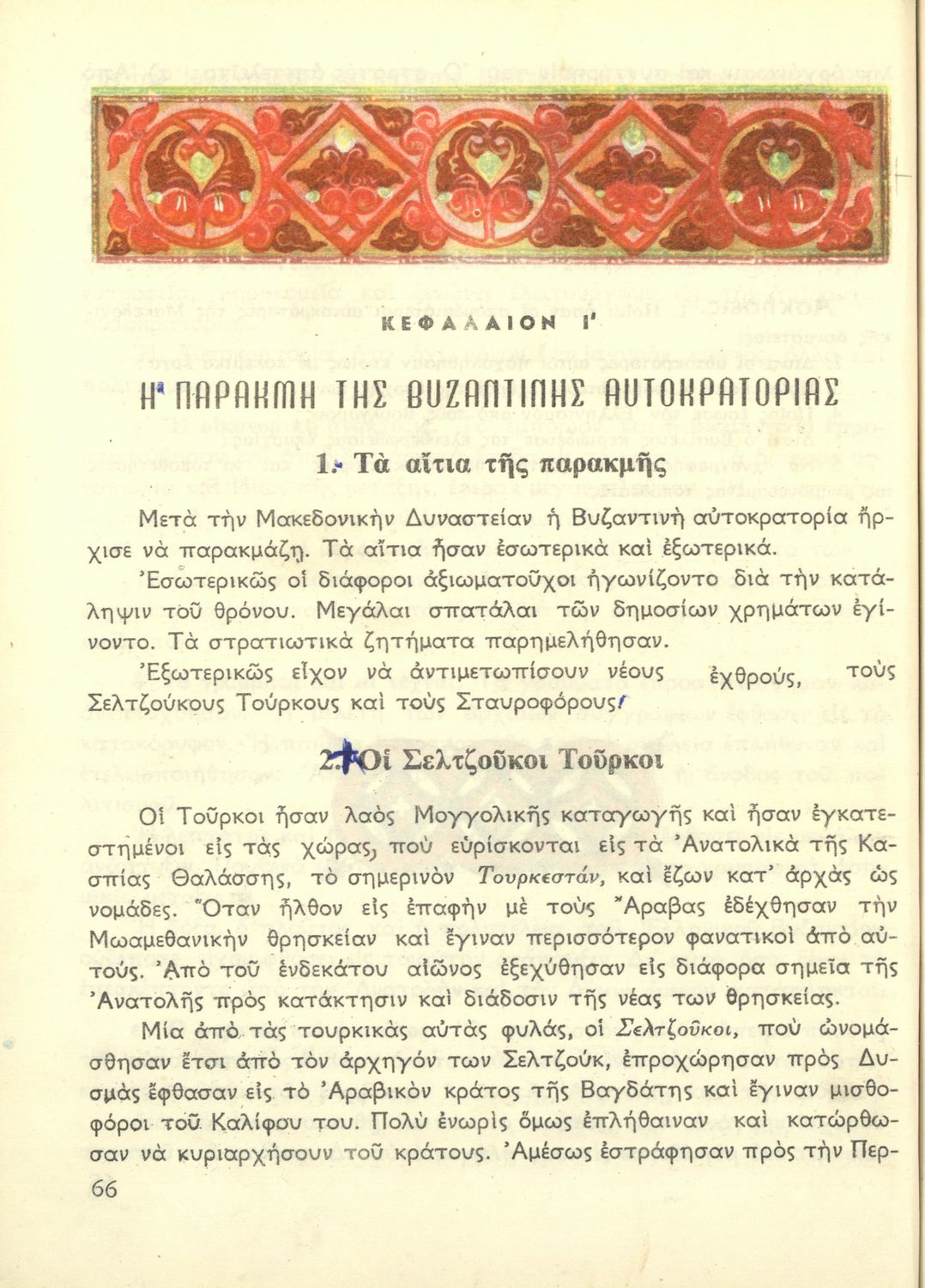 LDR 01090 2200193 4500 035 ## _a01-18735 040 ## _aΙνστιτούτο Εκπαιδευτικής Πολιτικής 041 ## _ael 100 ## _aΜιχαήλ Β. Μπίγκας 110 ## _a18735 245 0# _aΙστορία της Βυζαντινής Αυτοκρατορίας δια την Ε΄ τάξιν των Δημοτικών Σχολείων 260 ## _aΑθήνα _bΚόσμος Α. Ε _c1956 300 ## _a109 _bΣκίτσα (ασπρόμαυρα και έγχρωμα), εξώφυλλο (έγχρωμο) _c19 520 ## _aΜαθητικό βοήθημα Ιστορίας Ε΄ Δημοτικού που καλύπτει το διάστημα από την ίδρυση της Ρωμαϊκής Αυτοκρατορίας ως την Αναγέννηση. 521 ## _aΕ' Δημοτικού 522 ## _aΕλλάδα 546 ## _aΑπλή καθαρεύουσα 583 ## _a67002/15-6-1956 _c1956 650 #4 _aΘεοδόσιος _aΙουστινιανός Φράγκοι _aΣταυροφορίες _aΣχίσμα εκκλησιών