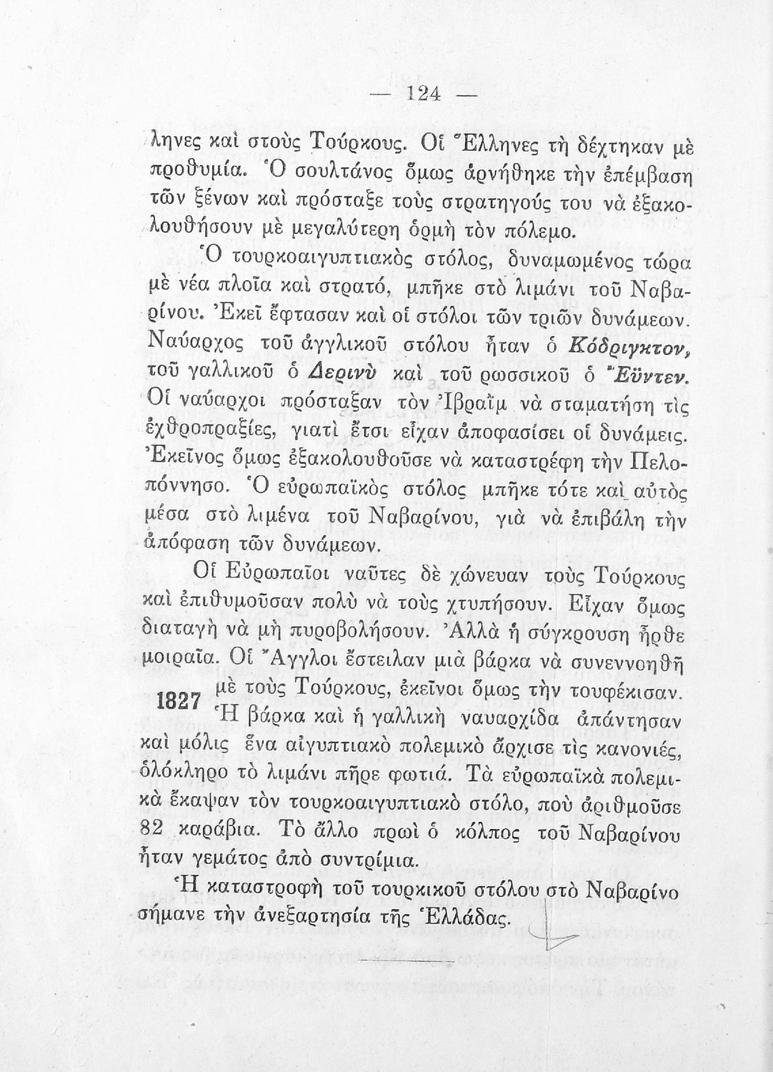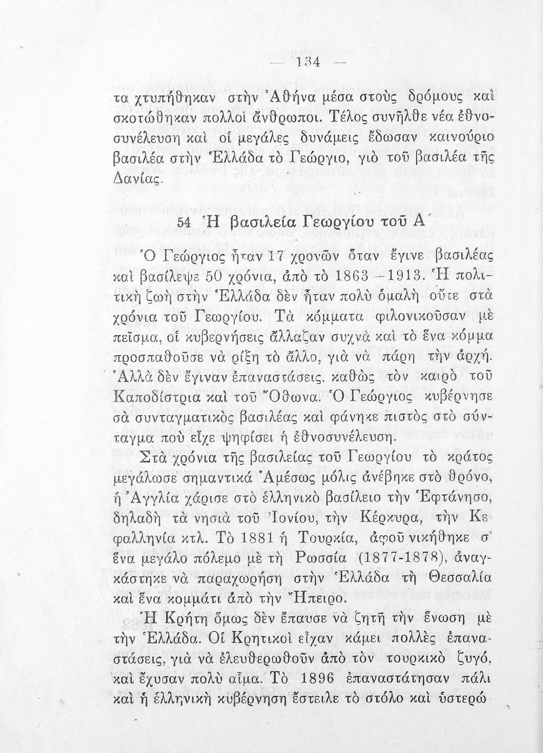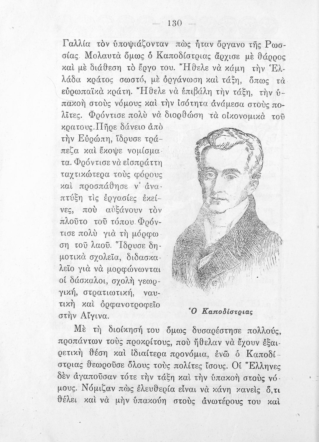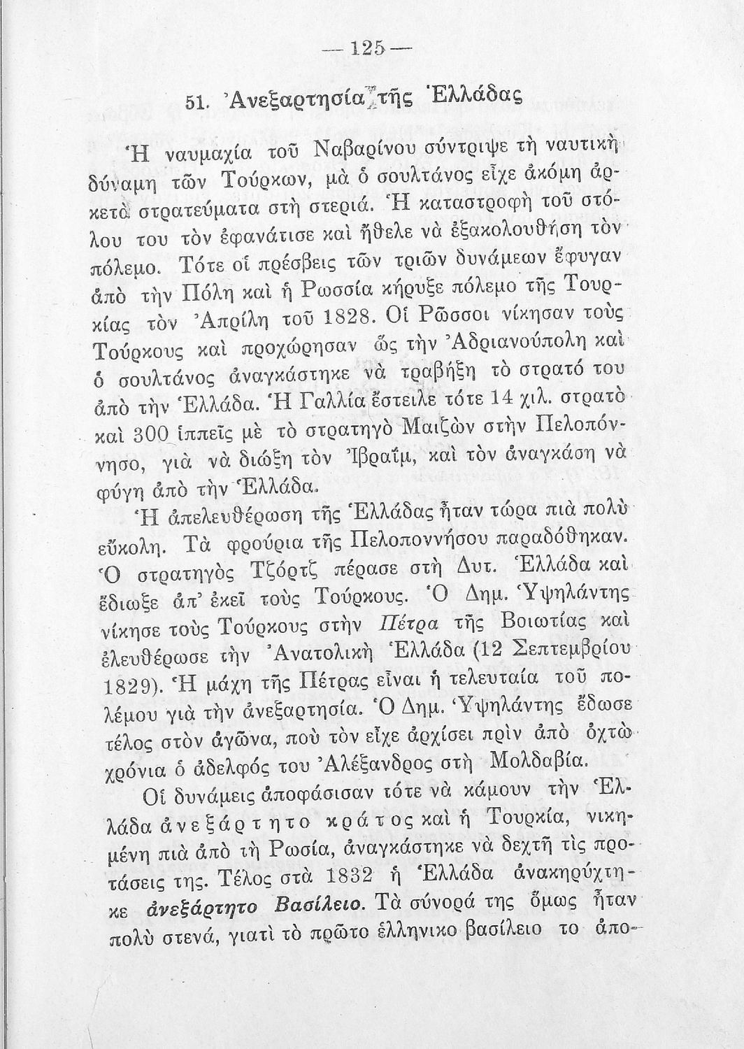 Μαθητικό βοήθημα της ΣΤ΄ Δημοτικού για το μάθημα της Ιστορίας. Καλύπτει τα χρόνια από την άλωσης της Κωνσταντινούπολης, την Οθωμανική Κυριαρχία, αφιερώνει το μεγαλύτερο μέρος στην Ελληνική Επανάσταση. Περιέχει εικόνες των ηρώων. Συνοπτικά αναφέρεται στα ιστορικά γεγονότα του ελεύθερου κράτους μέχρι το 1924. Απουσιάζει το γεγονός της Μικρασιατικής Καταστροφής, της Λωζάννης, το προσφυγικό ζήτημα ενώ αναφέρεται η ανακήρυξη της Δημοκρατίας το 1924. Σκοπός του βιβλίου είναι η ανόρθωση του εθνικού φρονήματος μετά τη Μικρασιατική Καταστροφή και το τέλος του αλυτρωτισμού. Το σύγγραμμα ήταν εγκεκριμένο για μια πενταετία 1934-1938.