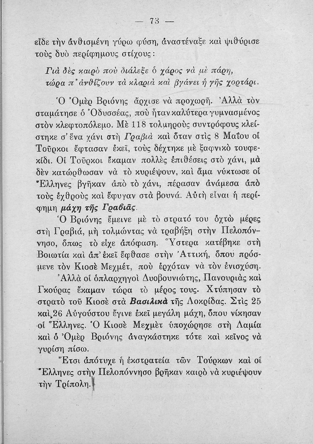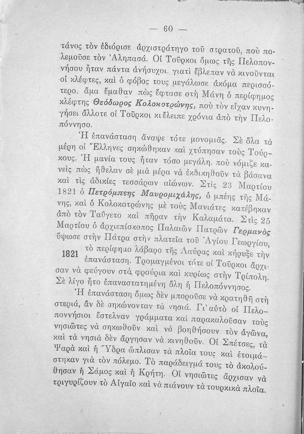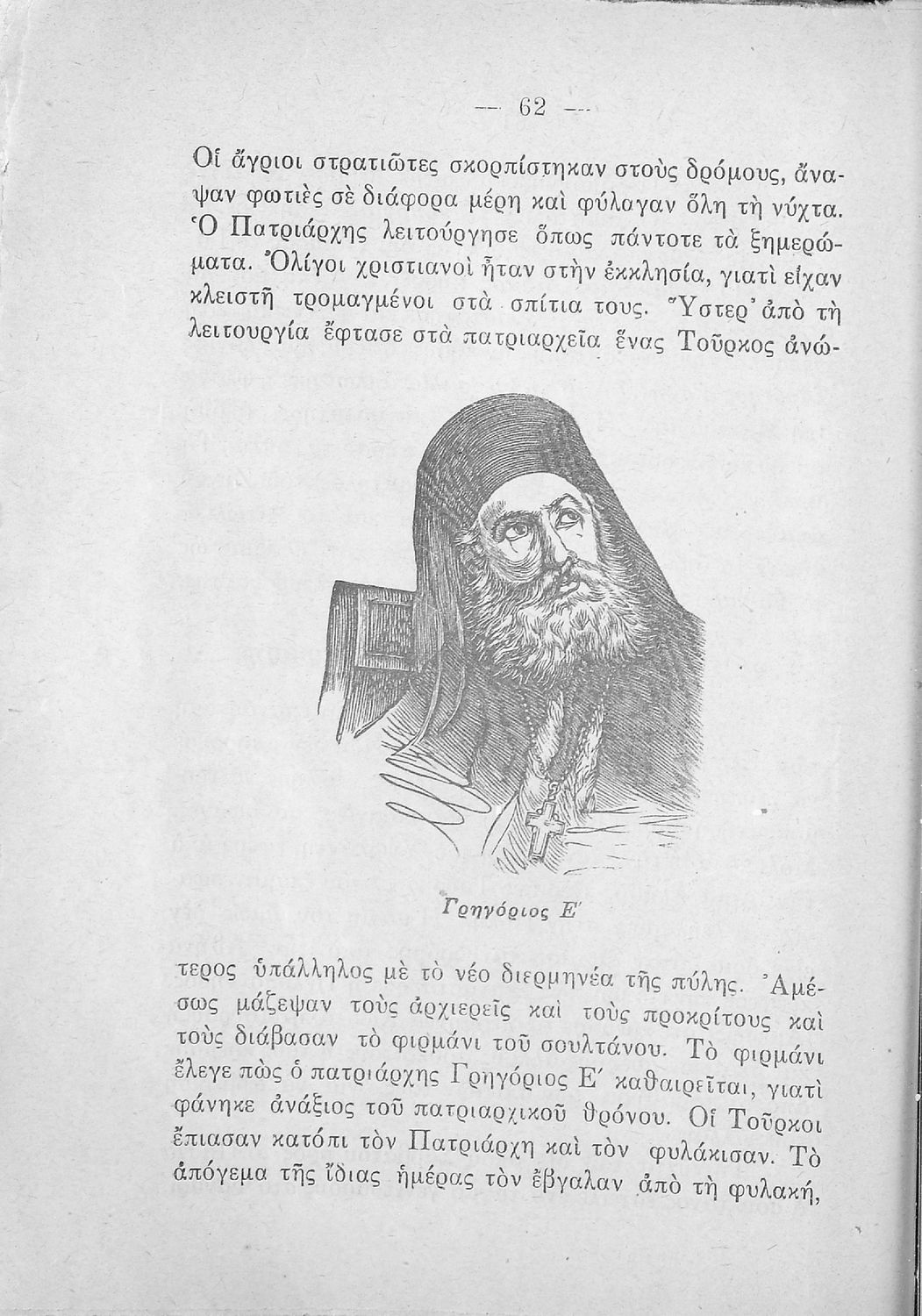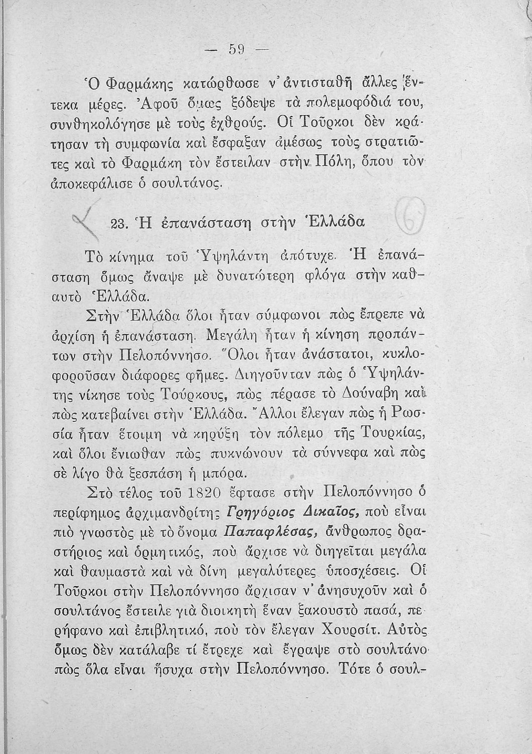 Μαθητικό βοήθημα της ΣΤ΄ Δημοτικού για το μάθημα της Ιστορίας. Καλύπτει τα χρόνια από την άλωσης της Κωνσταντινούπολης, την Οθωμανική Κυριαρχία, αφιερώνει το μεγαλύτερο μέρος στην Ελληνική Επανάσταση. Περιέχει εικόνες των ηρώων. Συνοπτικά αναφέρεται στα ιστορικά γεγονότα του ελεύθερου κράτους μέχρι το 1924. Απουσιάζει το γεγονός της Μικρασιατικής Καταστροφής, της Λωζάννης, το προσφυγικό ζήτημα ενώ αναφέρεται η ανακήρυξη της Δημοκρατίας το 1924. Σκοπός του βιβλίου είναι η ανόρθωση του εθνικού φρονήματος μετά τη Μικρασιατική Καταστροφή και το τέλος του αλυτρωτισμού. Το σύγγραμμα ήταν εγκεκριμένο για μια πενταετία 1934-1938.