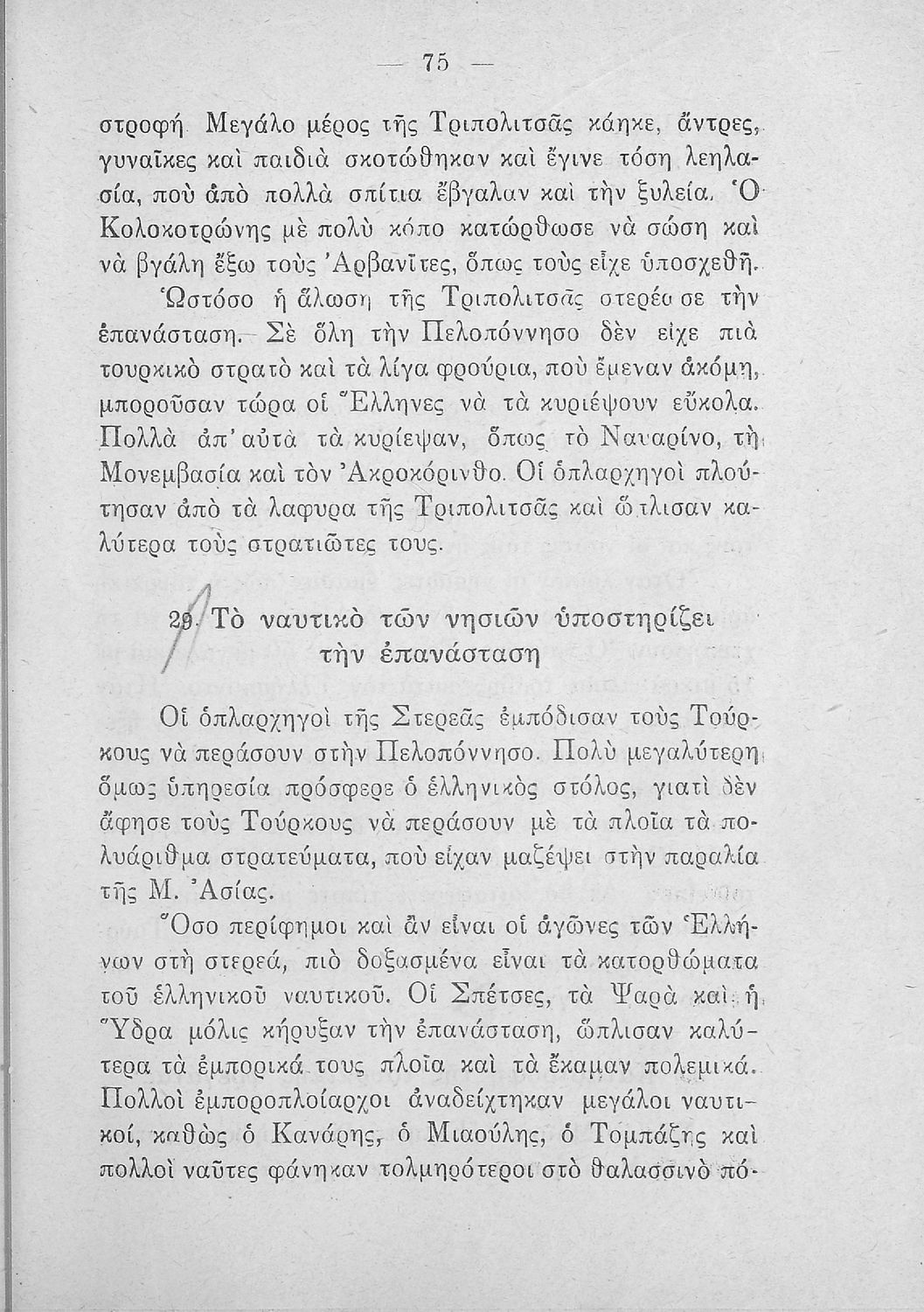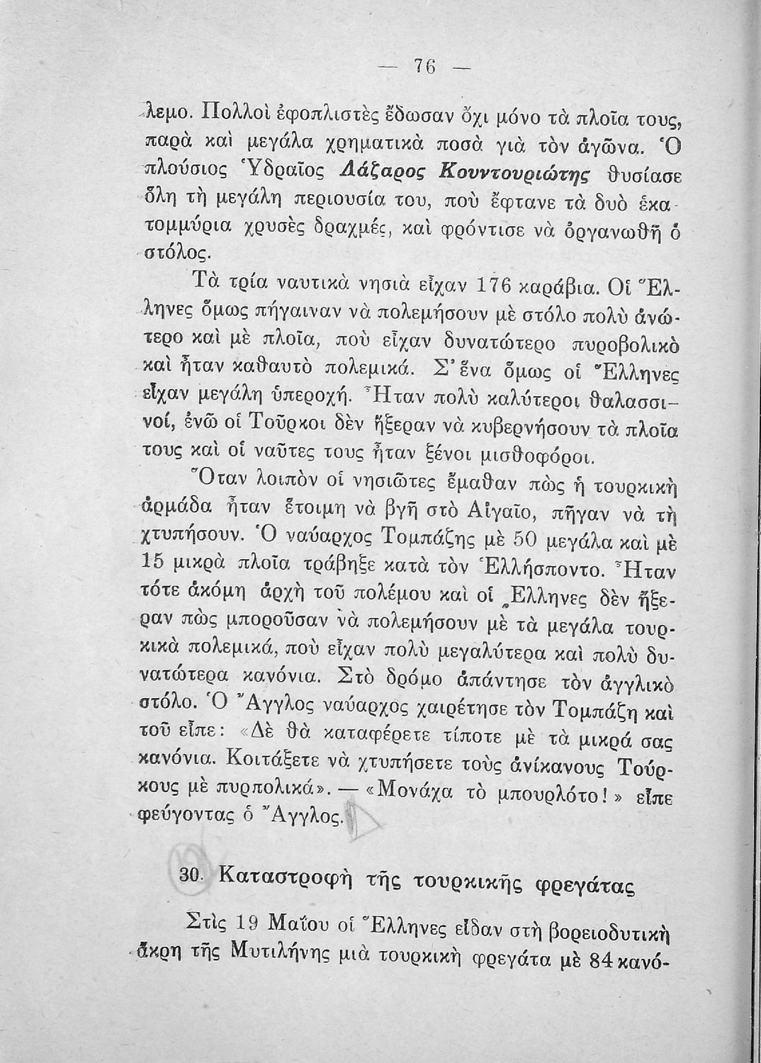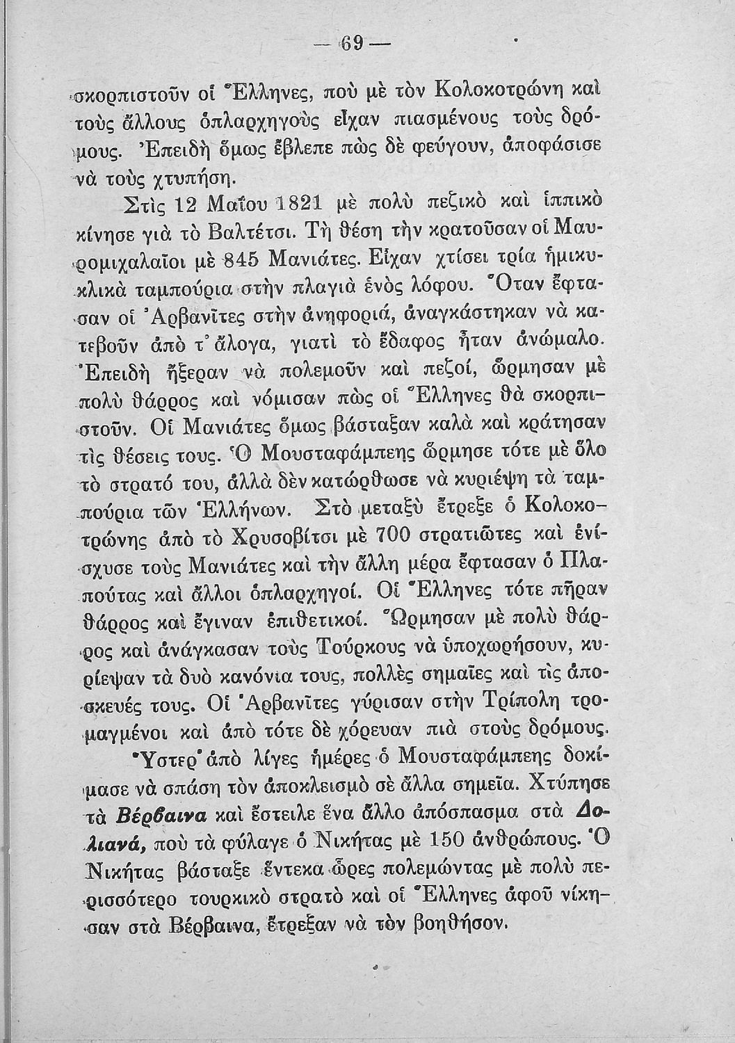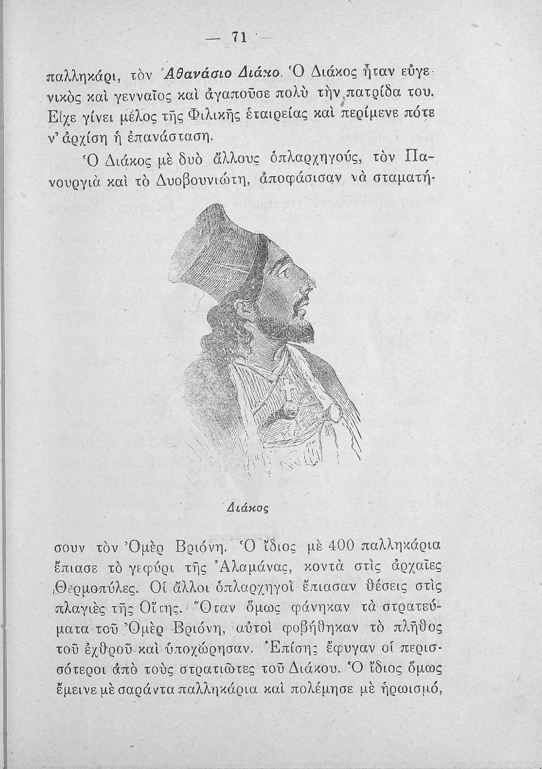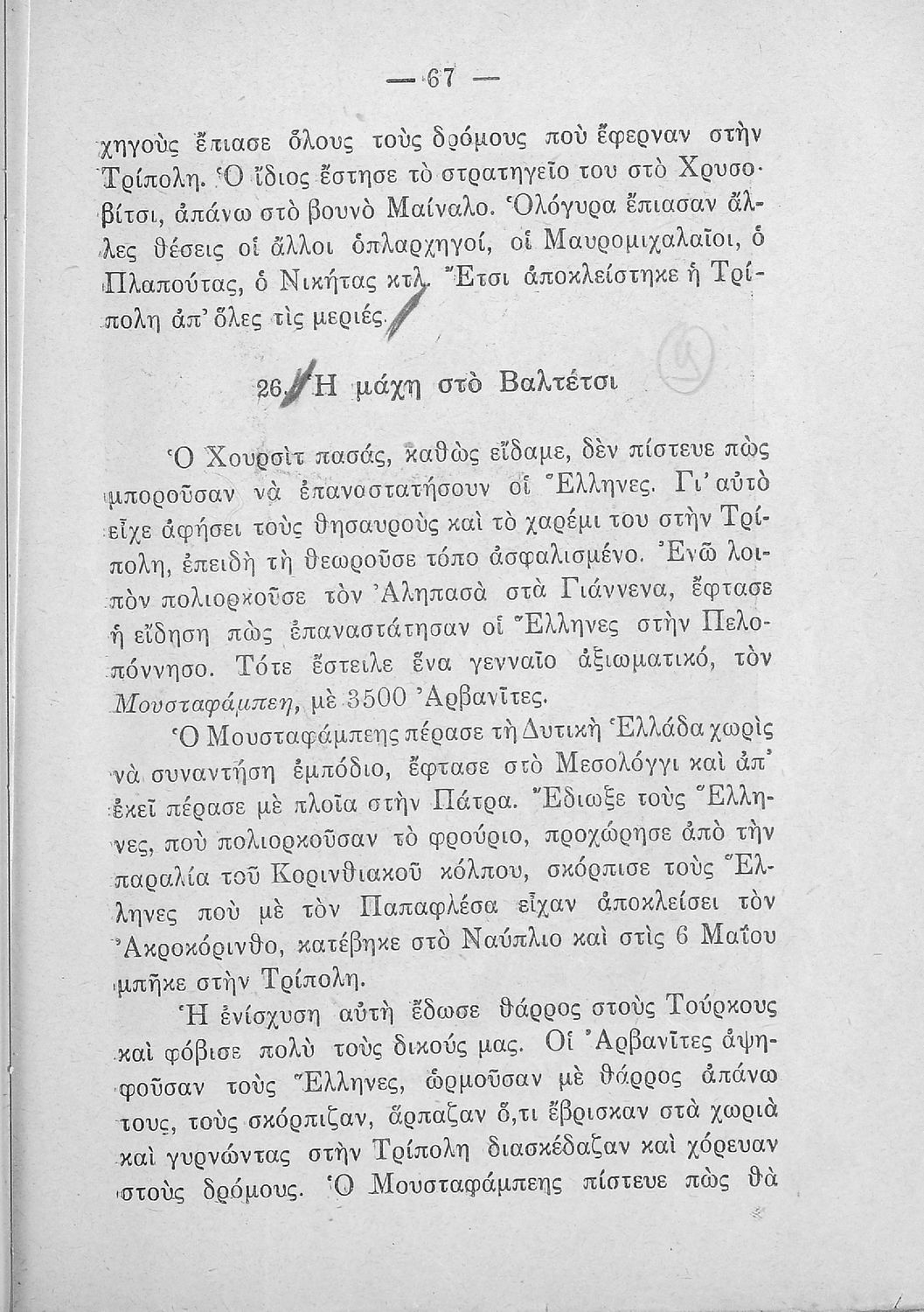 Μαθητικό βοήθημα της ΣΤ΄ Δημοτικού για το μάθημα της Ιστορίας. Καλύπτει τα χρόνια από την άλωσης της Κωνσταντινούπολης, την Οθωμανική Κυριαρχία, αφιερώνει το μεγαλύτερο μέρος στην Ελληνική Επανάσταση. Περιέχει εικόνες των ηρώων. Συνοπτικά αναφέρεται στα ιστορικά γεγονότα του ελεύθερου κράτους μέχρι το 1924. Απουσιάζει το γεγονός της Μικρασιατικής Καταστροφής, της Λωζάννης, το προσφυγικό ζήτημα ενώ αναφέρεται η ανακήρυξη της Δημοκρατίας το 1924. Σκοπός του βιβλίου είναι η ανόρθωση του εθνικού φρονήματος μετά τη Μικρασιατική Καταστροφή και το τέλος του αλυτρωτισμού. Το σύγγραμμα ήταν εγκεκριμένο για μια πενταετία 1934-1938.