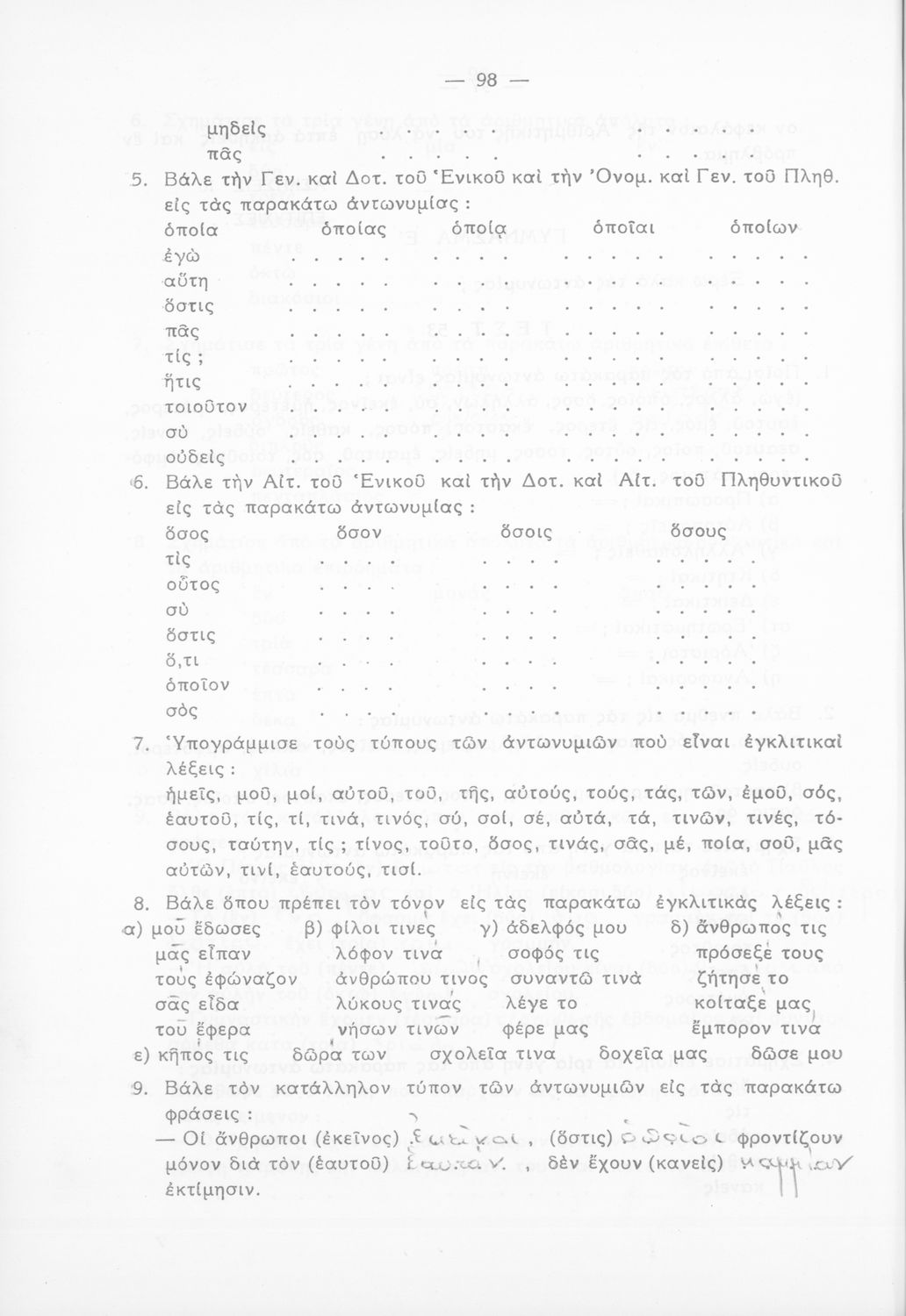 Σχολικό εγχειρίδιο για την Ε΄ και ΣΤ΄ Δημοτικού με κείμενα και ασκήσεις πάνω σε μαθήματα της Γραμματικής για εξάσκηση και εμπέδωση των μαθητών.