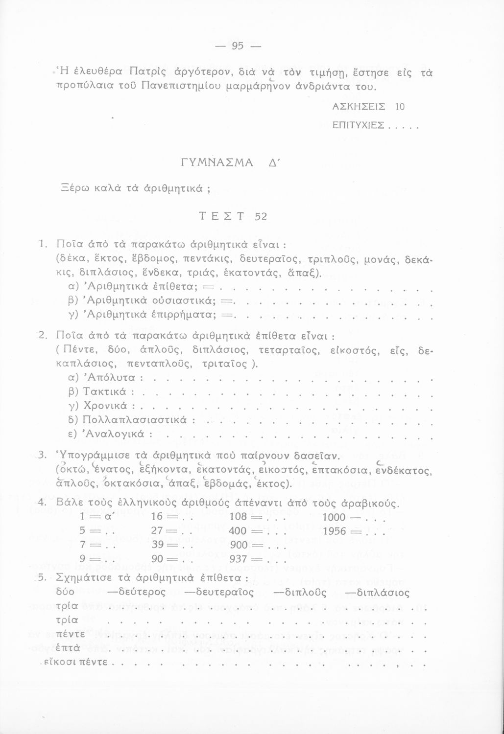Μαθητικό βοήθημα Μαθηματικών ασκήσεων για τους μαθητές των ανωτέρων τάξεων του Δημοτικού Σχολείου. Το βοήθημα περιλαμβάνει ασκήσεις των βασικών πράξεων των ακέραιων, των συμμιγών και των κλασματικών αριθμών.