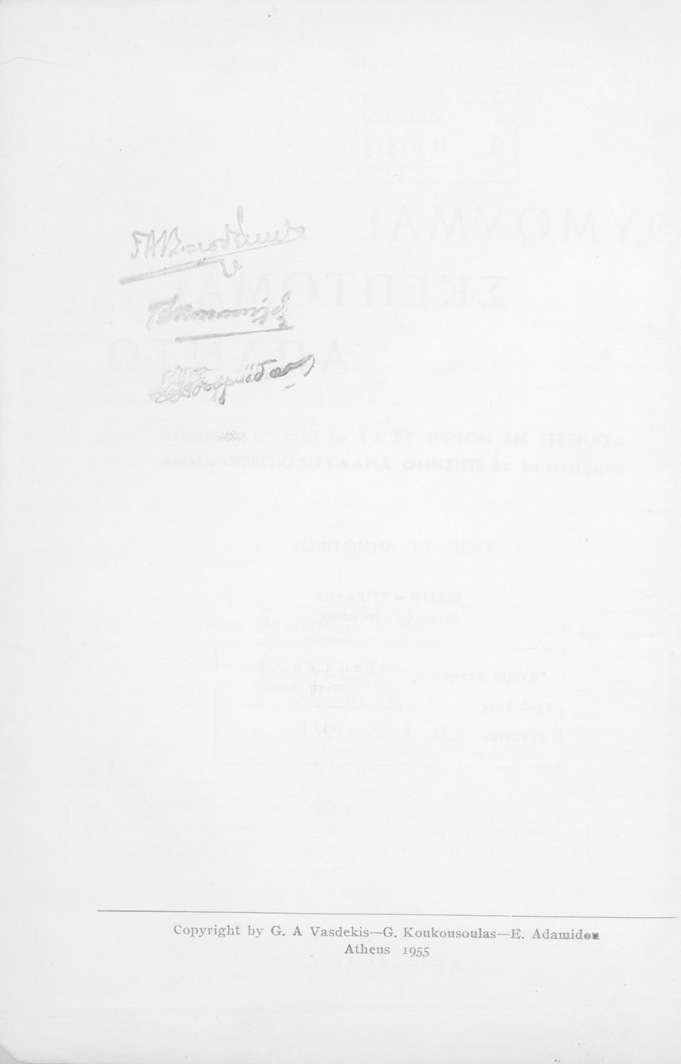 Εκδότης: Τυπογραφείο: Συνεργατικής Έτος έκδοσης: 1955 Τόπος έκδοσης: Αθήνα |