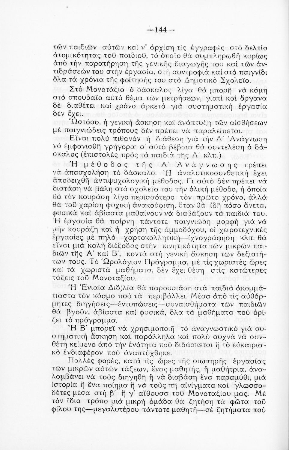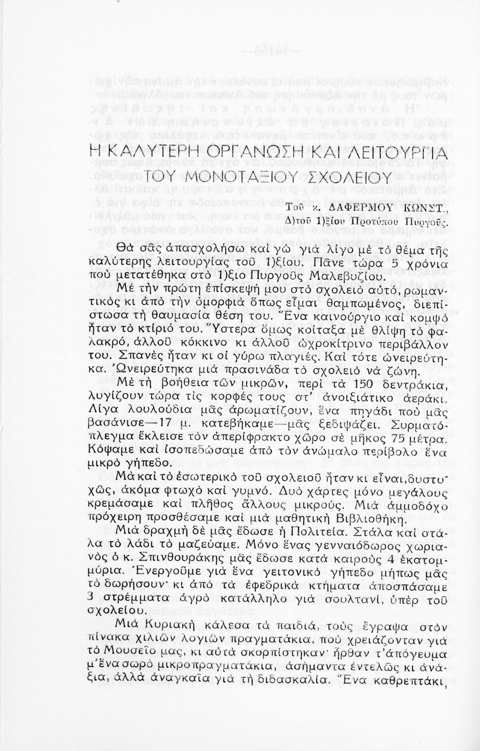 Πρόκειται για σύγγραμμα που αναφέρεται στην οργάνωση και τη λειτουργία των πρότυπων σχολείων. Ο συγγραφέας υπήρξε επιθεωρητής σχολείων και το βιβλίο γράφηκε με τη συνεργασία του προσωπικού.