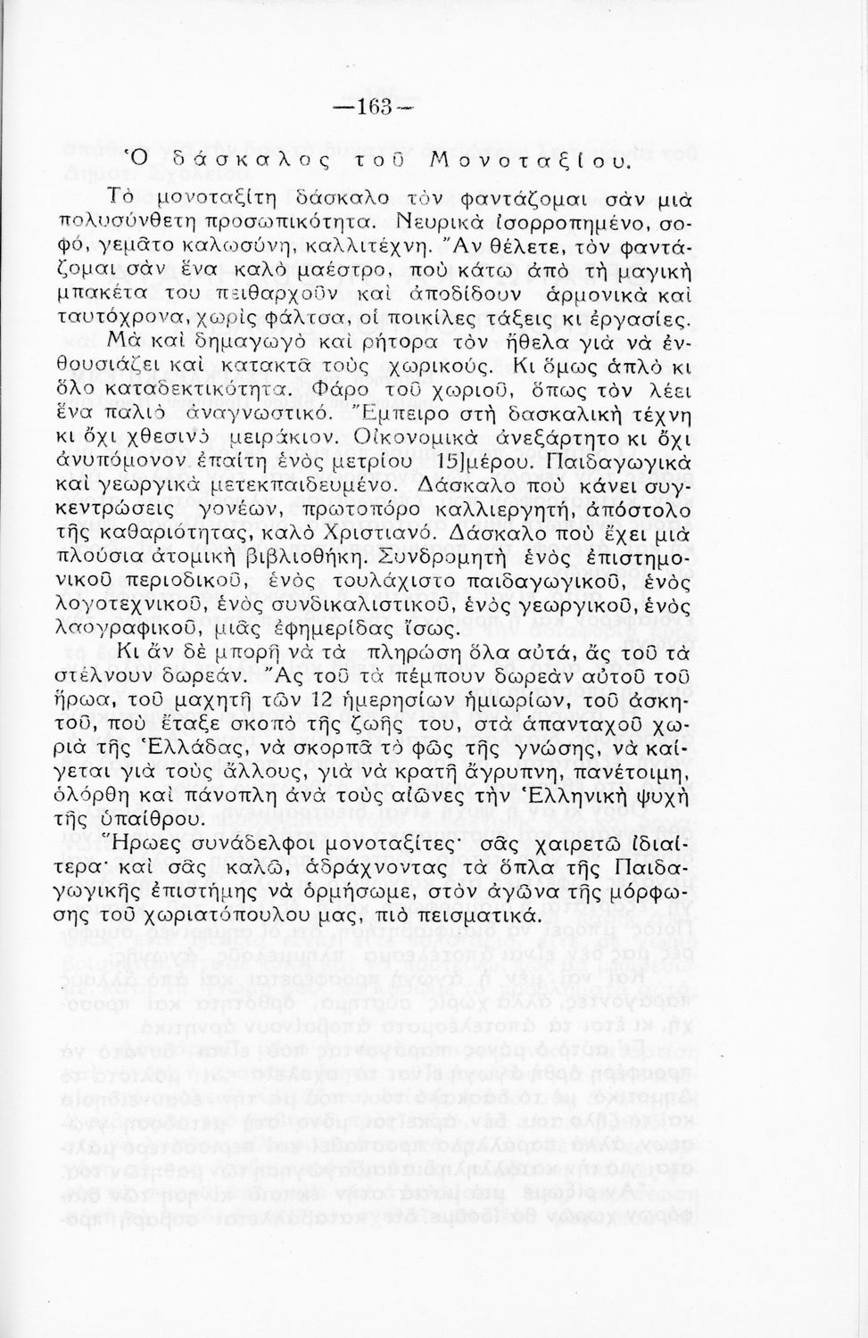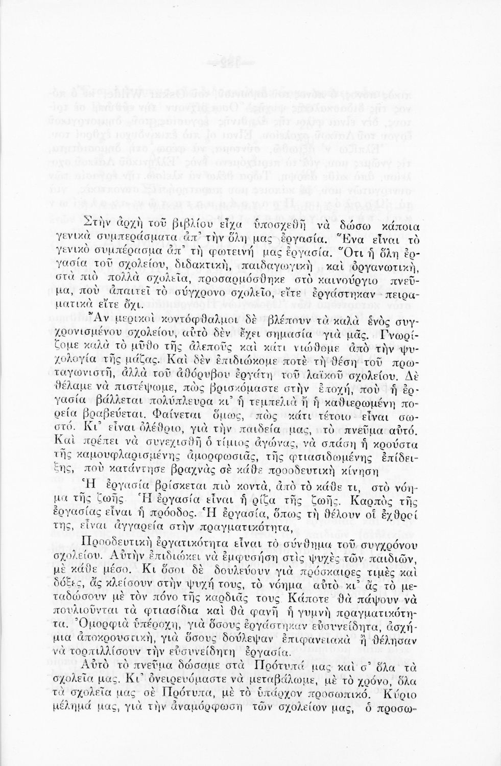 Παρουσίαση περιεχομένου: Πρόκειται για σύγγραμμα που αναφέρεται στην οργάνωση και τη λειτουργία των πρότυπων σχολείων. Ο συγγραφέας υπήρξε επιθεωρητής σχολείων και το βιβλίο γράφηκε με τη συνεργασία του προσωπικού.