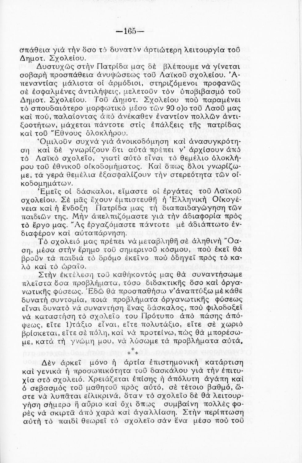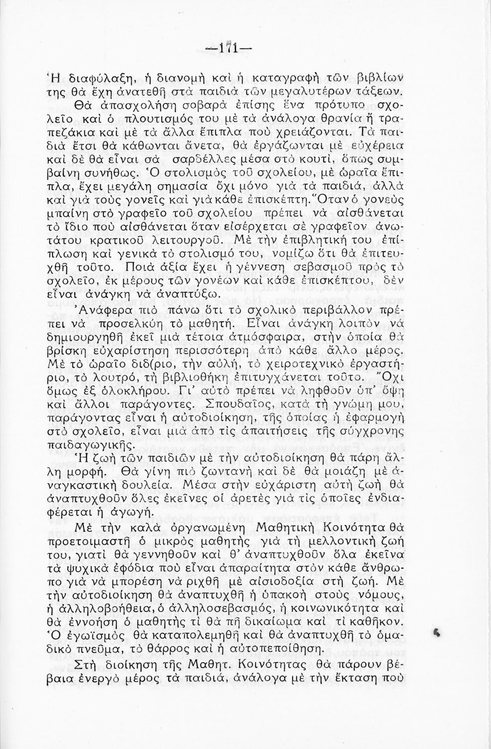 Πρόκειται για σύγγραμμα που αναφέρεται στην οργάνωση και τη λειτουργία των πρότυπων σχολείων. Ο συγγραφέας υπήρξε επιθεωρητής σχολείων και το βιβλίο γράφηκε με τη συνεργασία του προσωπικού.