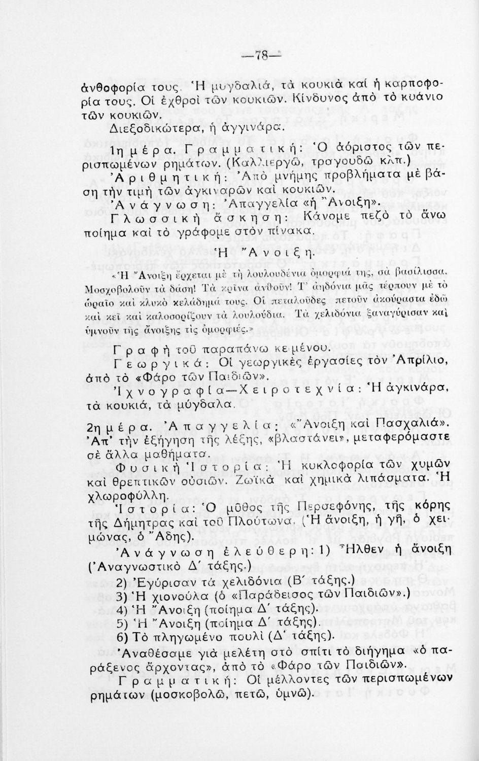Σχολικό εγχειρίδιο Αρχαίων Ελληνικών Α΄ Γυμνασίου που περιέχει αποσπάσματα από έργα αρχαίων Ελλήνων συγγραφέων, ερμηνευτικά και πραγματολογικά σχόλια και γραμματικές παρατηρήσεις.