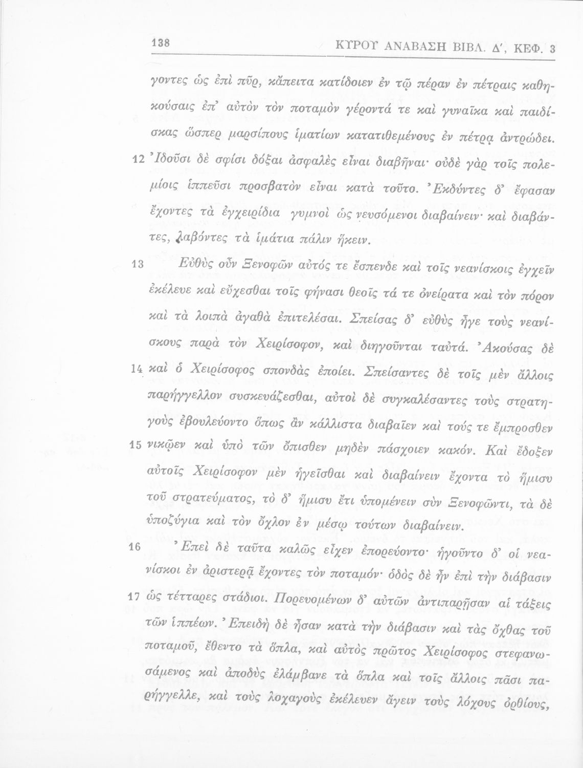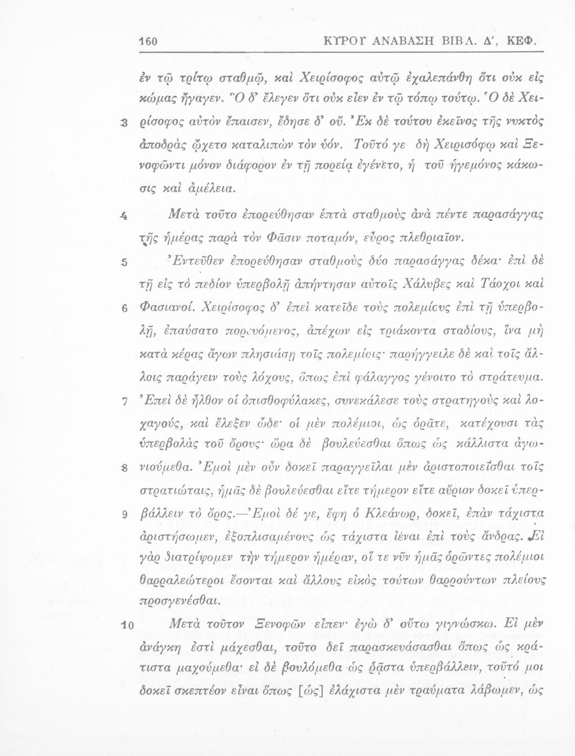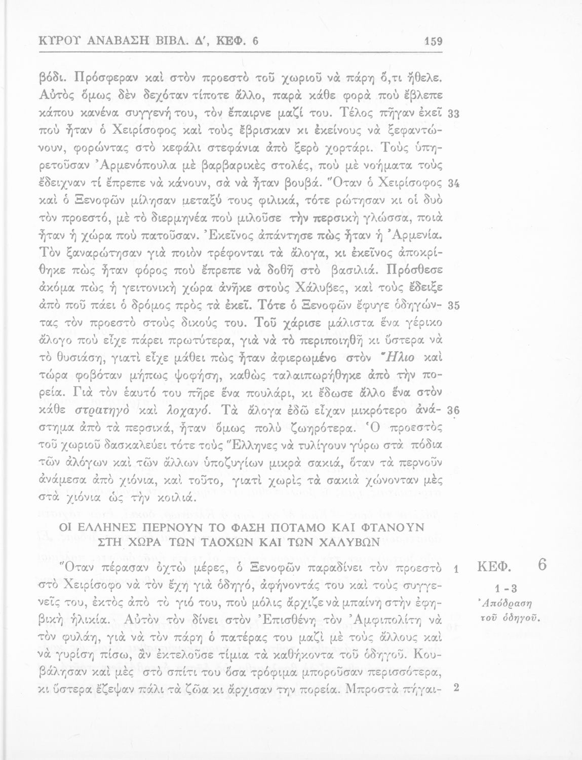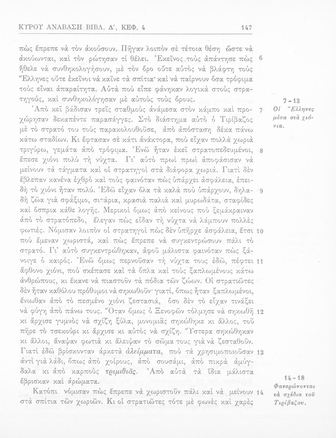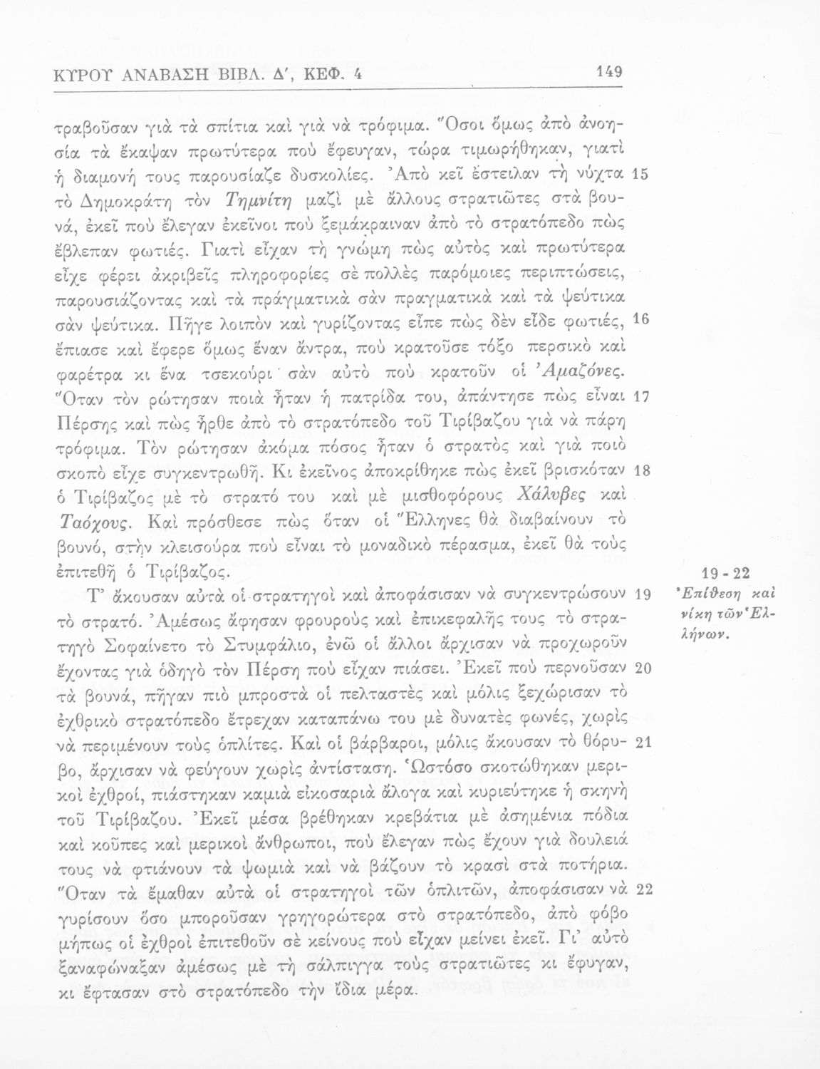 Σχολικό εγχειρίδιο Αρχαίων Ελληνικών Α΄ Γυμνασίου που περιλαμβάνει το έργο του Ξενοφώντα Κύρου Ανάβασις, μετάφραση, ερμηνευτικές και πραγματολογικές παρατηρήσεις.