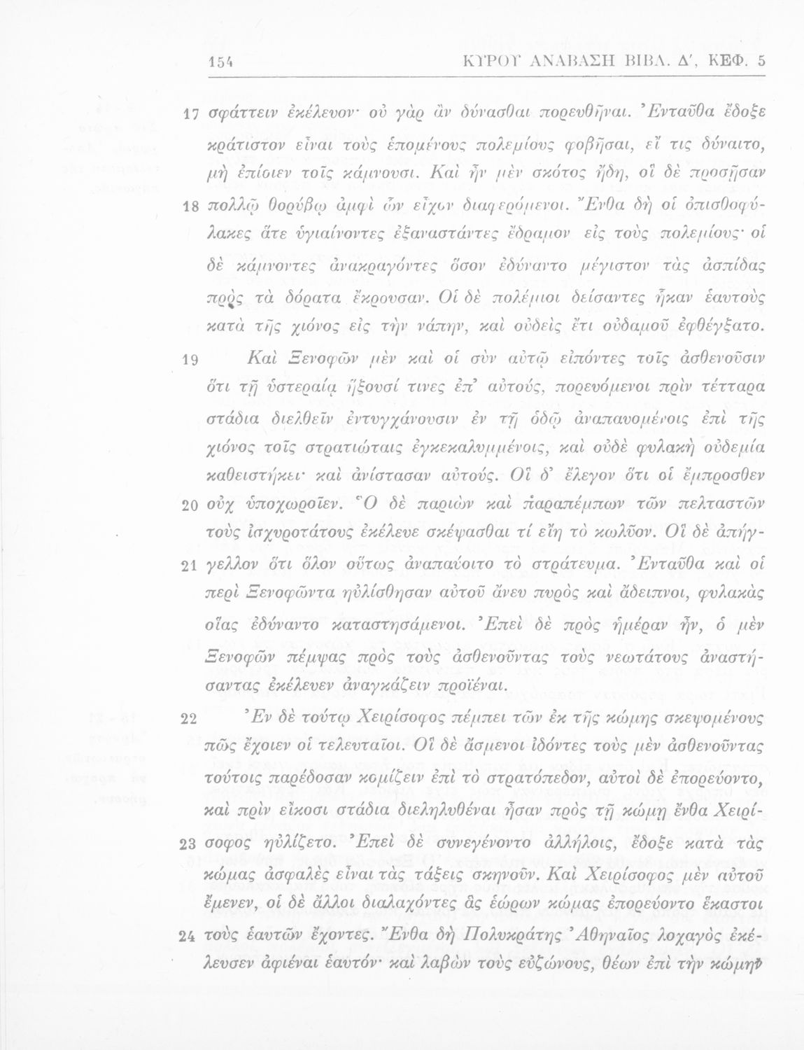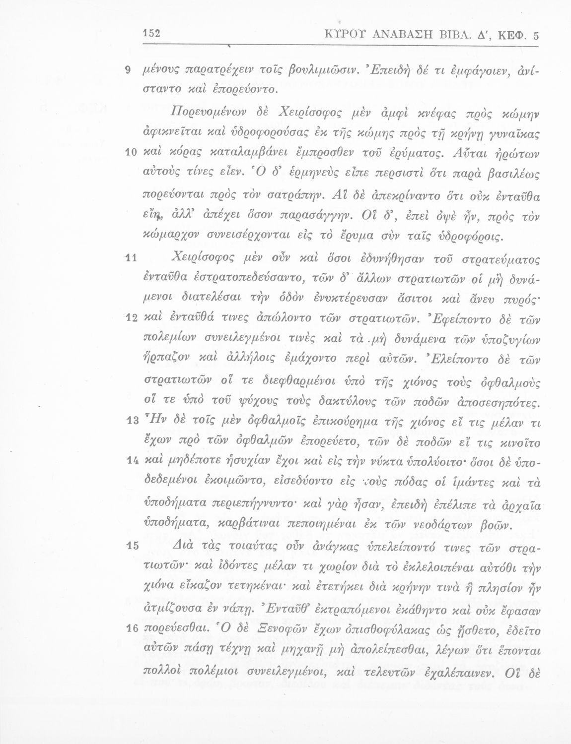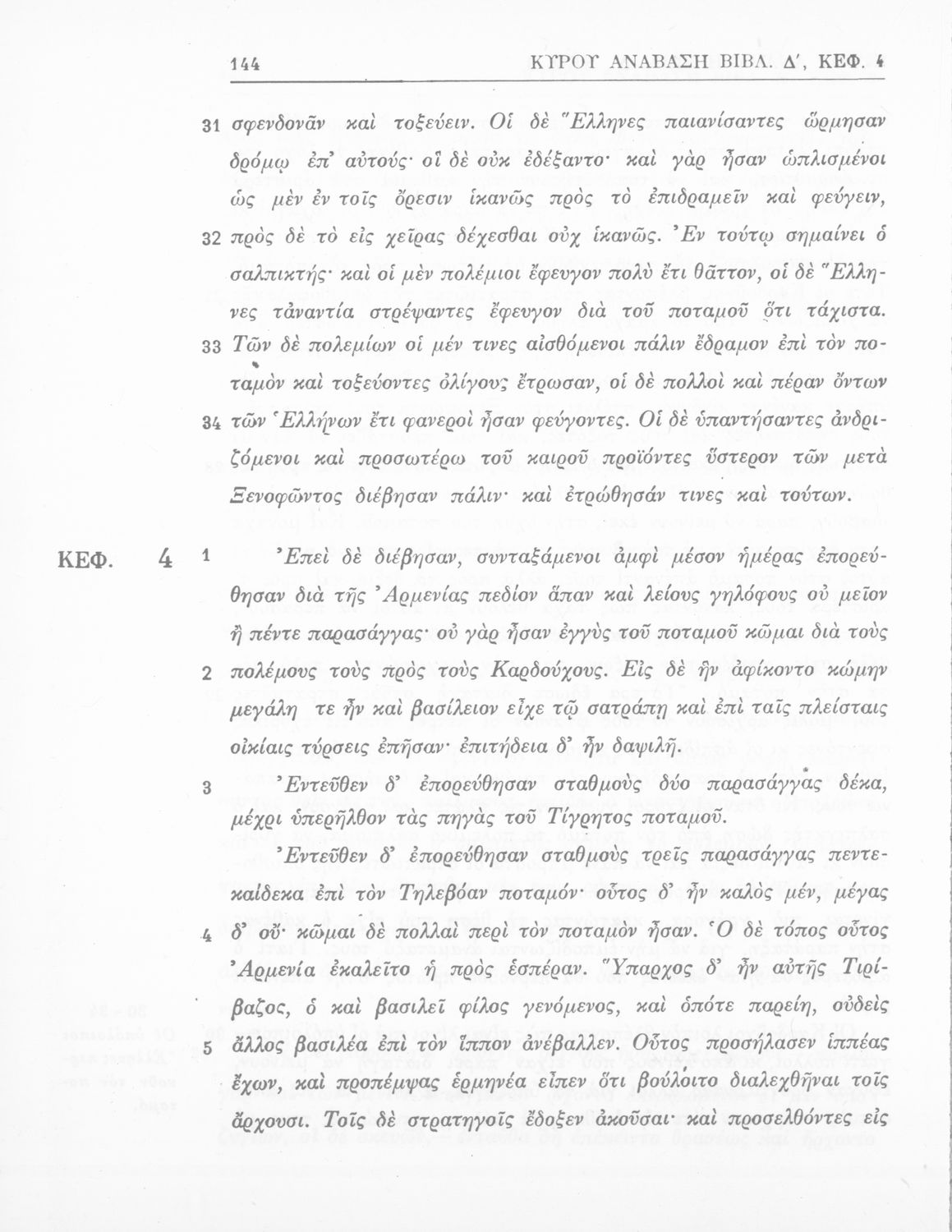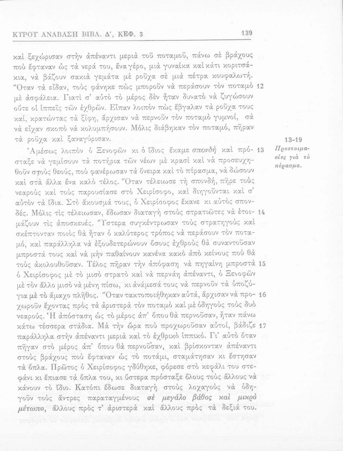 Σχολικό εγχειρίδιο Αρχαίων Ελληνικών Α΄ Γυμνασίου που περιλαμβάνει το έργο του Ξενοφώντα Κύρου Ανάβασις, μετάφραση, ερμηνευτικές και πραγματολογικές παρατηρήσεις.