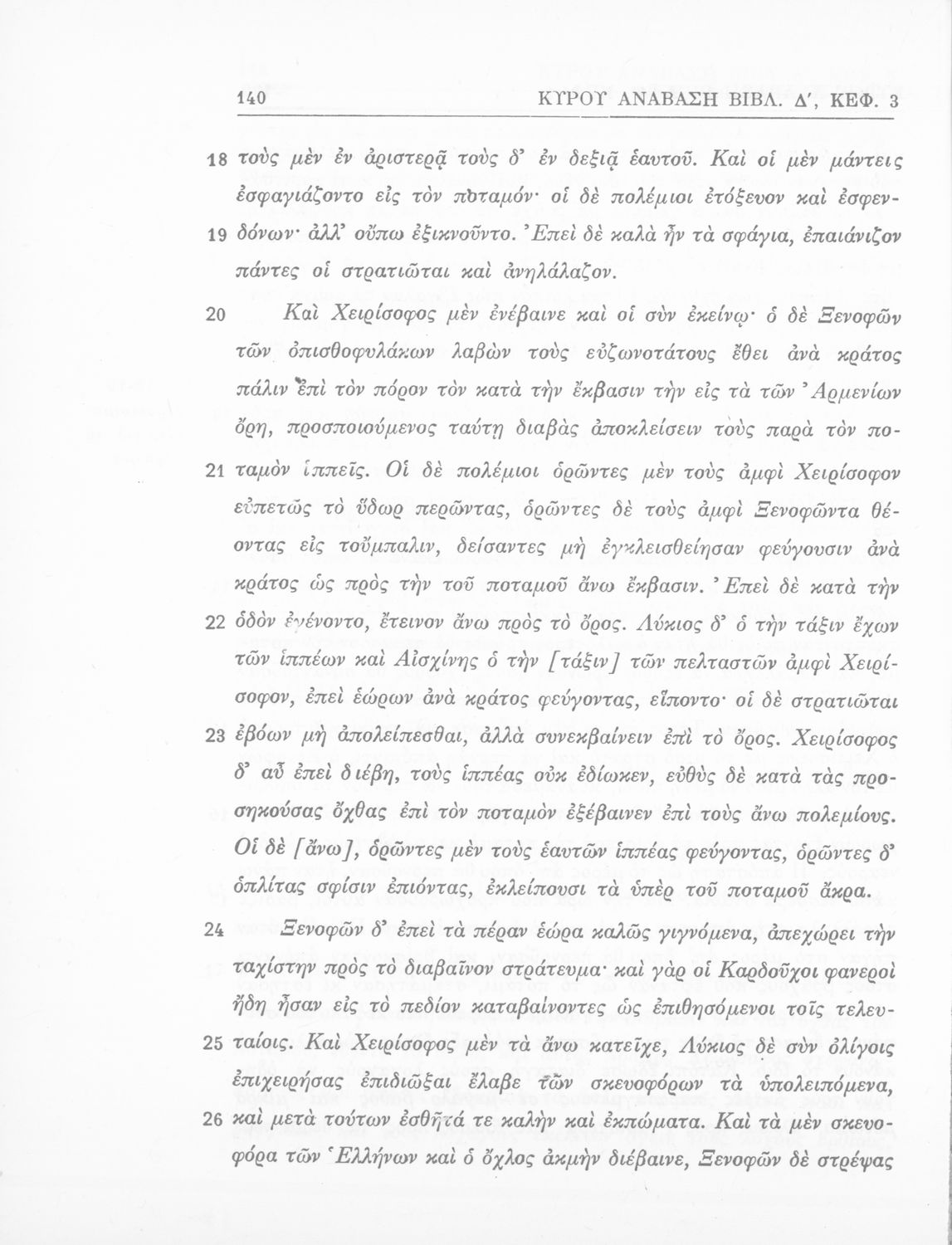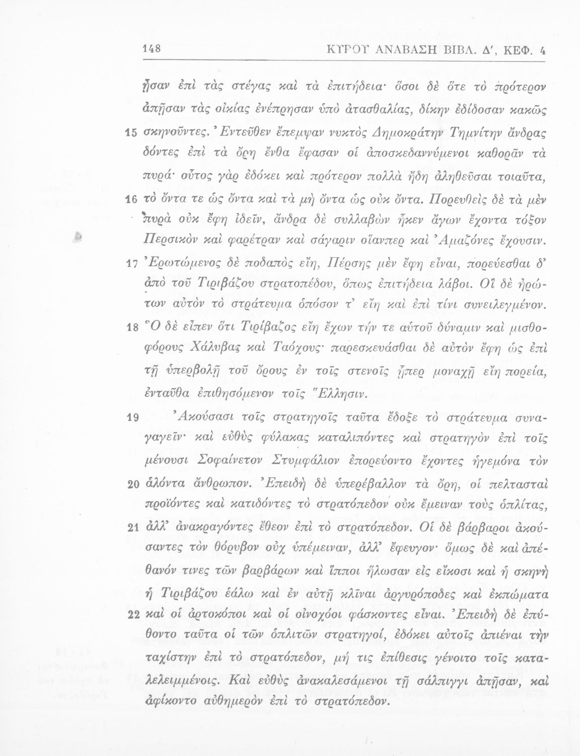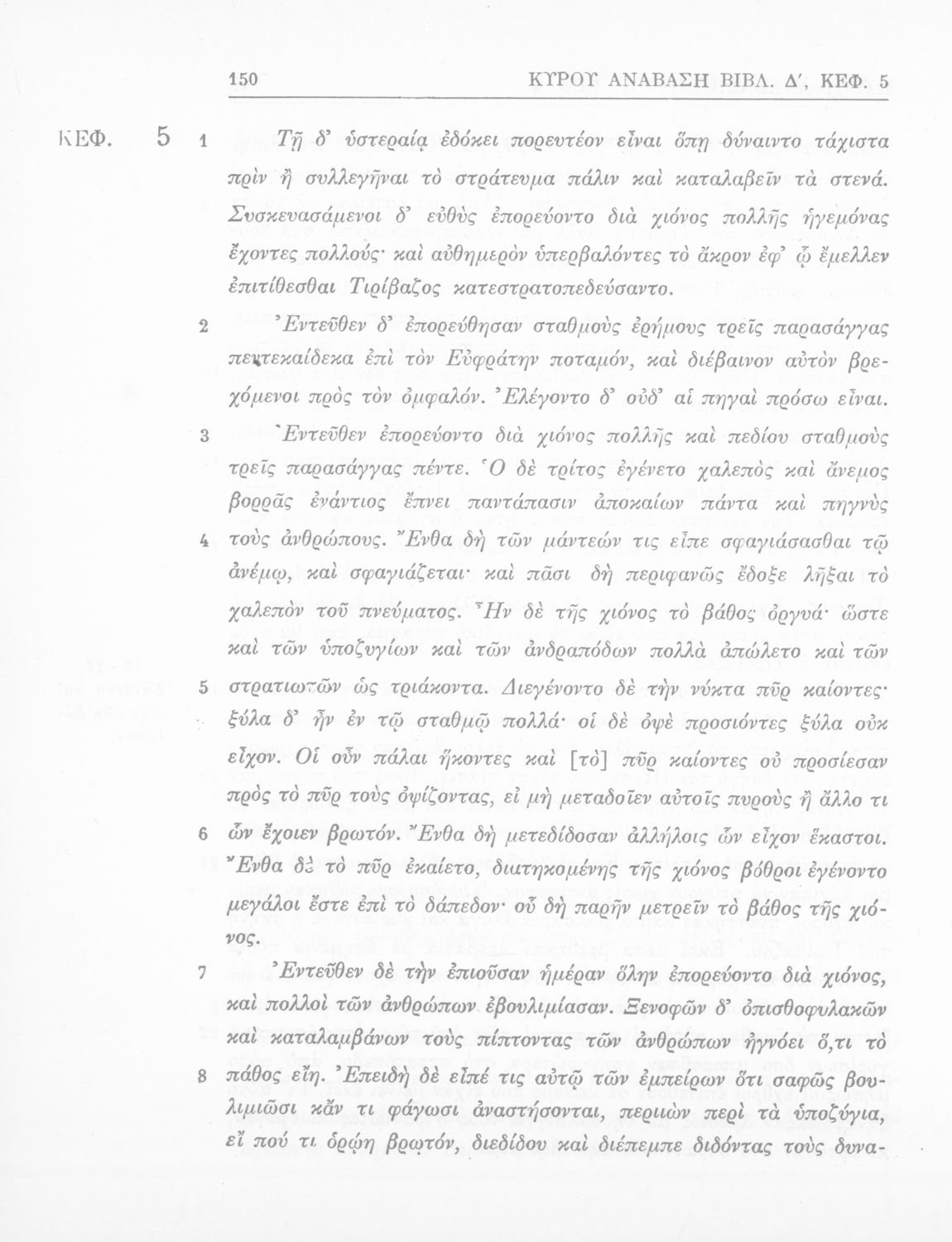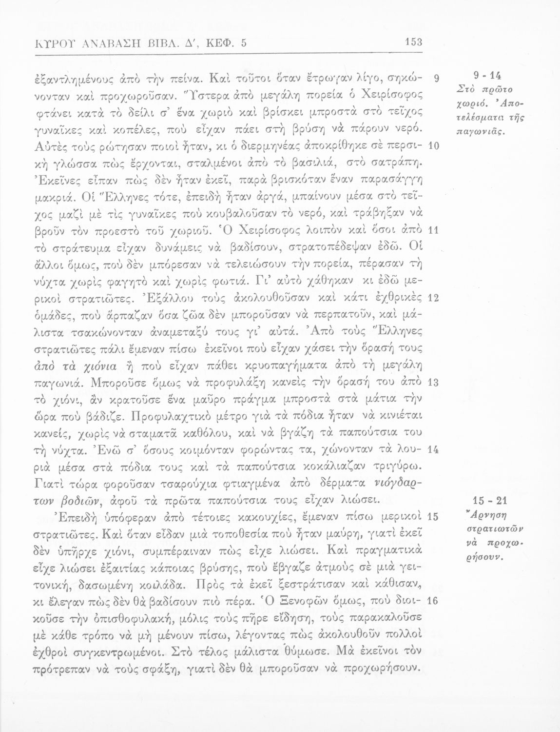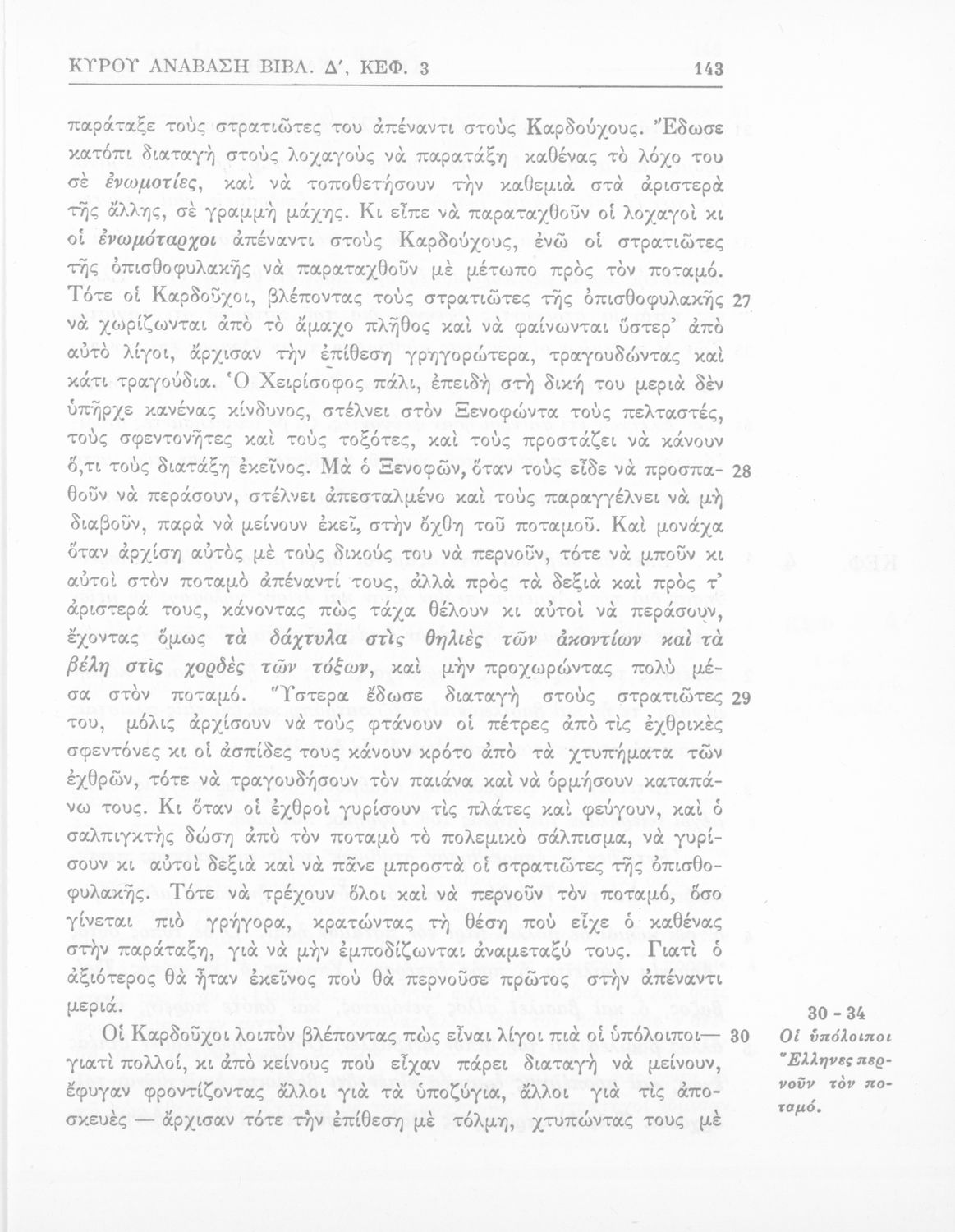 Σχολικό εγχειρίδιο Αρχαίων Ελληνικών Α΄ Γυμνασίου που περιλαμβάνει το έργο του Ξενοφώντα Κύρου Ανάβασις, μετάφραση, ερμηνευτικές και πραγματολογικές παρατηρήσεις.