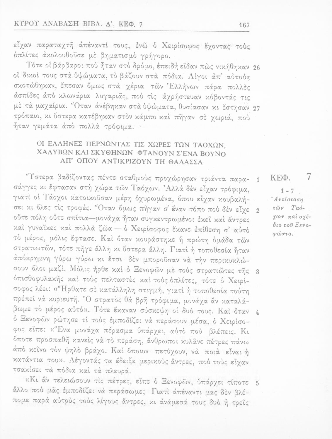 Ξενοφών, Δ. Η. Κυριακόπουλος (σχόλια)