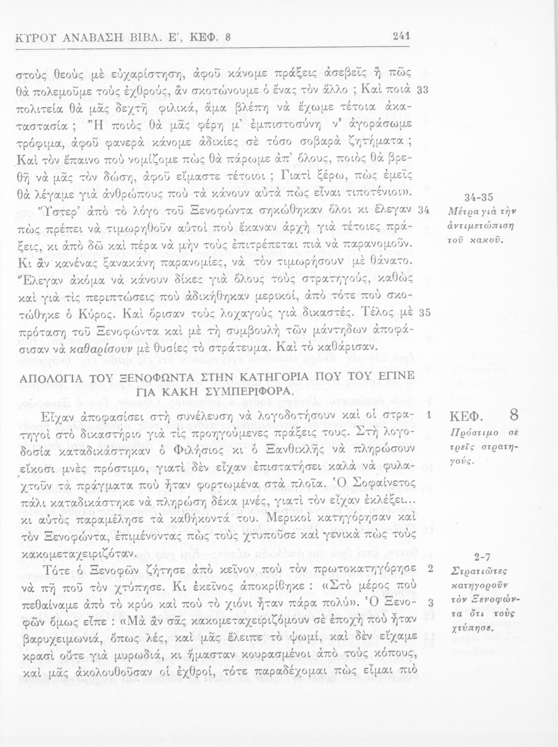 Ξενοφών, Δ. Η. Κυριακόπουλος (σχόλια)