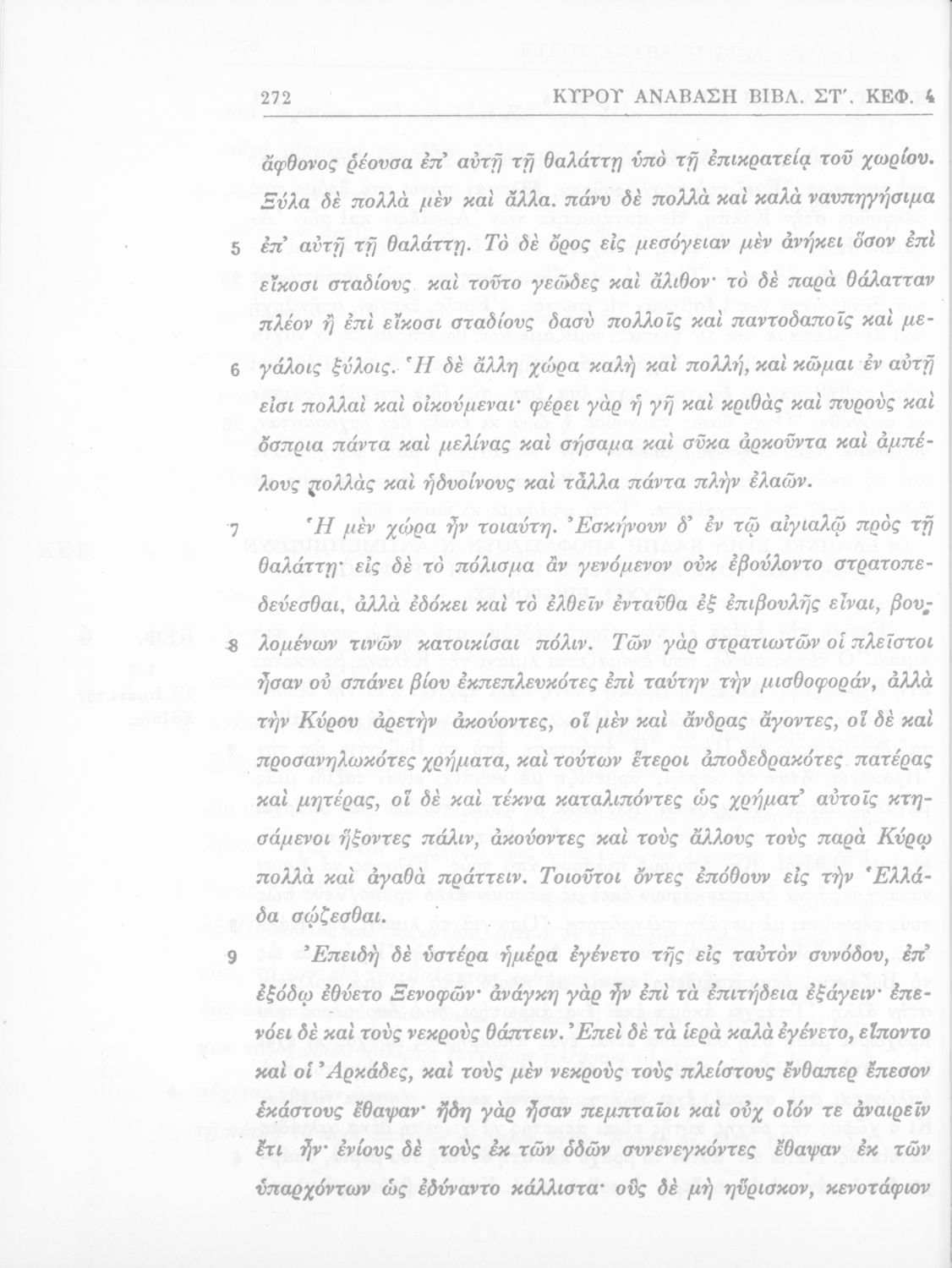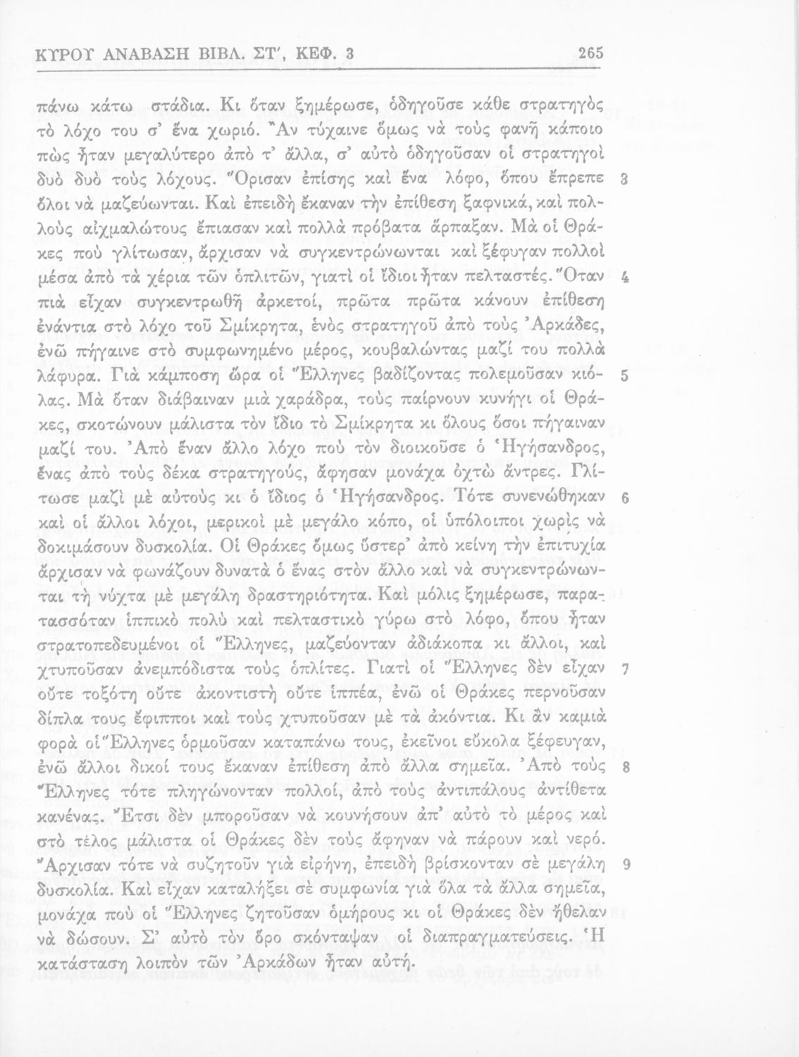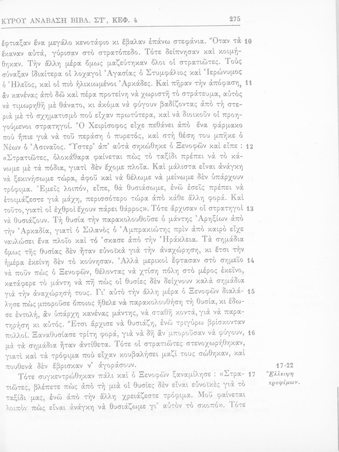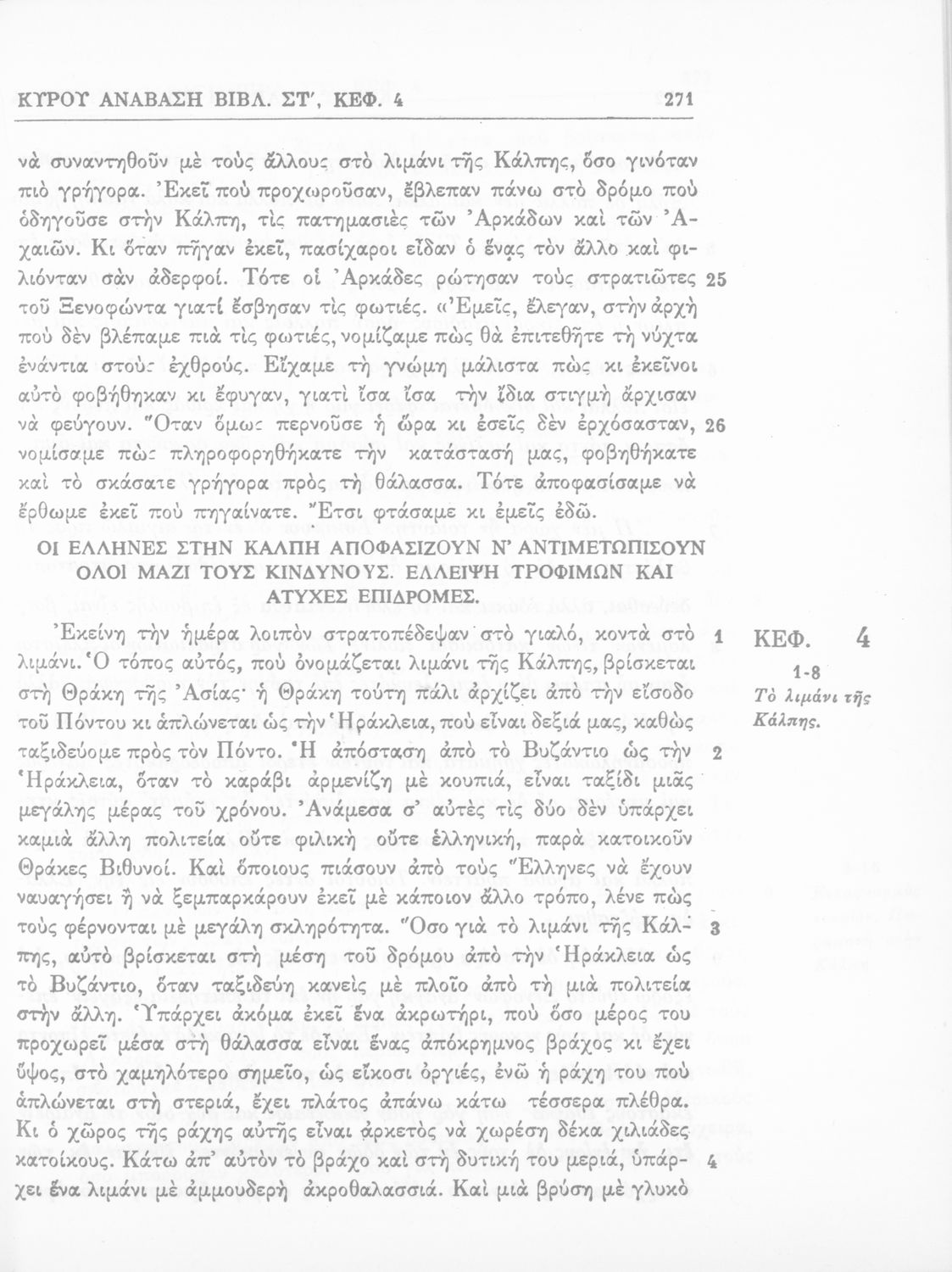 Σχολικό εγχειρίδιο της Γ' Ελληνικού Σχολείου και Αστικών Σχολείων για το μάθημα των Αρχαίων Ελληνικών. Το σύγγραμμα περιλαμβάνει κείμενα κατ΄ επιλογή από τα τέσσερα τελευταία βιβλία του έργου Κύρου Ανάβασις. ...