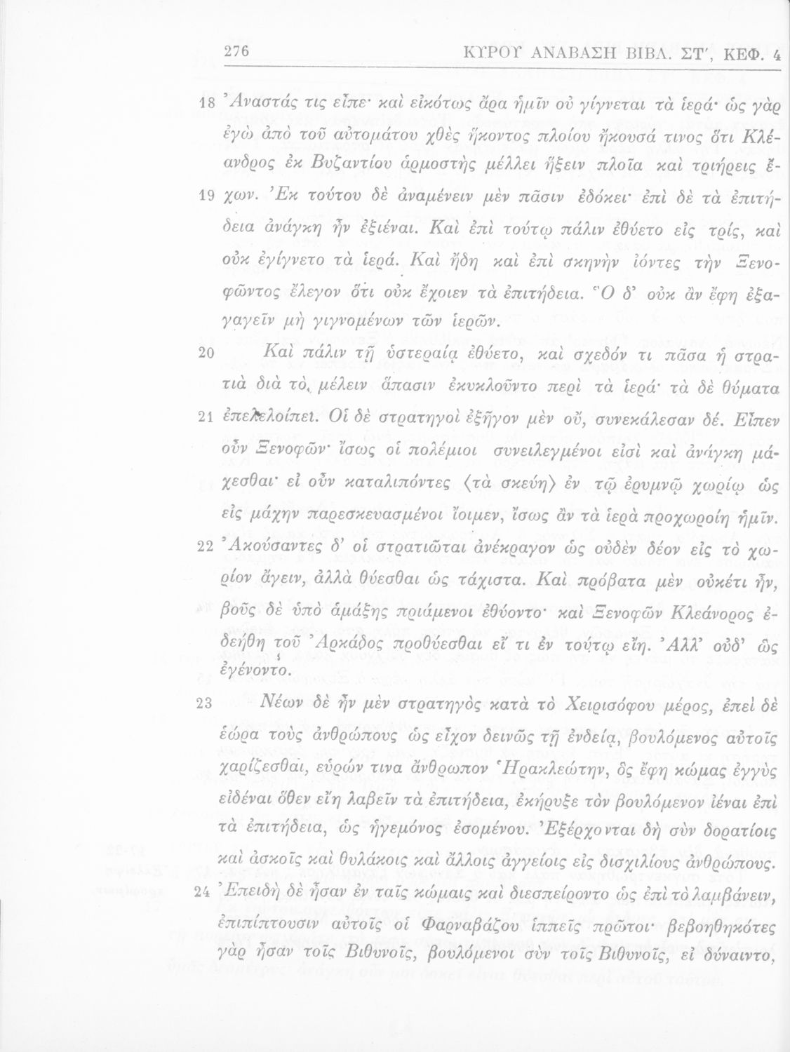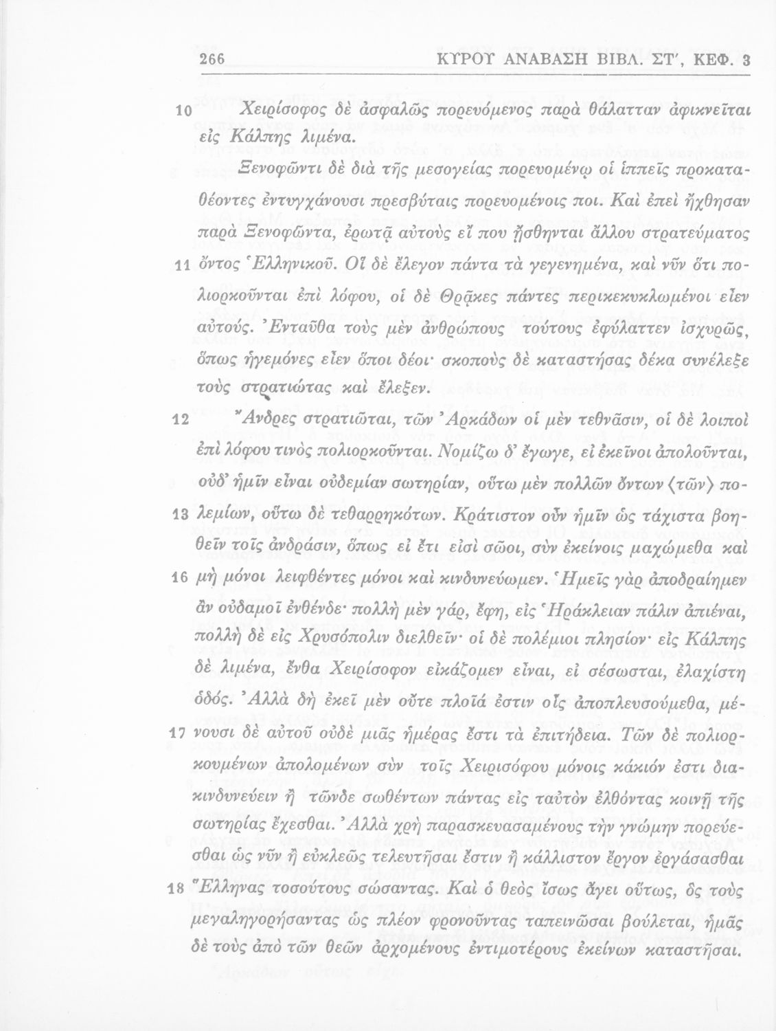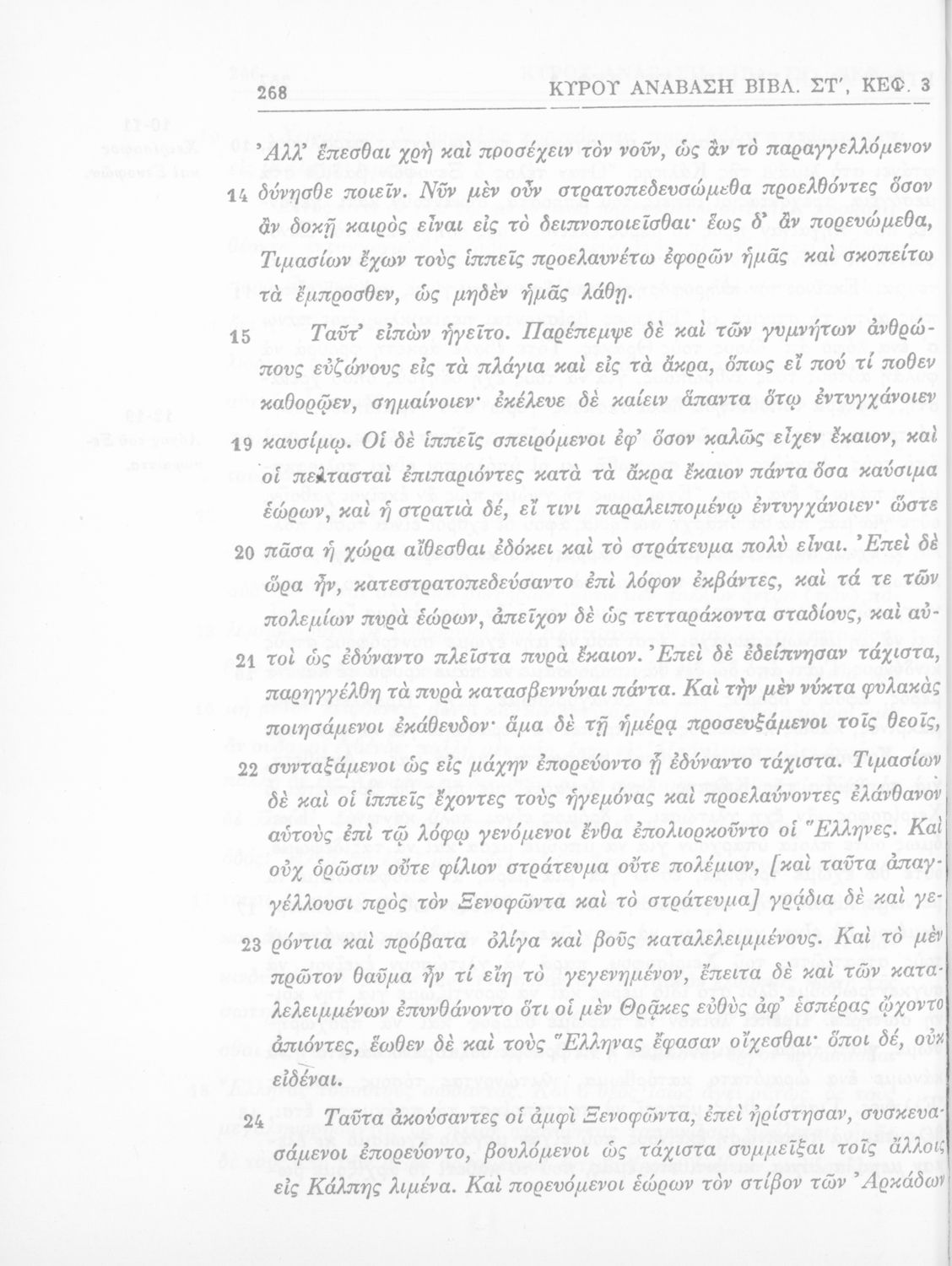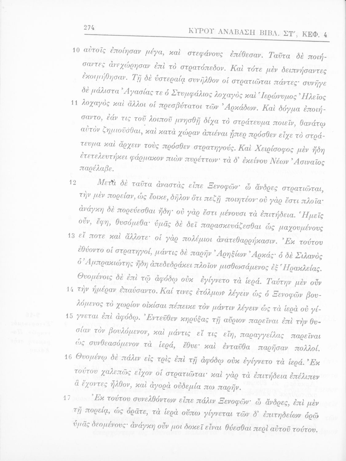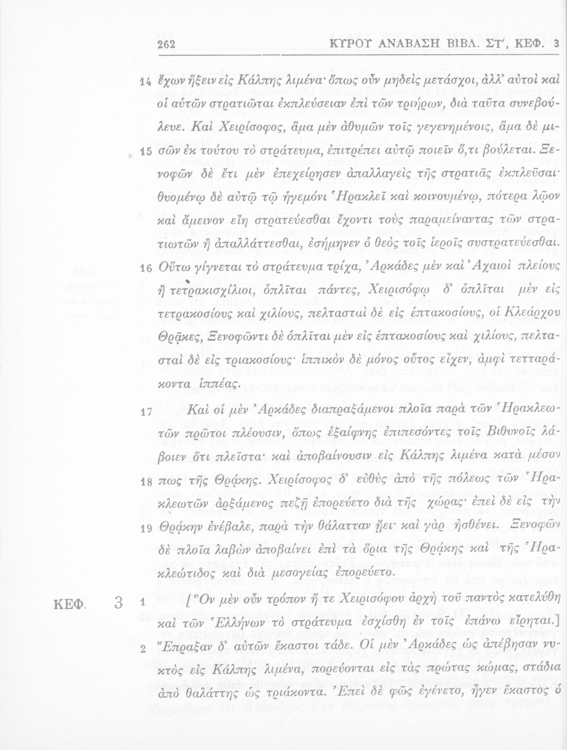 Σχολικό εγχειρίδιο της Γ' Ελληνικού Σχολείου και Αστικών Σχολείων για το μάθημα των Αρχαίων Ελληνικών. Το σύγγραμμα περιλαμβάνει κείμενα κατ΄ επιλογή από τα τέσσερα τελευταία βιβλία του έργου Κύρου Ανάβασις. ...