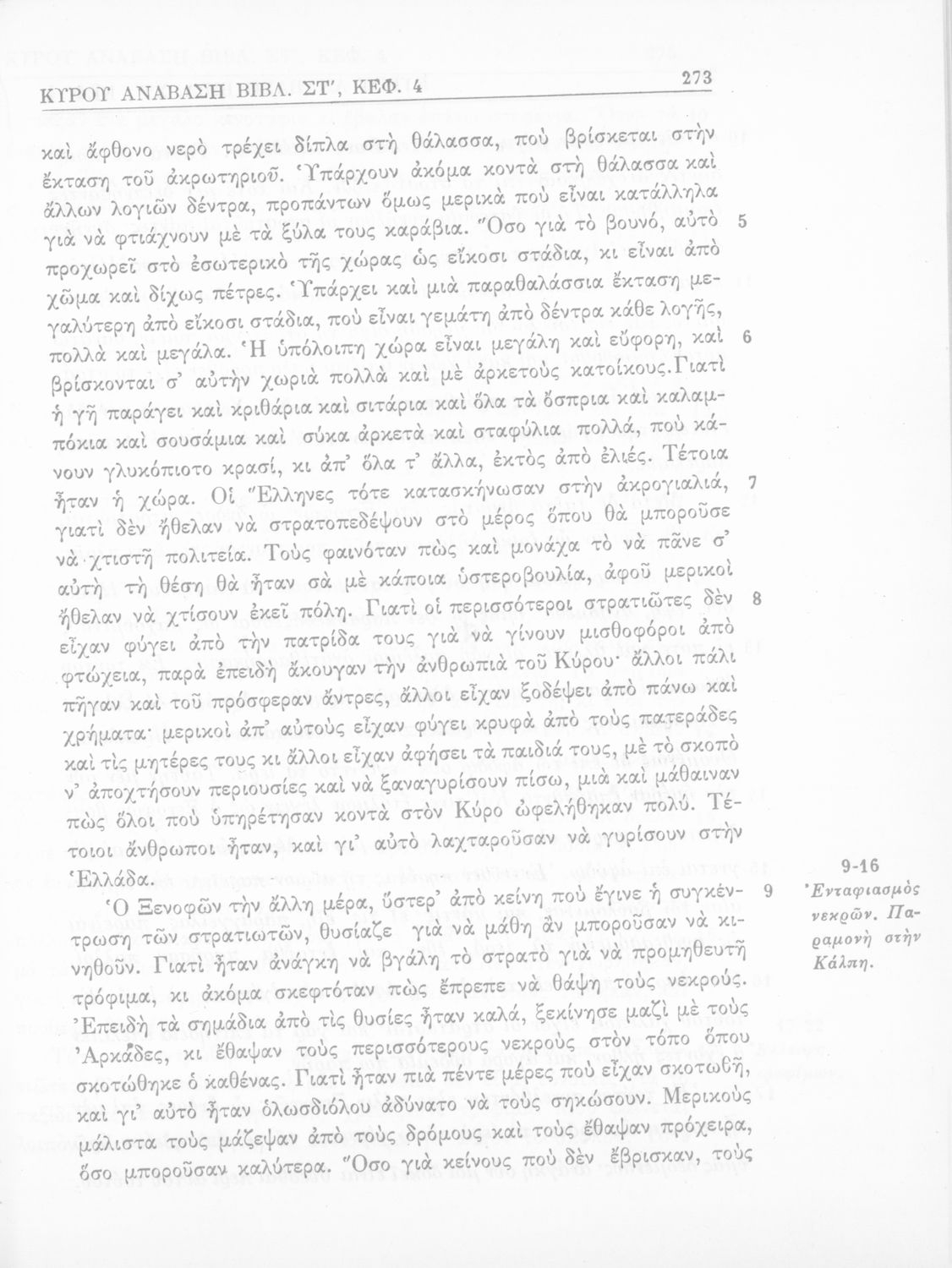 Σχολικό εγχειρίδιο Αρχαίων Ελληνικών α΄ Γυμνασίου που περιλαμβάνει μετάφραση του έργου του Ξενοφώντα Κύρου Ανάβασις, εισαγωγικά σχόλια για τη ζωή και το έργο του, και ερμηνευτικές παρατηρήσεις.