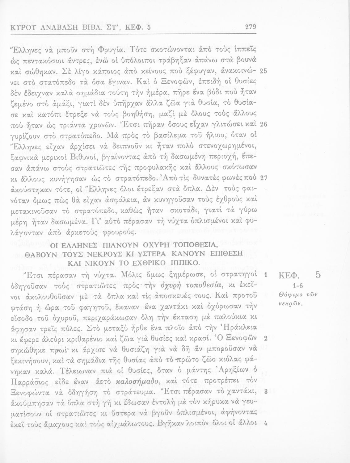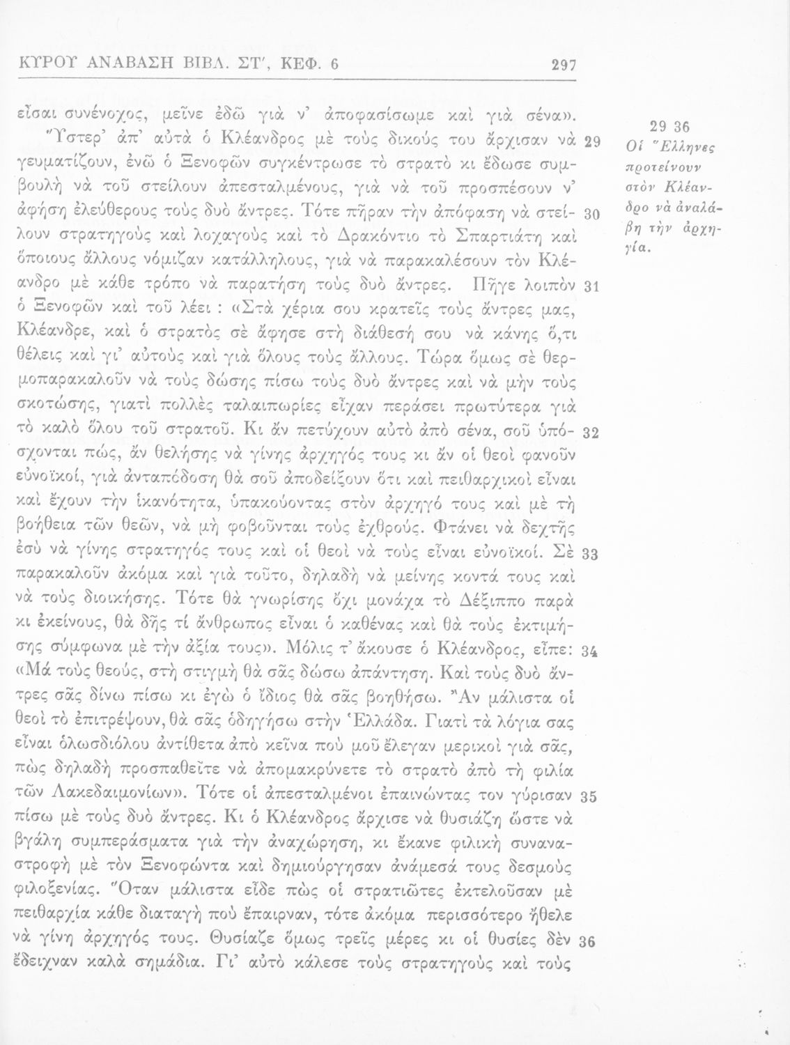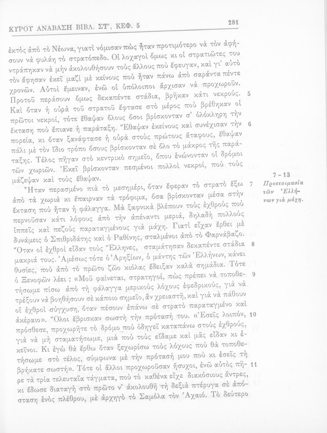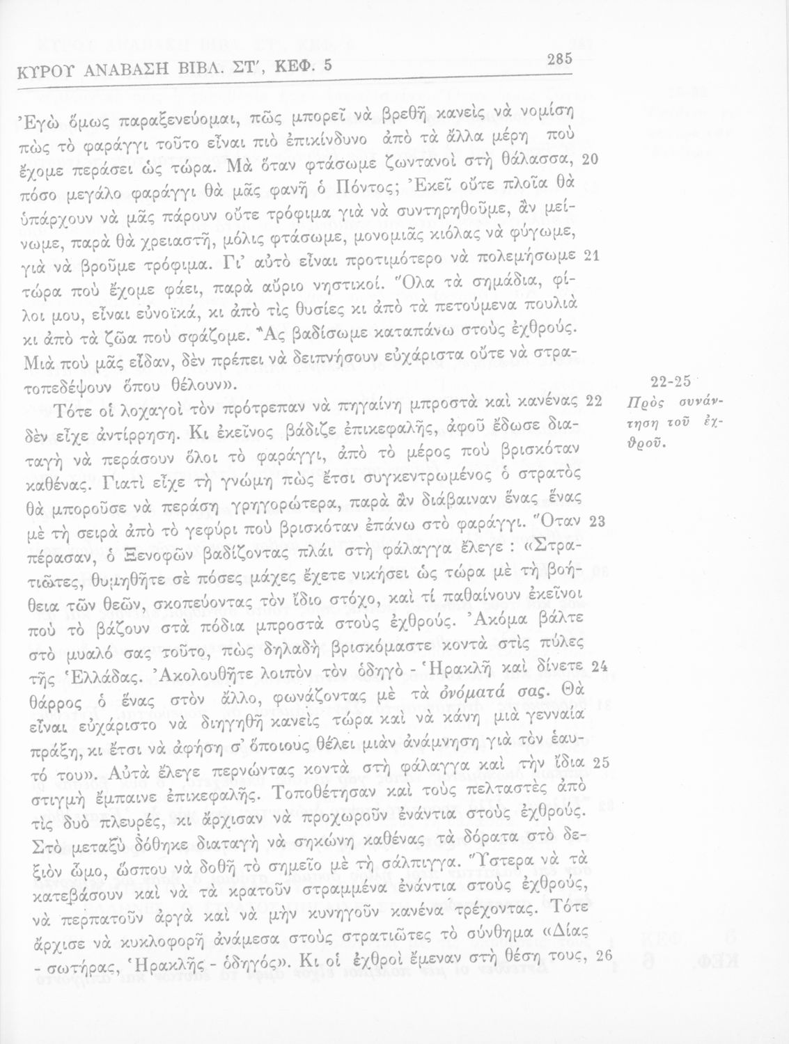 Σχολικό εγχειρίδιο Αρχαίων Ελληνικών Α΄ Γυμνασίου που περιλαμβάνει το έργο του Ξενοφώντα Κύρου Ανάβασις, μετάφραση, ερμηνευτικές και πραγματολογικές παρατηρήσεις.