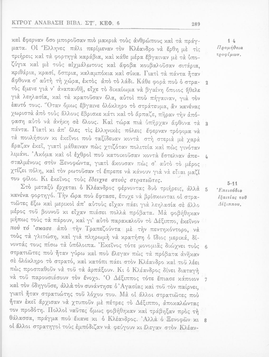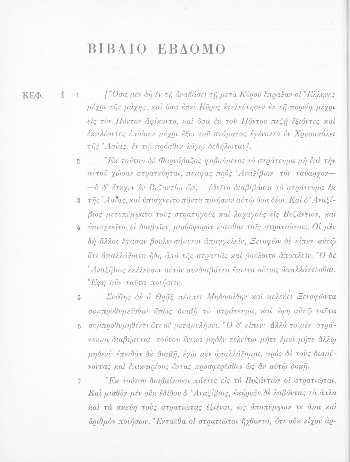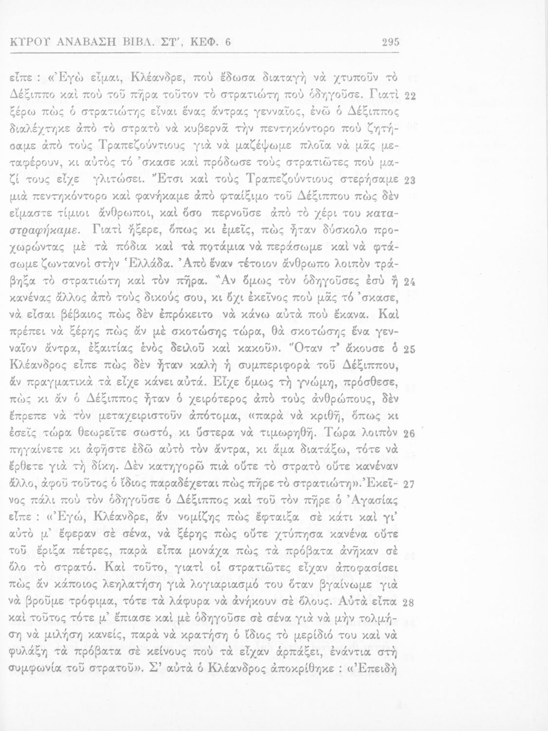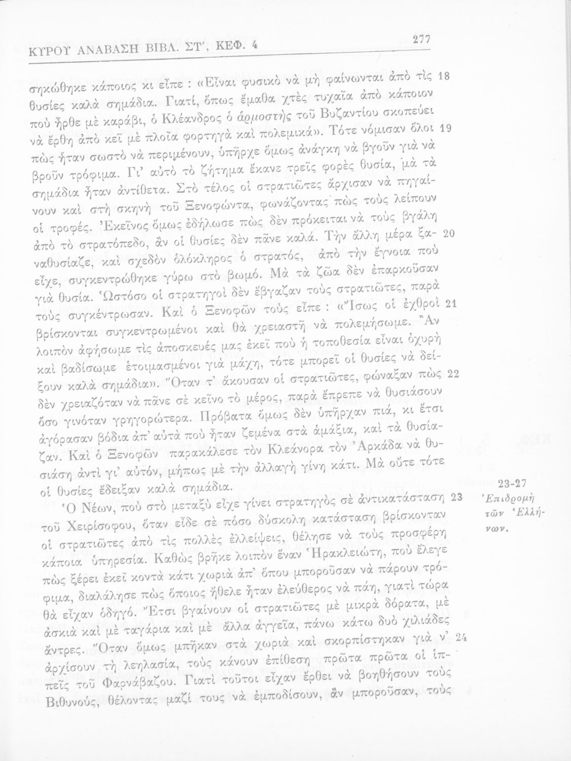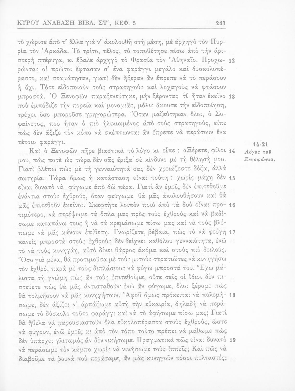 Σχολικό εγχειρίδιο Αρχαίων Ελληνικών Α΄ Γυμνασίου που περιλαμβάνει το έργο του Ξενοφώντα Κύρου Ανάβασις, μετάφραση, ερμηνευτικές και πραγματολογικές παρατηρήσεις.