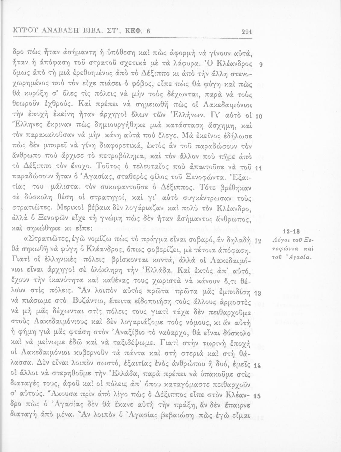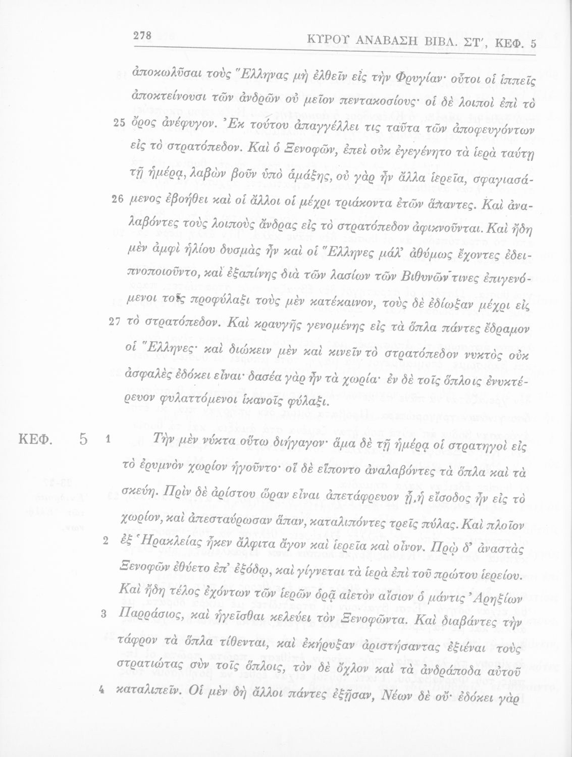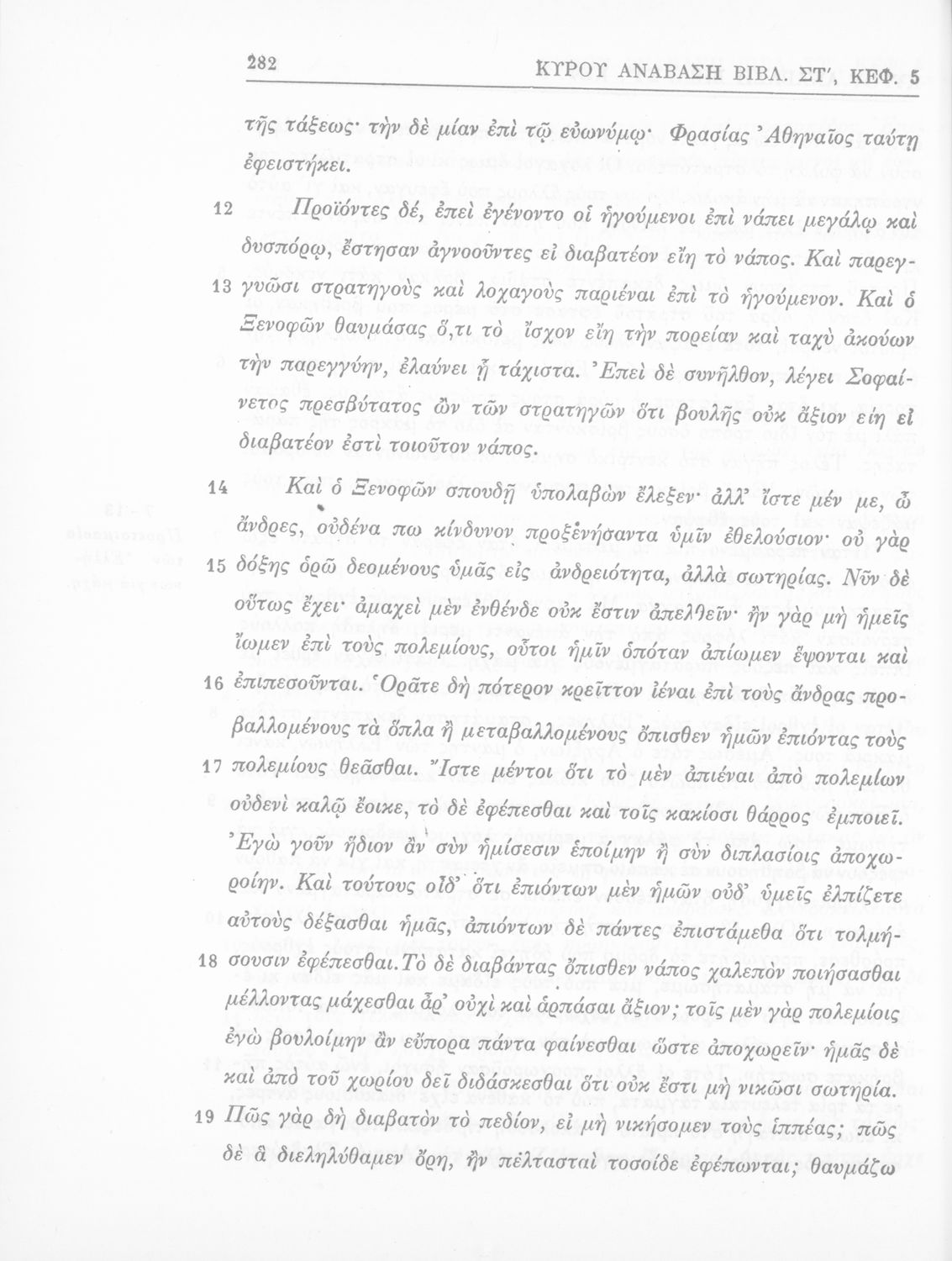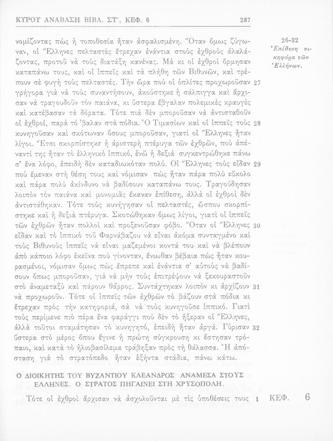 Σχολικό εγχειρίδιο Αρχαίων Ελληνικών Α΄ Γυμνασίου που περιλαμβάνει το έργο του Ξενοφώντα Κύρου Ανάβασις, μετάφραση, ερμηνευτικές και πραγματολογικές παρατηρήσεις.