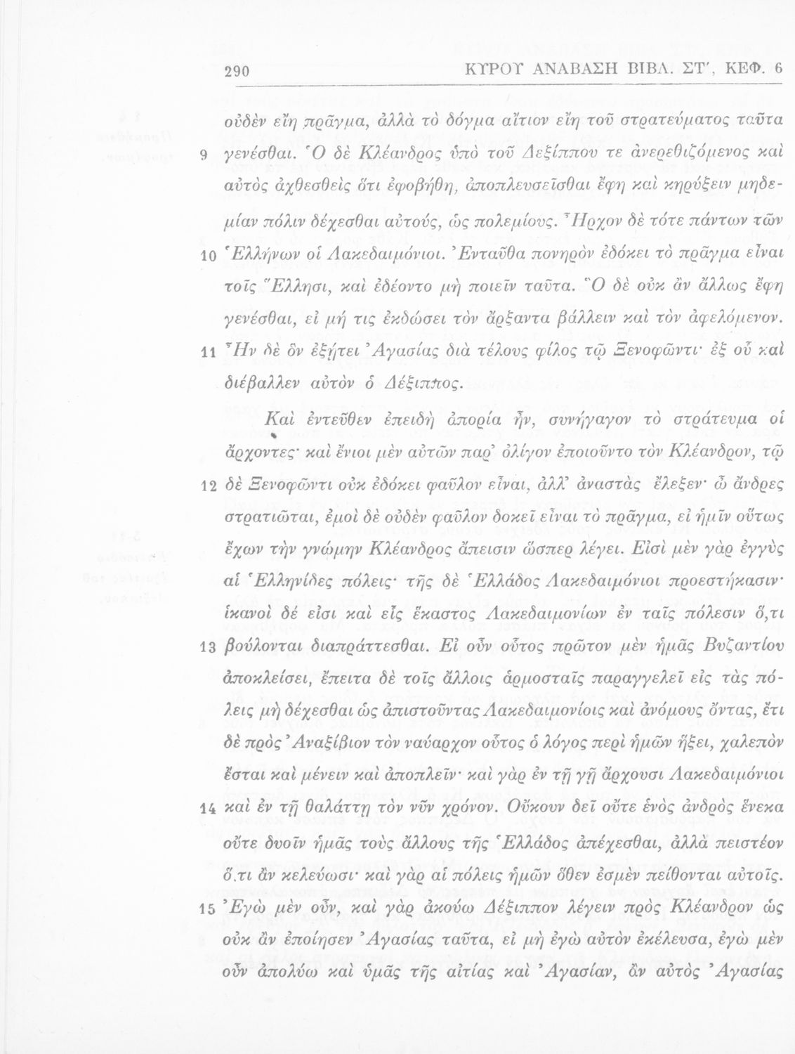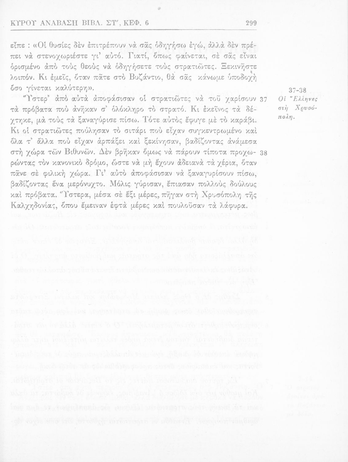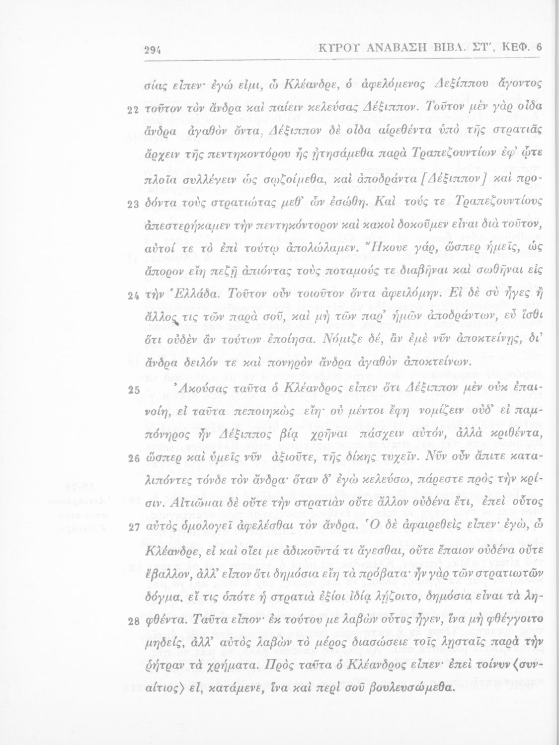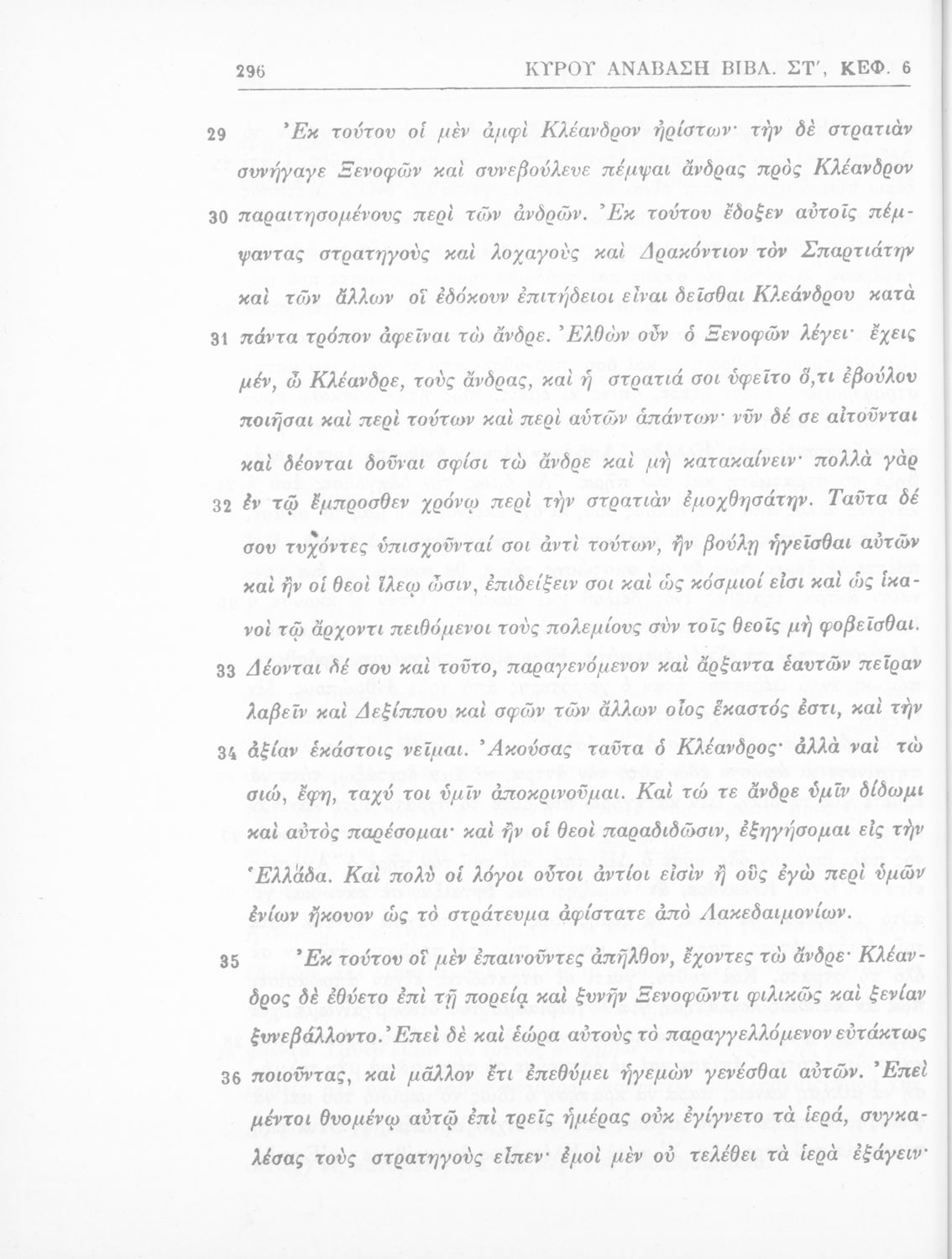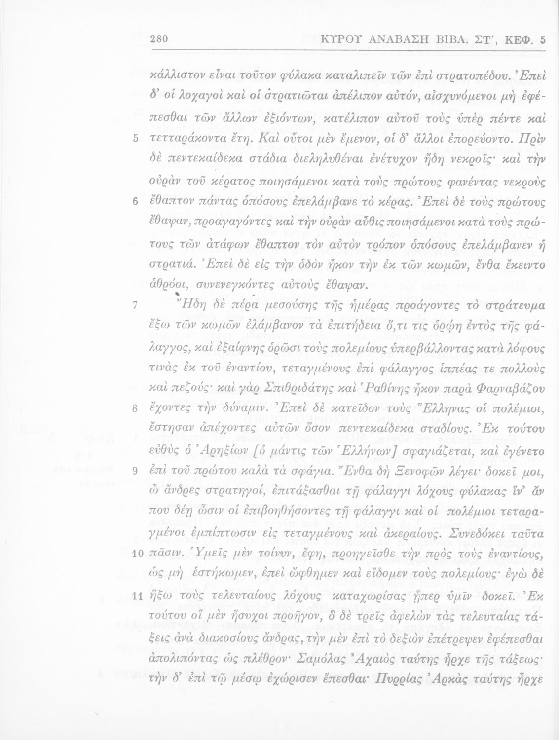 Σχολικό εγχειρίδιο Αρχαίων Ελληνικών Α΄ Γυμνασίου που περιλαμβάνει το έργο του Ξενοφώντα Κύρου Ανάβασις, μετάφραση, ερμηνευτικές και πραγματολογικές παρατηρήσεις.