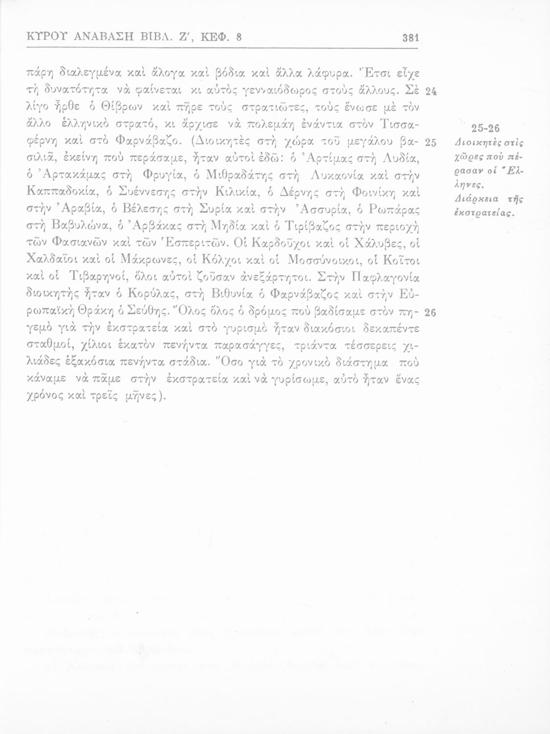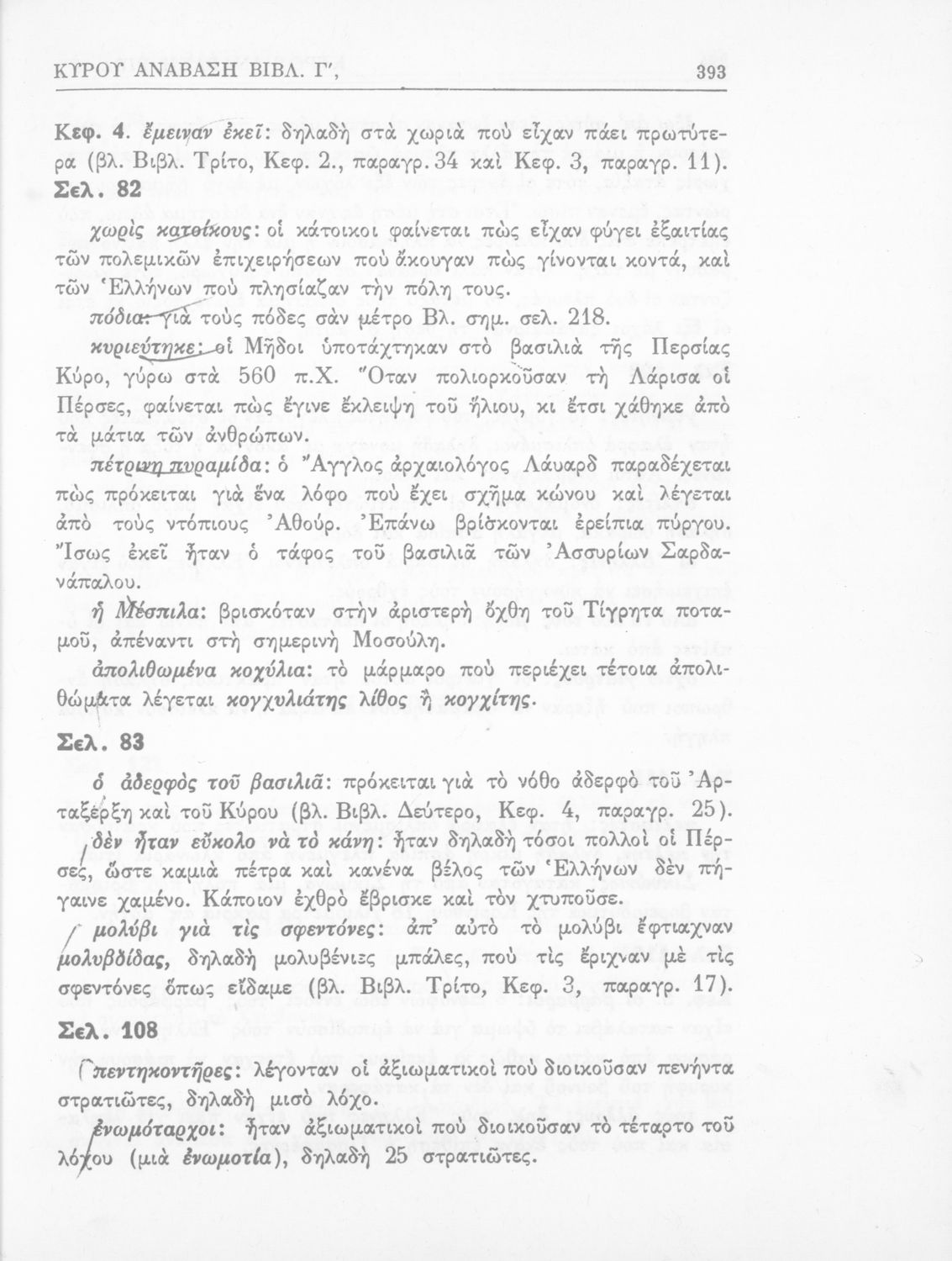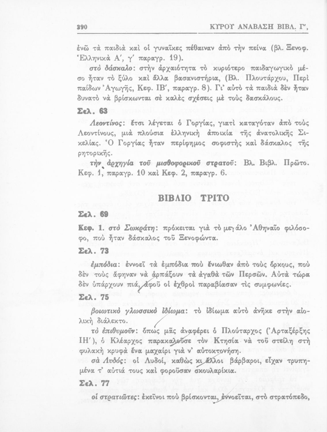 Σχολικό εγχειρίδιο της Γ' Ελληνικού Σχολείου και Αστικών Σχολείων για το μάθημα των Αρχαίων Ελληνικών. Το σύγγραμμα περιλαμβάνει κείμενα κατ΄ επιλογή από τα τέσσερα τελευταία βιβλία του έργου Κύρου Ανάβασις. ...