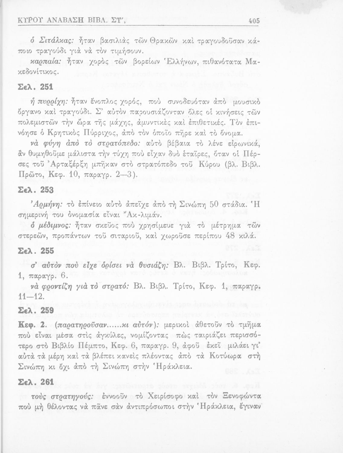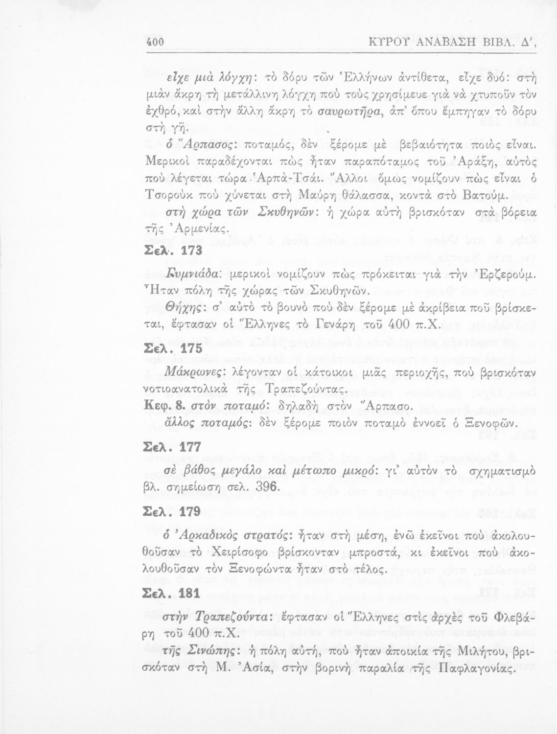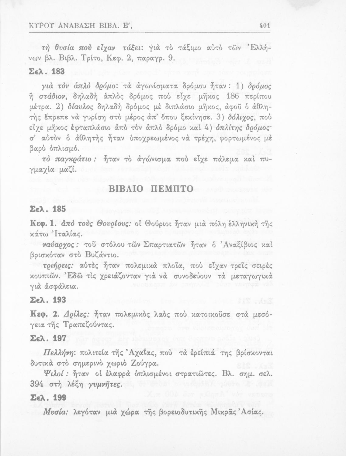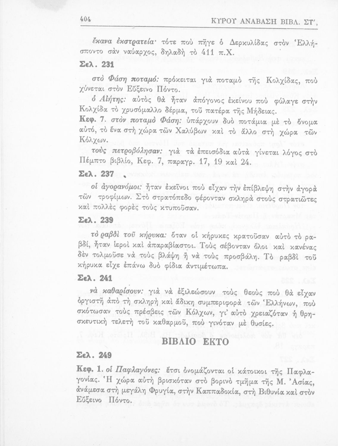Σχολικό εγχειρίδιο της Γ' Ελληνικού Σχολείου και Αστικών Σχολείων για το μάθημα των Αρχαίων Ελληνικών. Το σύγγραμμα περιλαμβάνει κείμενα κατ΄ επιλογή από τα τέσσερα τελευταία βιβλία του έργου Κύρου Ανάβασις. ...