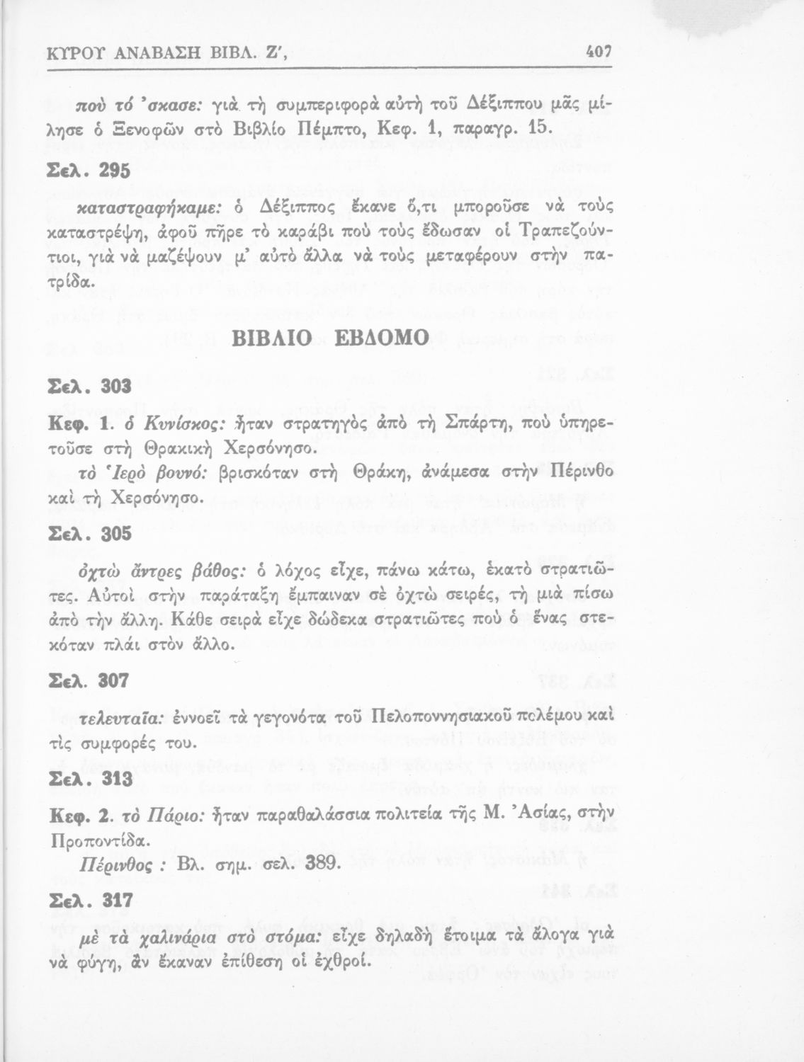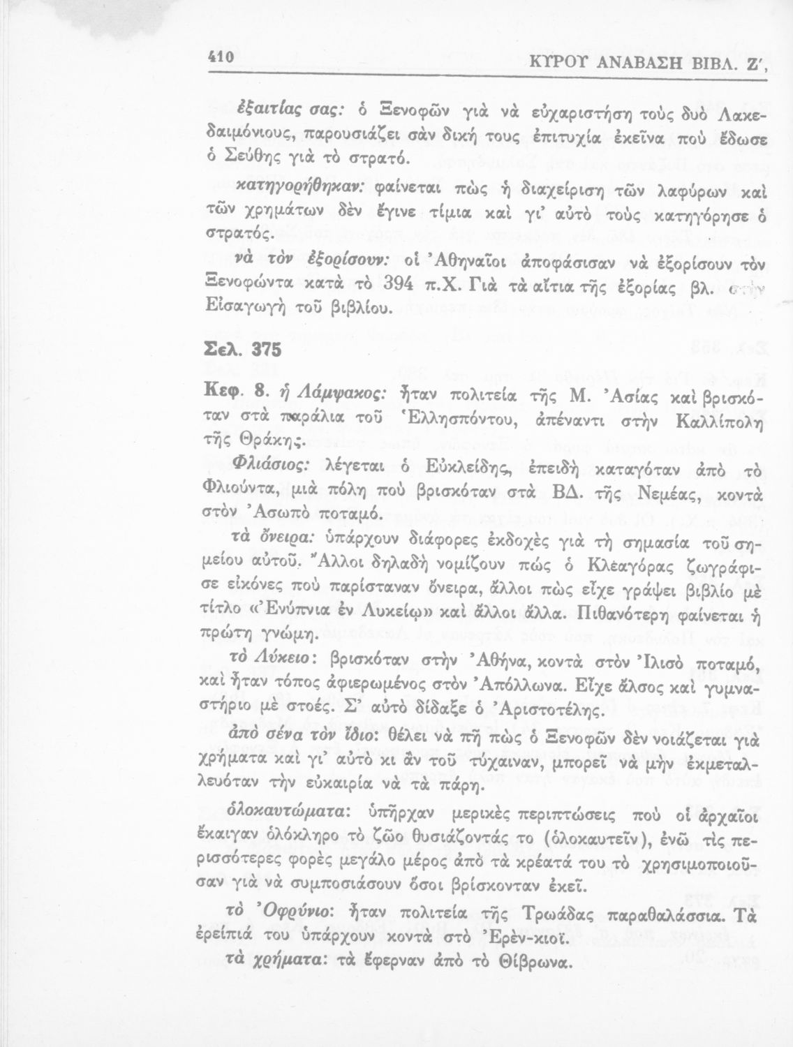 Ξενοφών, Δ. Η. Κυριακόπουλος (σχόλια)
