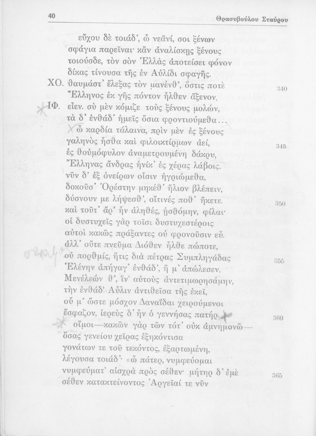 Μαθητικό βοήθημα Αρχαίων Ελληνικών για την Ε' Γυμνασίου που περιλαμβάνει μετάφραση, ερμηνευτικά, γραμματικά και συντακτικά σχόλια στην Ιφιγένεια η εν Αυλίδι.