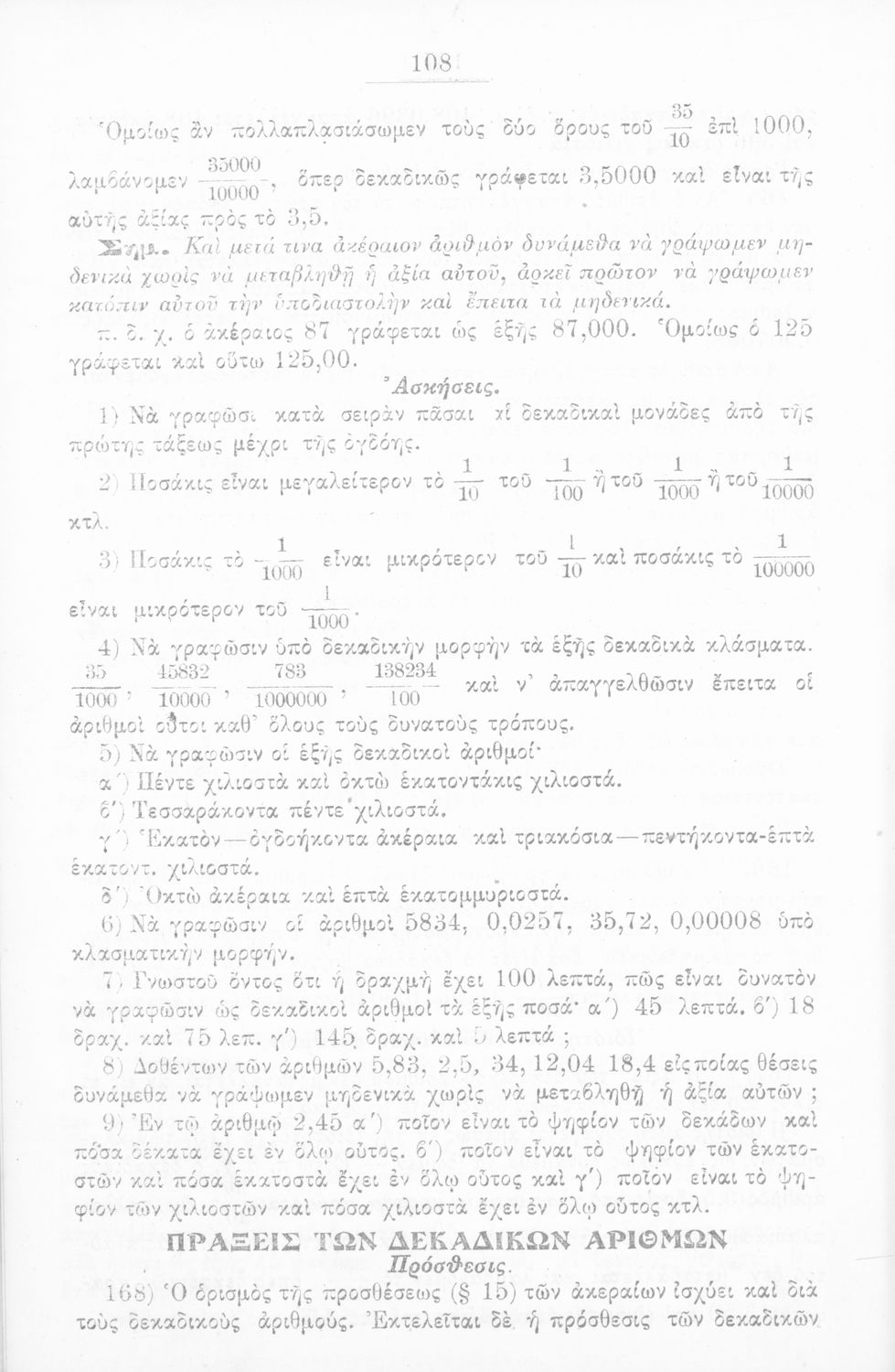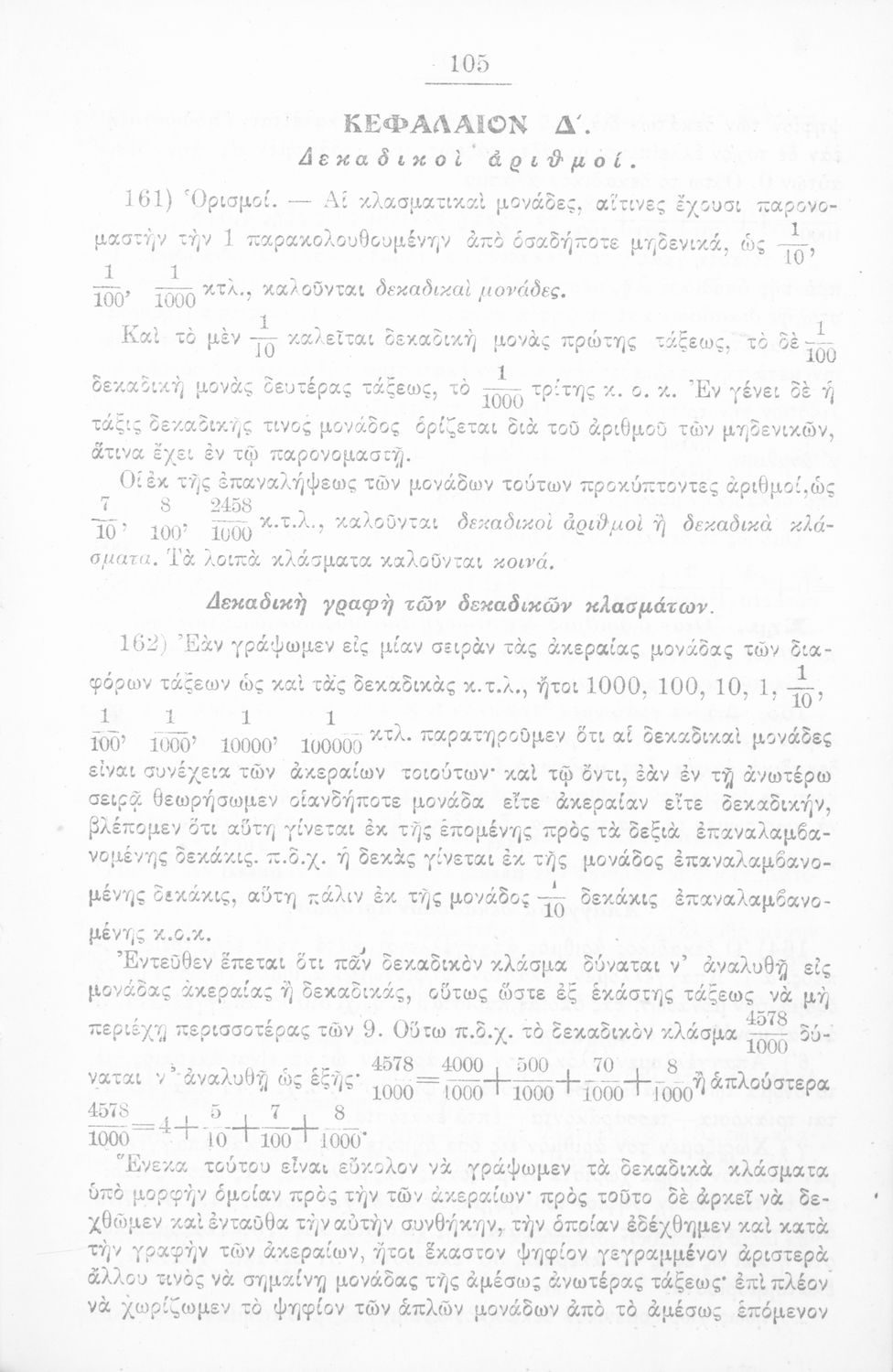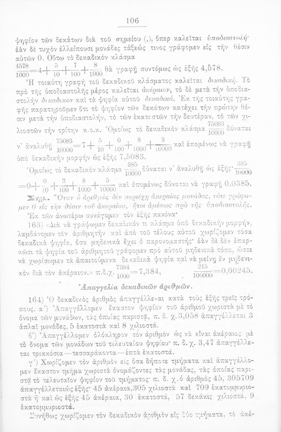 Σχολικό εγχειρίδιο Αριθμητικής για τα Ελληνικά και Αστικά Σχολεία και τα Παρθεναγωγεία που εστιάζει στις αριθμητικές πράξεις, τα κλάσματα, τους δεκαδικούς και συμμιγείς αριθμούς, και τις δυνάμεις. Περιέχει και