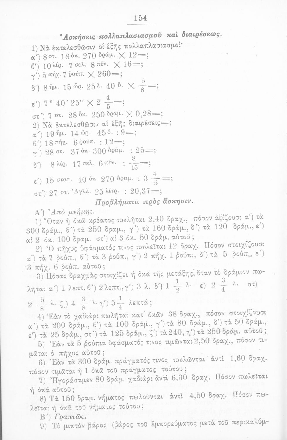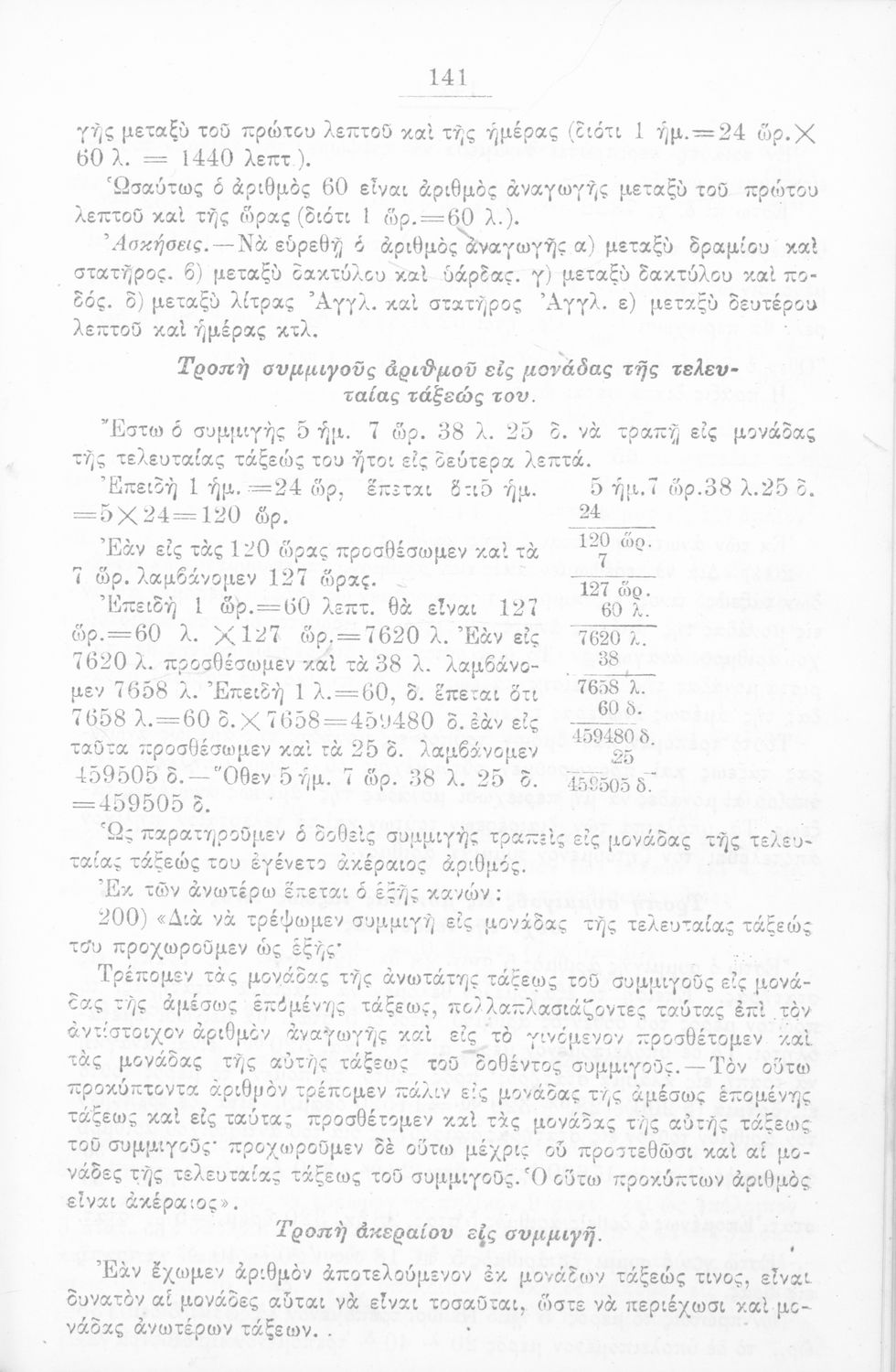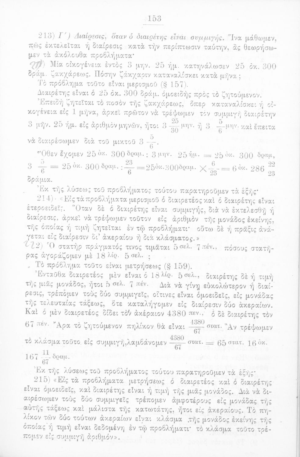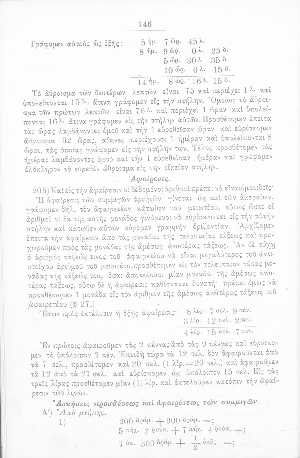 Σχολικό εγχειρίδιο Αριθμητικής για τα Ελληνικά σχολεία και Παρθεναγωγεία που περιέχει θεωρία και ασκήσεις.
