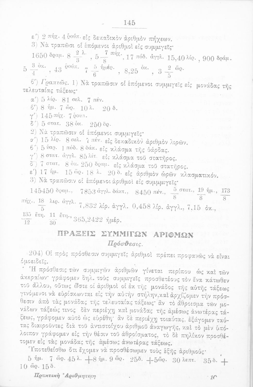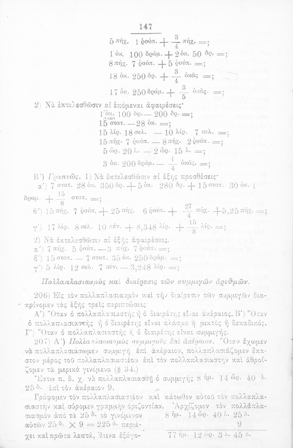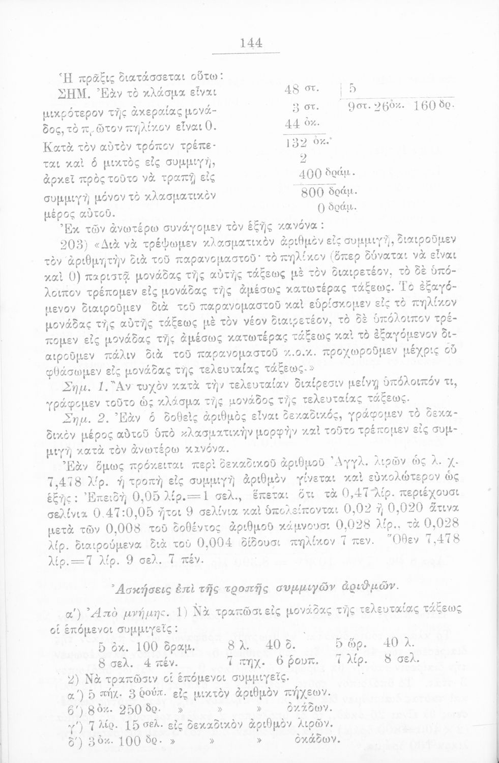 Σχολικό εγχειρίδιο Αριθμητικής για τα Ελληνικά και Αστικά Σχολεία και τα Παρθεναγωγεία που εστιάζει στις αριθμητικές πράξεις, τα κλάσματα, τους δεκαδικούς και συμμιγείς αριθμούς, και τις δυνάμεις. Περιέχει και