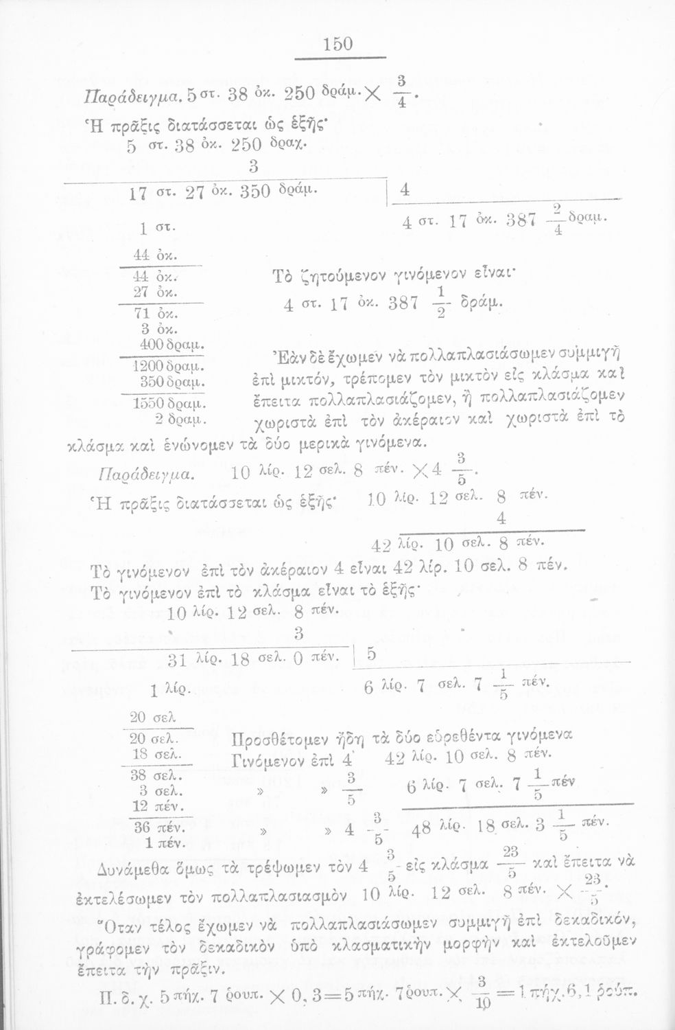 Σχολικό εγχειρίδιο Αριθμητικής για τα Ελληνικά και Αστικά Σχολεία και τα Παρθεναγωγεία που εστιάζει στις αριθμητικές πράξεις, τα κλάσματα, τους δεκαδικούς και συμμιγείς αριθμούς, τα ανάλογα ποσά και τις ...