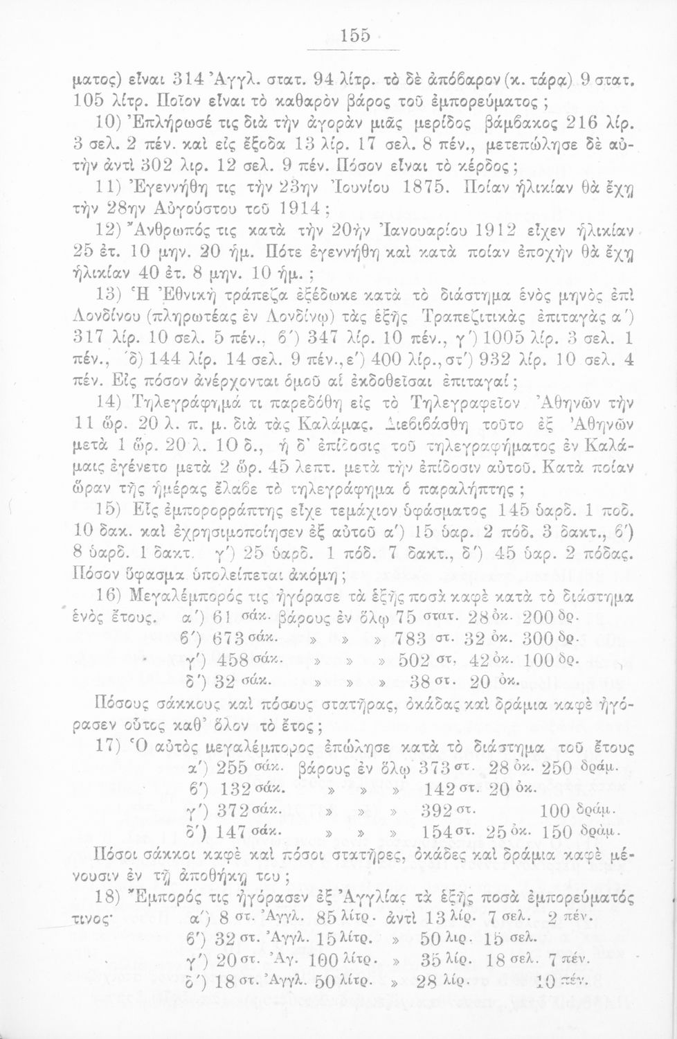 Τάξη:  Α' Ελληνικού Σχολείου / Β' Ελληνικού Σχολείου / Γ' Ελληνικού Σχολείου / Παρθεναγωγείο / Εμπορικές και Πρακτικές Σχολές