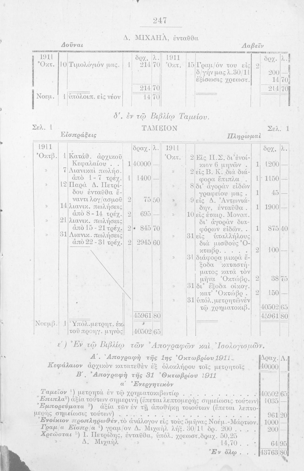 Τάξη:  Α' Ελληνικού Σχολείου / Β' Ελληνικού Σχολείου / Γ' Ελληνικού Σχολείου / Αστικό Σχολείο / Ανωτέρα Παρθεναγωγεία