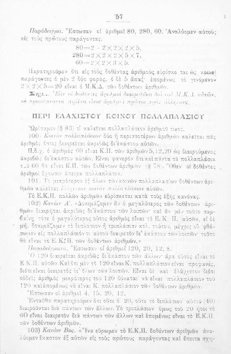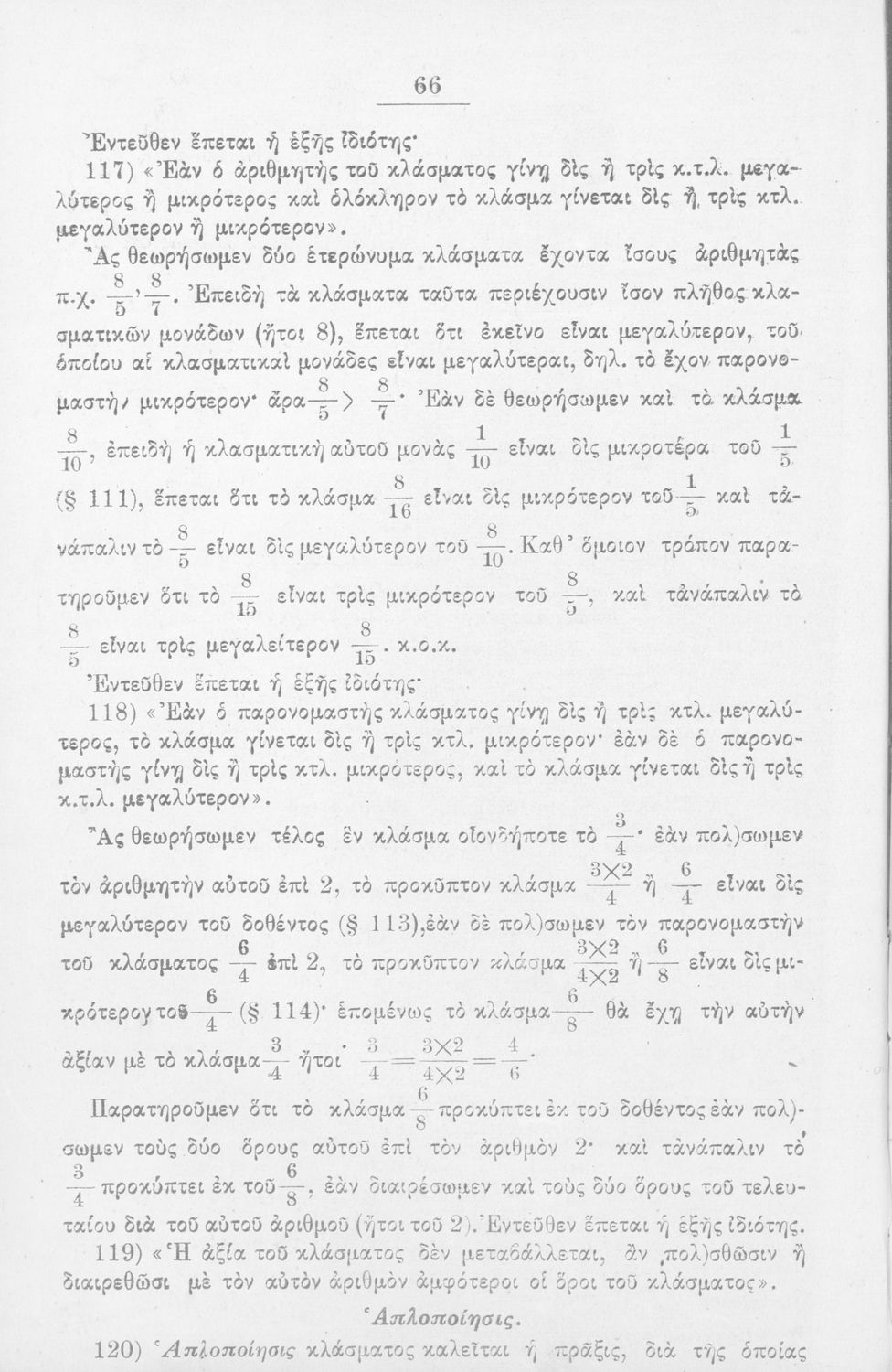 Παρουσίαση περιεχομένου: Σχολικό εγχειρίδιο Αριθμητικής για τα Ελληνικά Σχολεία και Παρθεναγωγεία που περιέχει θεωρία και ασκήσεις και εστιάζει στις αριθμητικές πράξεις και τις ιδιότητές τους. Περιέχει και στοιχεία λογιστικής.