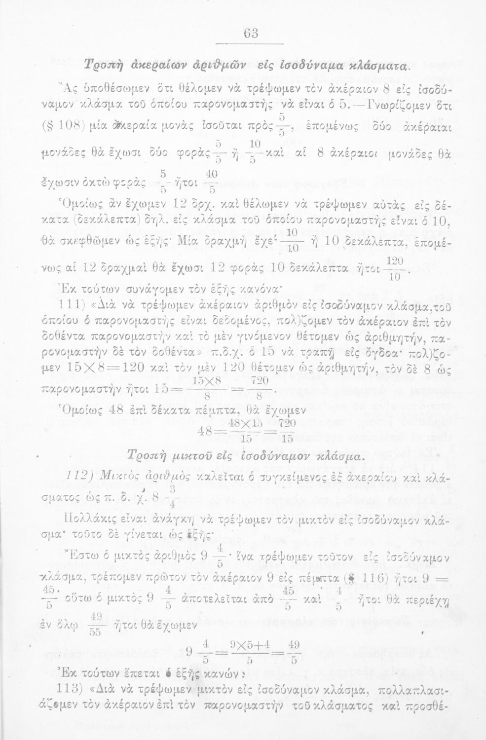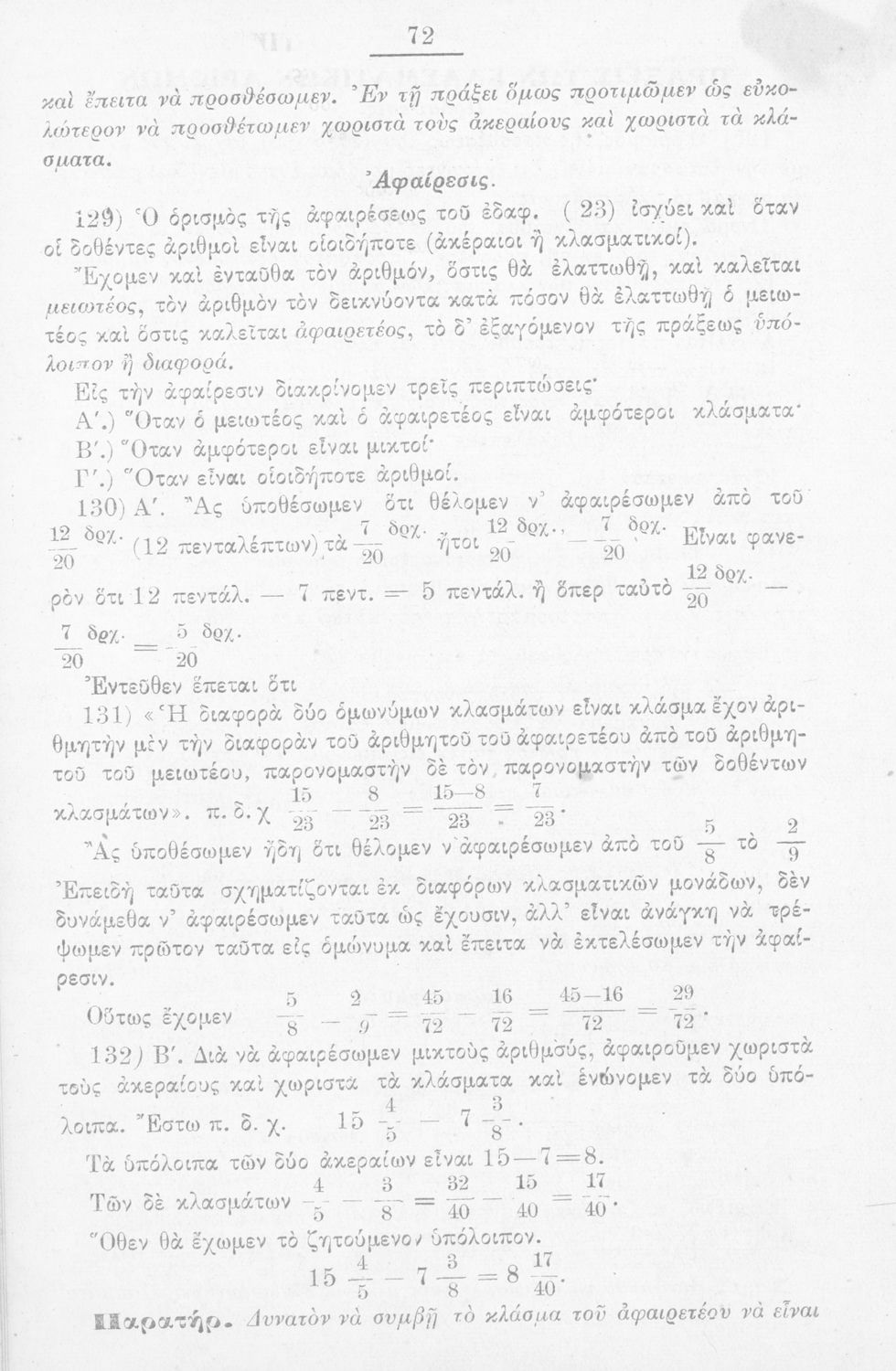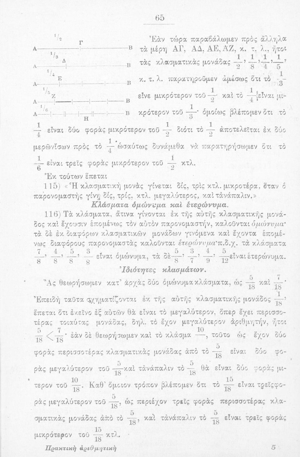 Σχολικό εγχειρίδιο Αριθμητικής για τα Ελληνικά σχολεία και Παρθεναγωγεία που περιέχει θεωρία και ασκήσεις.