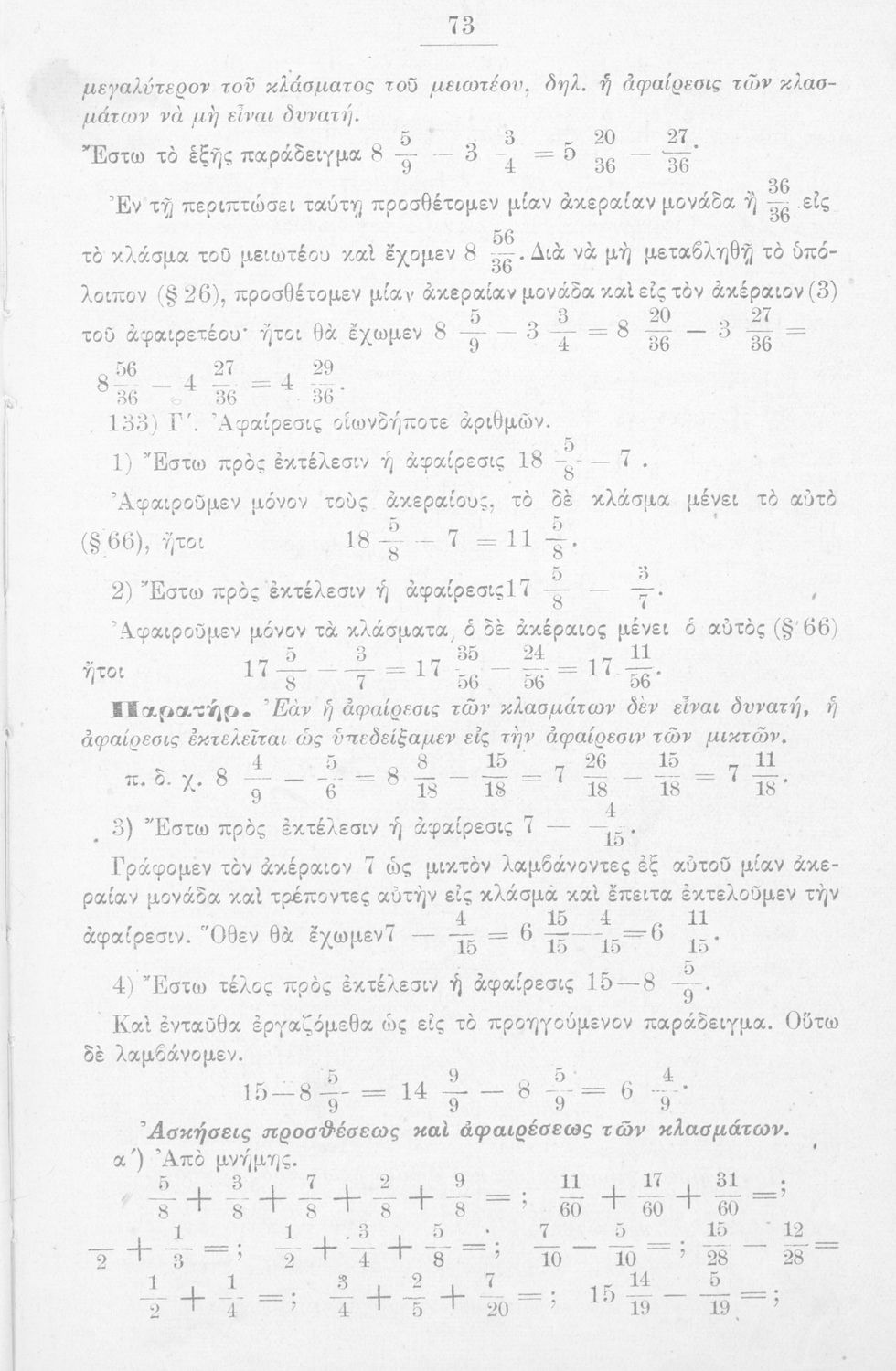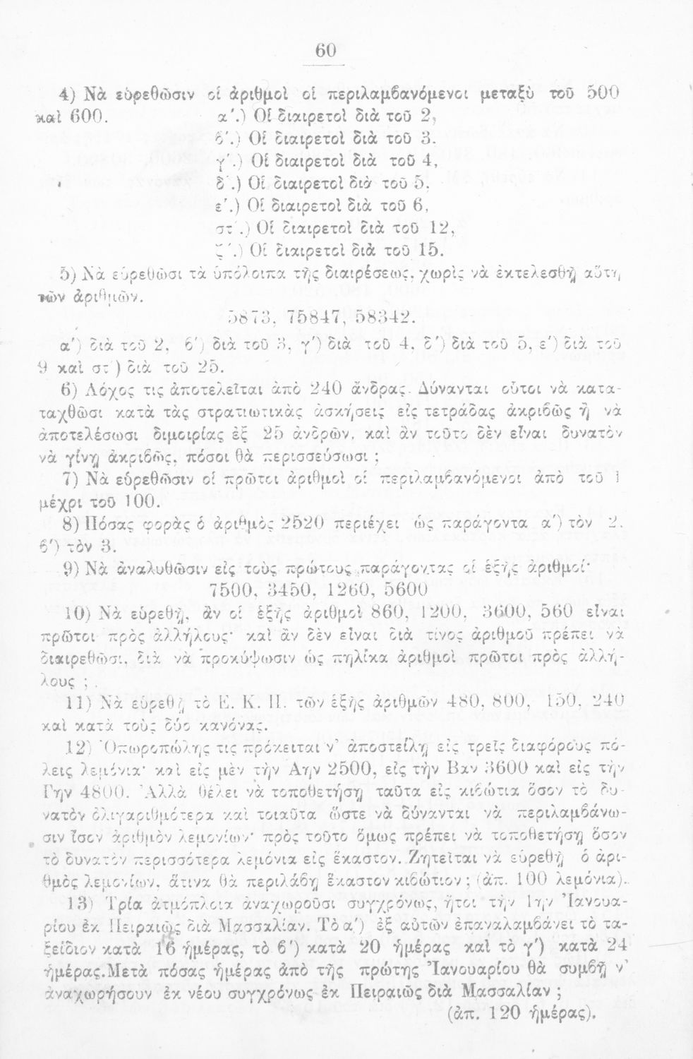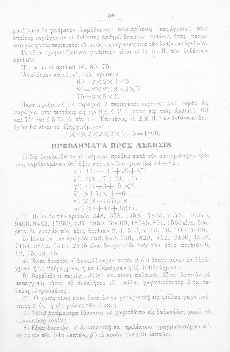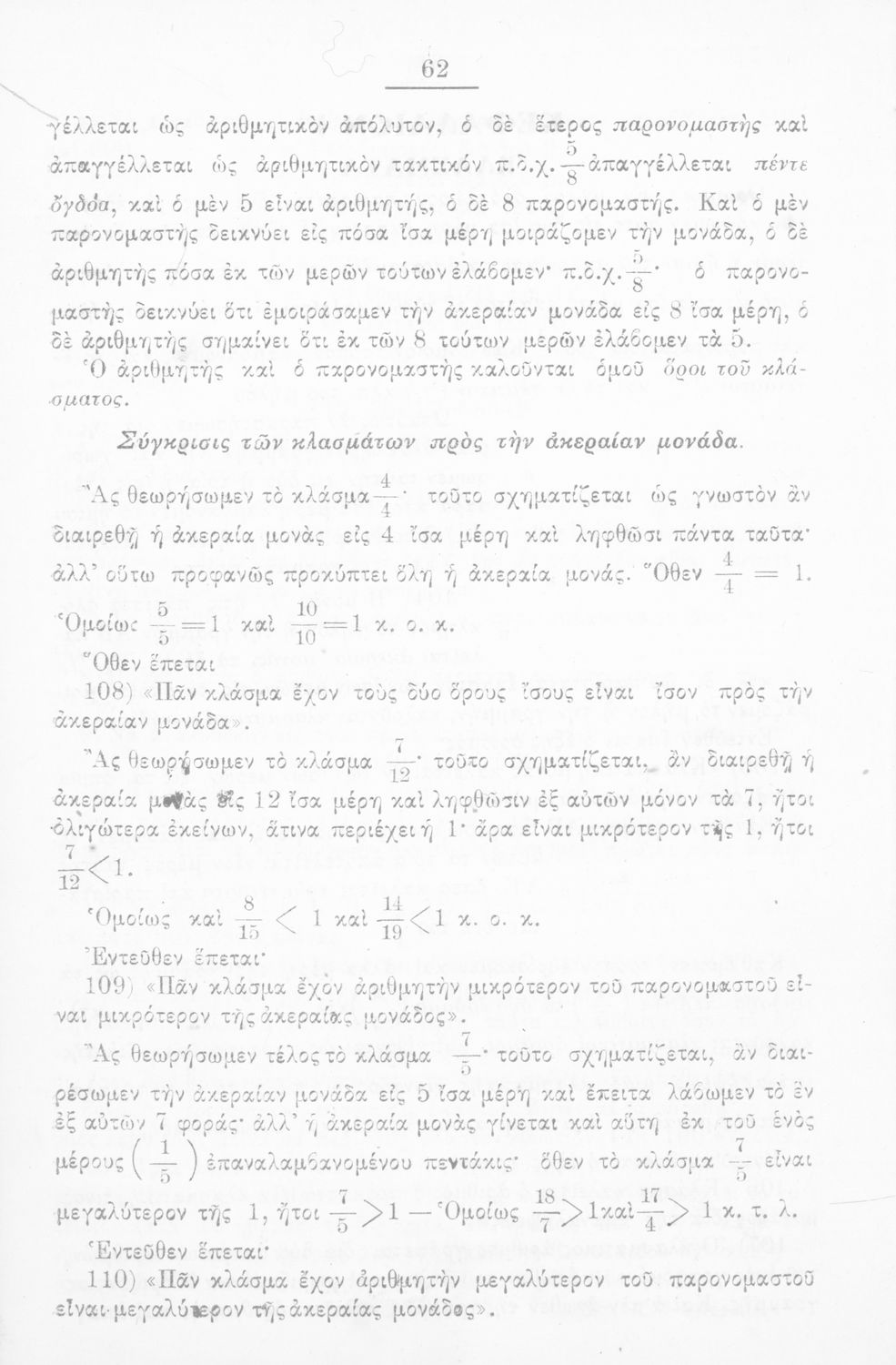 Σχολικό εγχειρίδιο Αριθμητικής για τα Ελληνικά σχολεία και Παρθεναγωγεία που περιέχει θεωρία και ασκήσεις.
