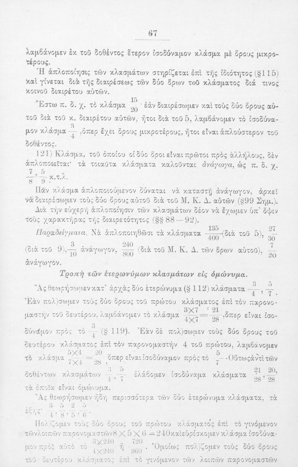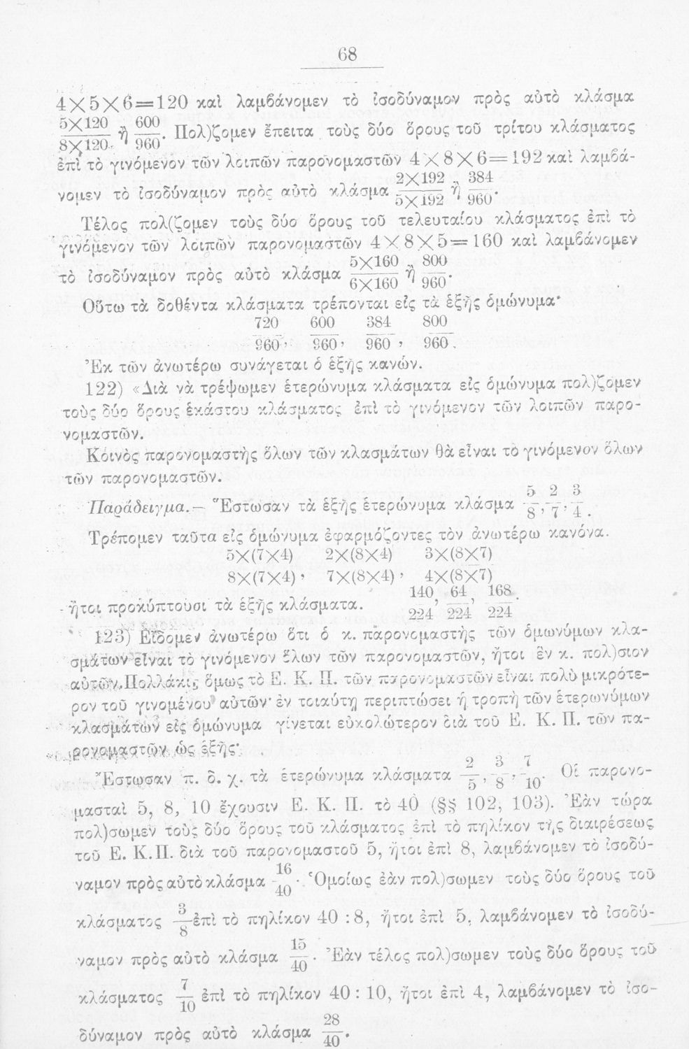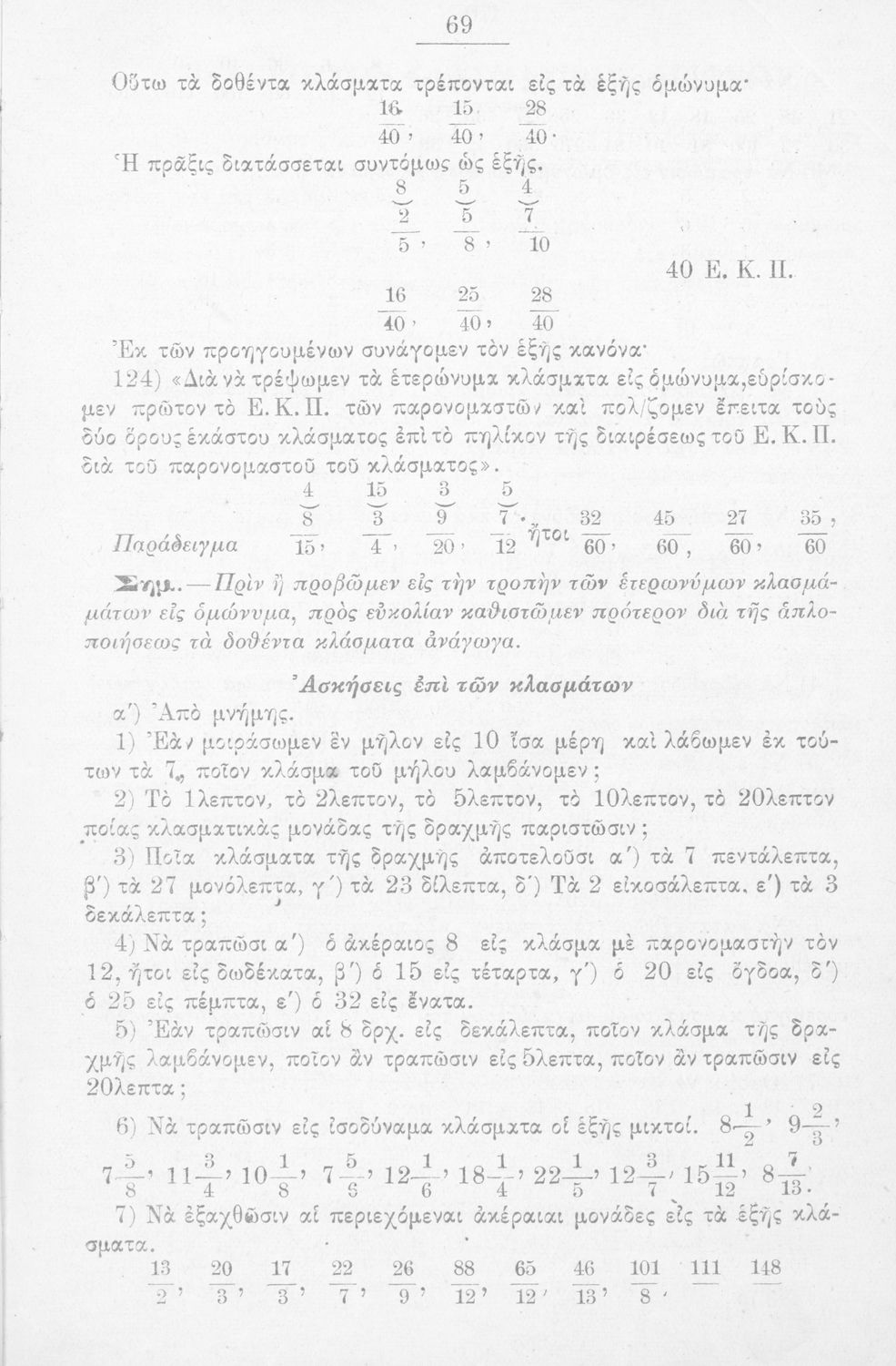 Σχολικό εγχειρίδιο Αριθμητικής για τα Ελληνικά και Αστικά Σχολεία και τα Παρθεναγωγεία που εστιάζει στις αριθμητικές πράξεις, τα κλάσματα, τους δεκαδικούς και συμμιγείς αριθμούς, και τις δυνάμεις. Περιέχει και