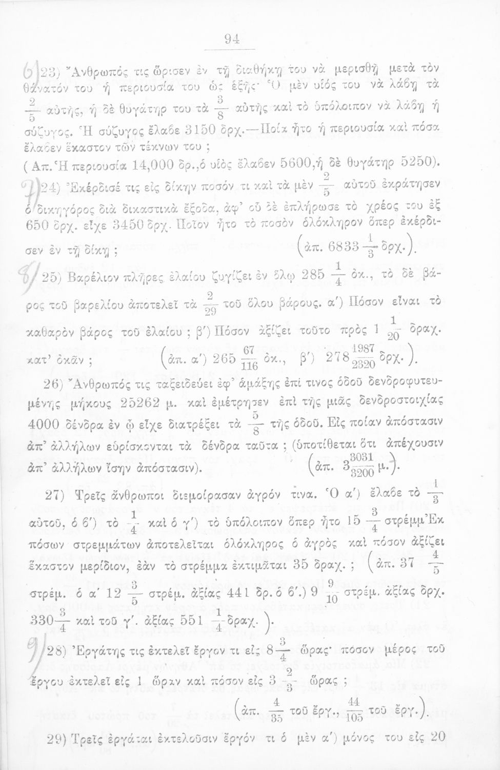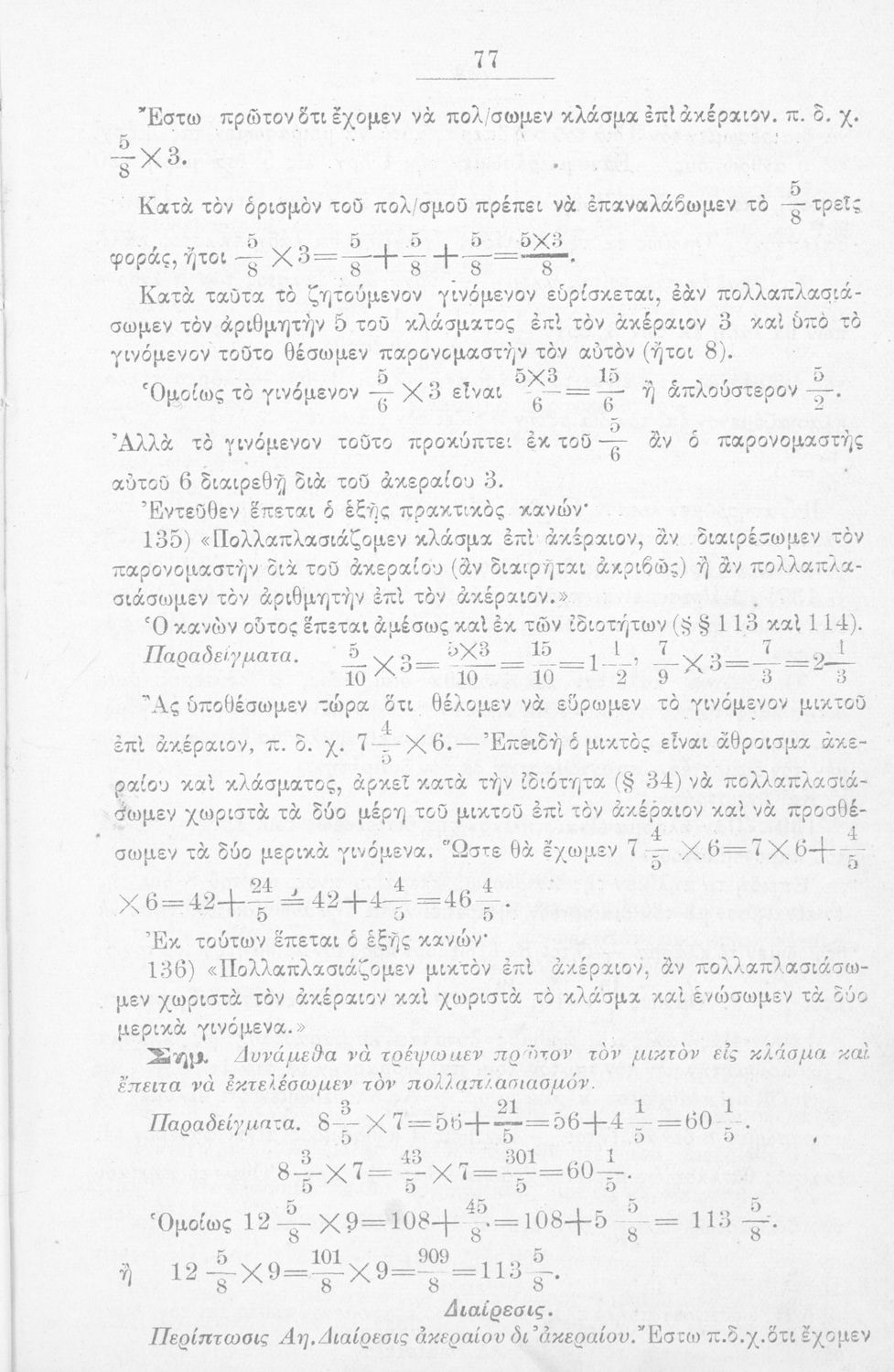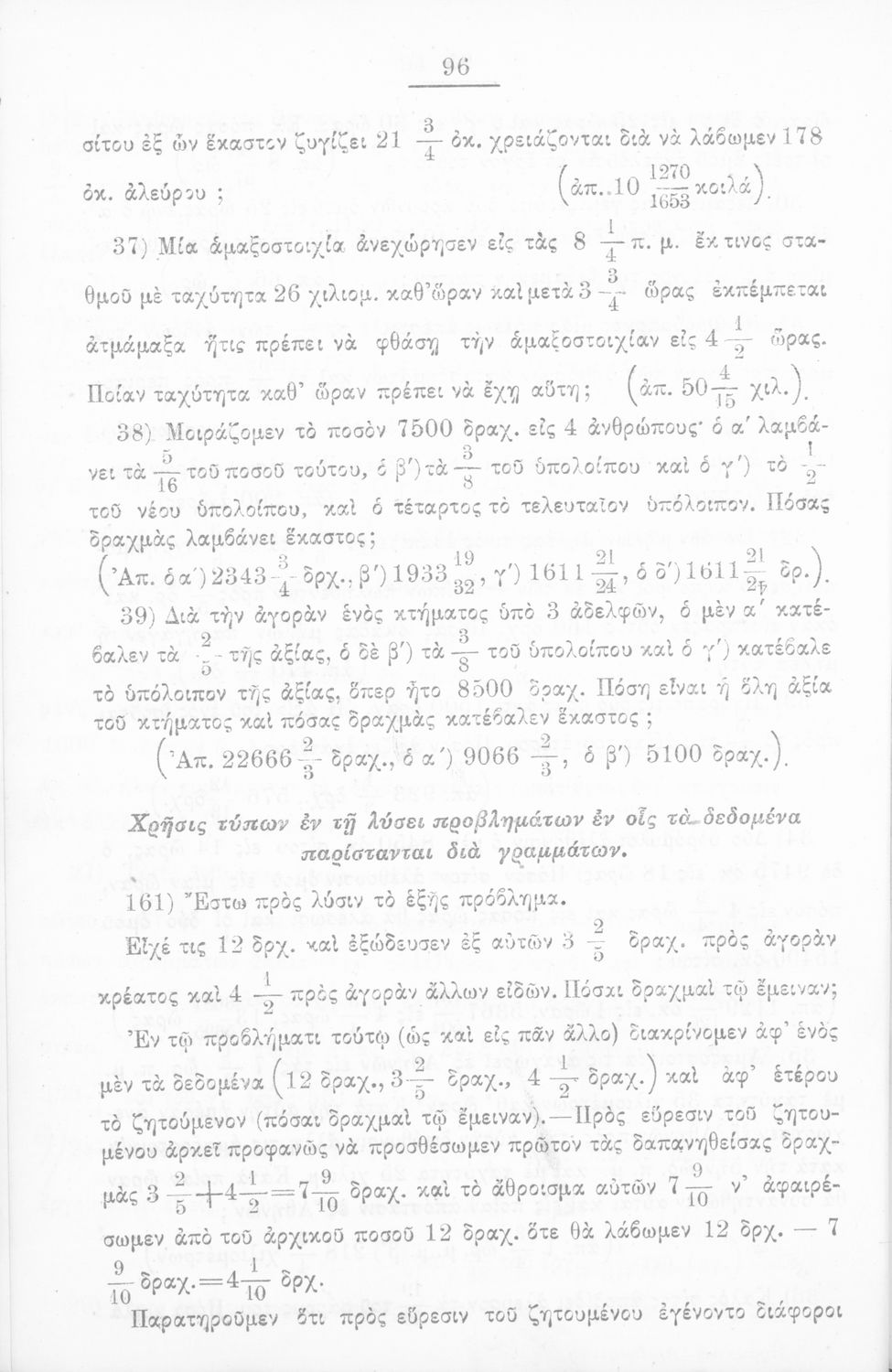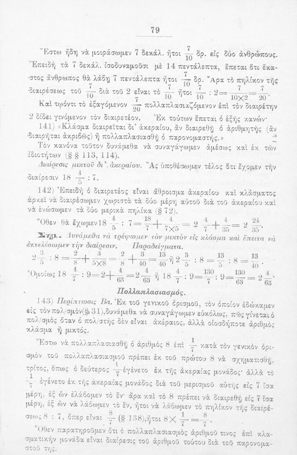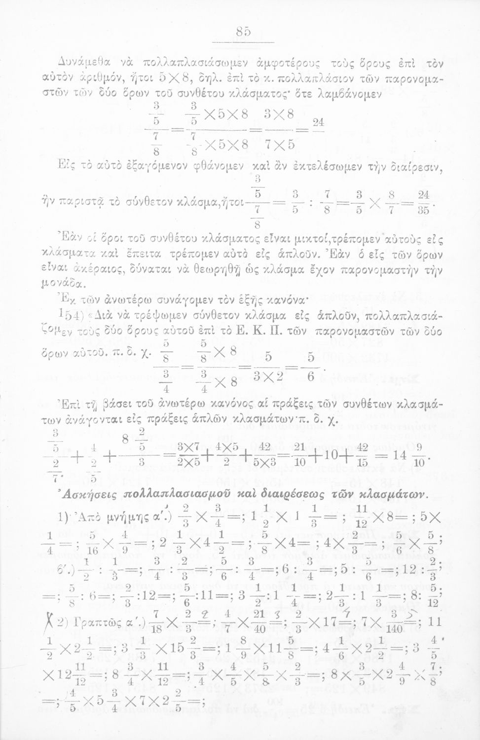 Σχολικό εγχειρίδιο Αριθμητικής για τα Ελληνικά και Αστικά Σχολεία και τα Παρθεναγωγεία που εστιάζει στις αριθμητικές πράξεις, τα κλάσματα, τους δεκαδικούς και συμμιγείς αριθμούς, και τις δυνάμεις. Περιέχει και
