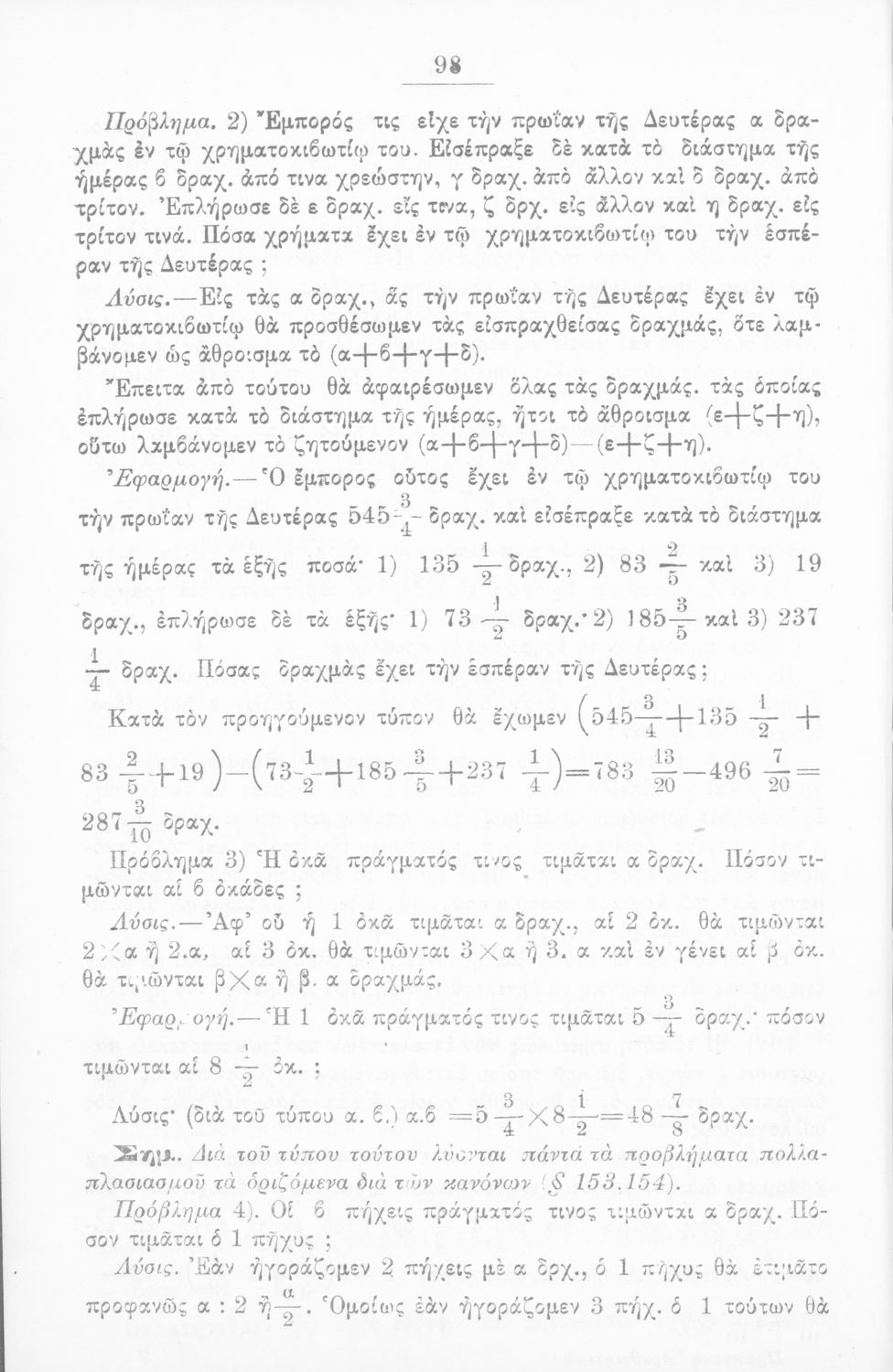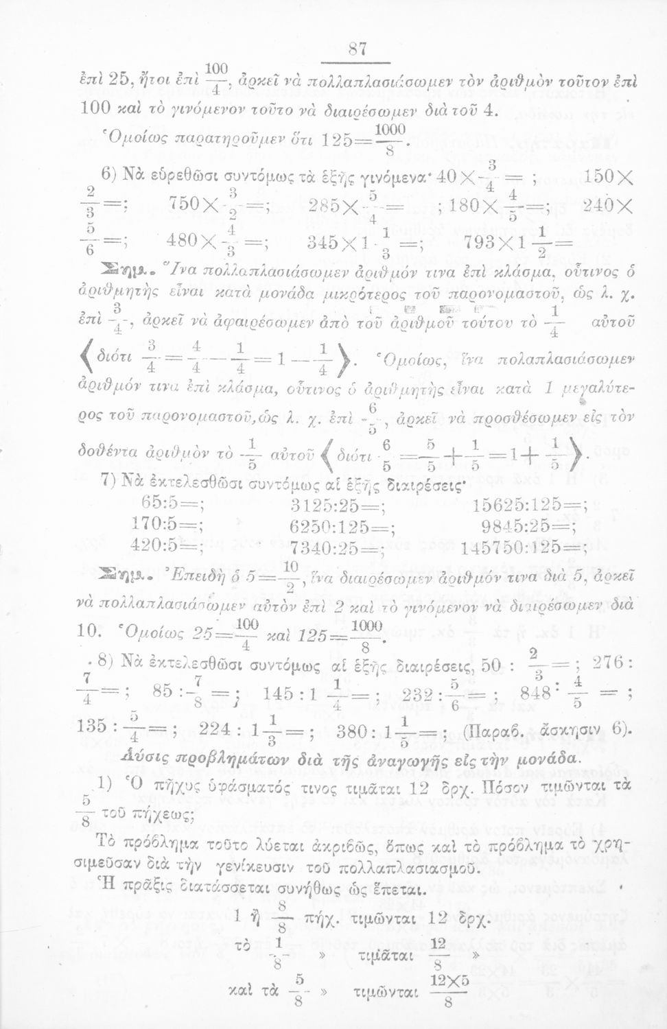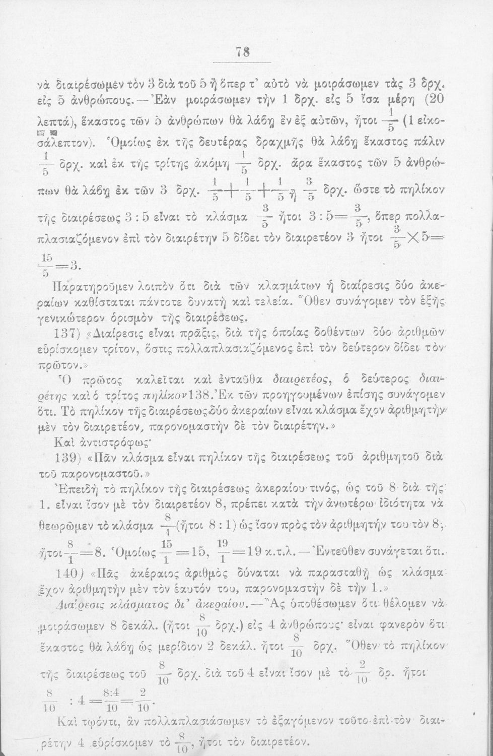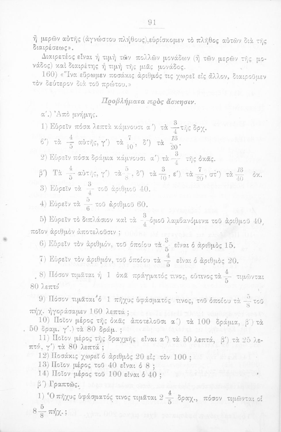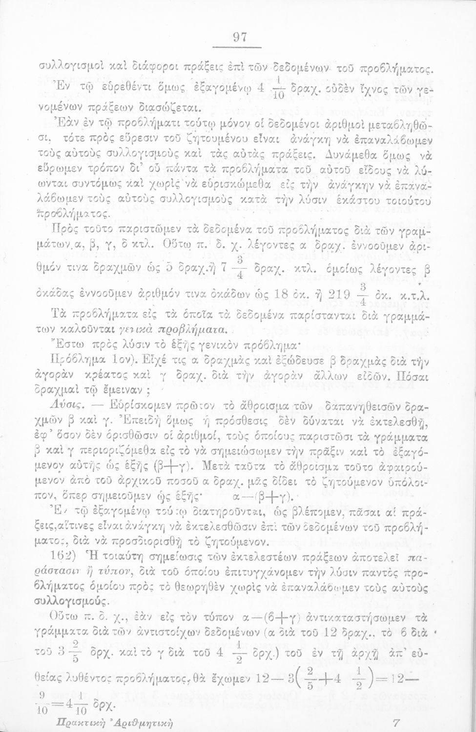 Σχολικό εγχειρίδιο Αριθμητικής για τα Ελληνικά σχολεία και Παρθεναγωγεία που περιέχει θεωρία και ασκήσεις.