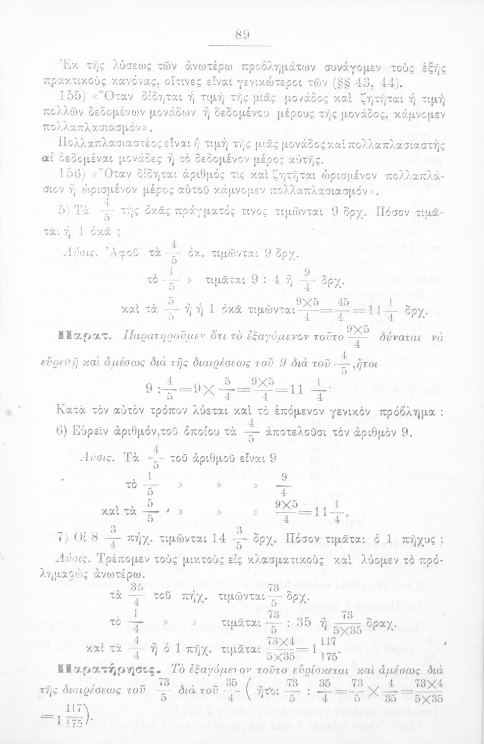 Σχολικό εγχειρίδιο Αριθμητικής για τα Ελληνικά και Αστικά Σχολεία και τα Παρθεναγωγεία που εστιάζει στις αριθμητικές πράξεις, τα κλάσματα, τους δεκαδικούς και συμμιγείς αριθμούς, τα ανάλογα ποσά και τις ...