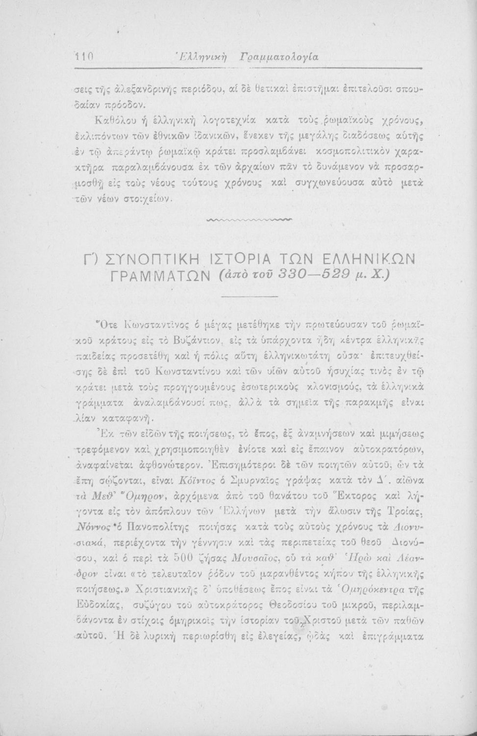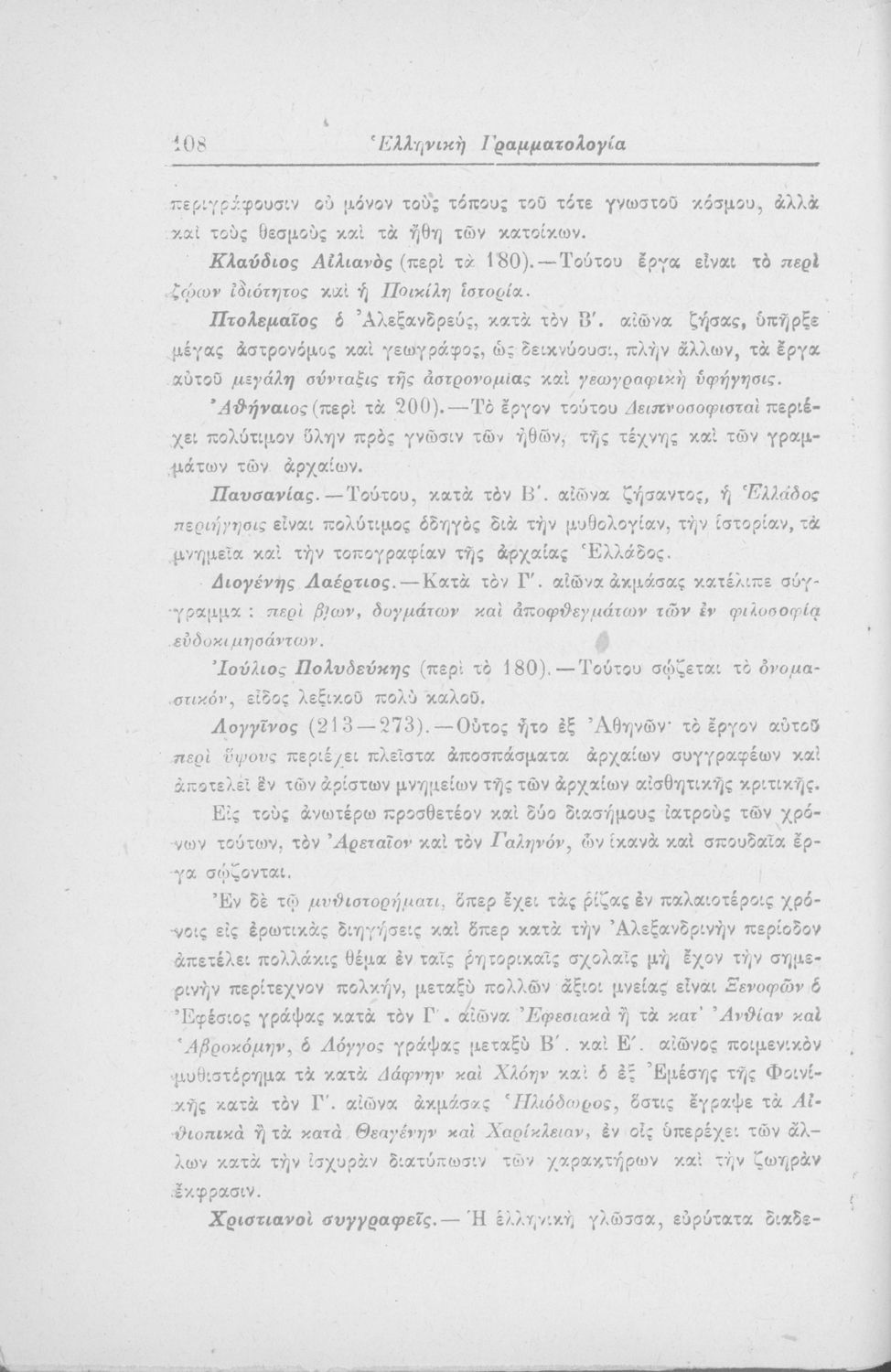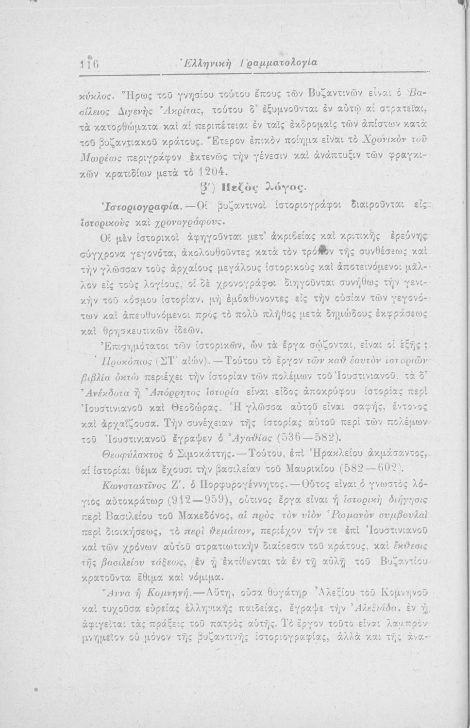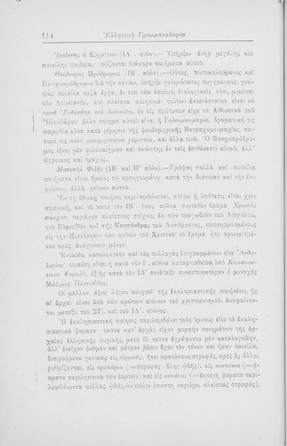 Βαθμίδα εκπαίδευσης: Δευτεροβάθμια Τάξη: Γυμνάσιο Μάθημα: Νέα Ελληνικά Γλώσσα: Καθαρεύουσα Παρουσίαση περιεχομένου: Σχολικό εγχειρίδιο Αρχαίων και Νέων Ελληνικών για το Γυμνάσιο που εξετάζει την εξέλιξη της ποίησης και του πεζού λόγου κατά την Αρχαϊκή, Κλασσική, Αλεξανδρινή και Ρωμαϊκή και Βυζαντινή περίοδο. |