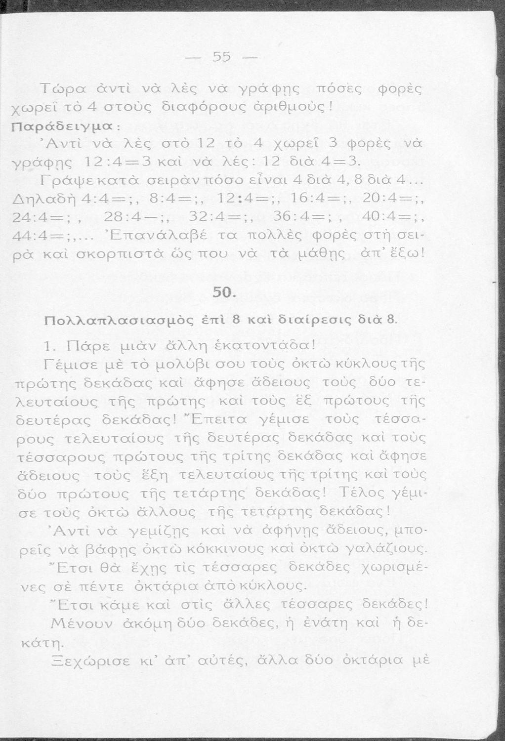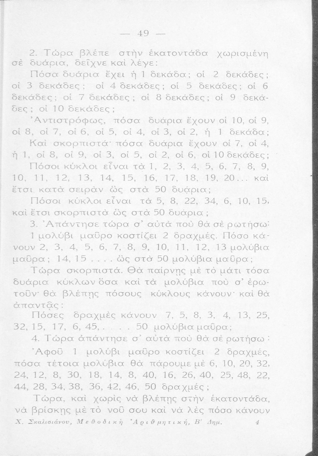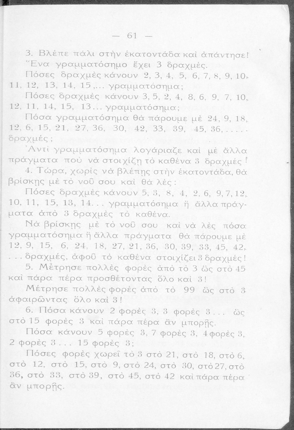 Παιδαγωγικό βοήθημα Αριθμητικής ΣΤ΄ Δημοτικού, γραμμένο σύμφωνα με τις επιταγές του Σχολείου Εργασίας, που περιλαμβάνει 170 μαθήματα, ένα για κάθε μέρα του σχολικού έτους.