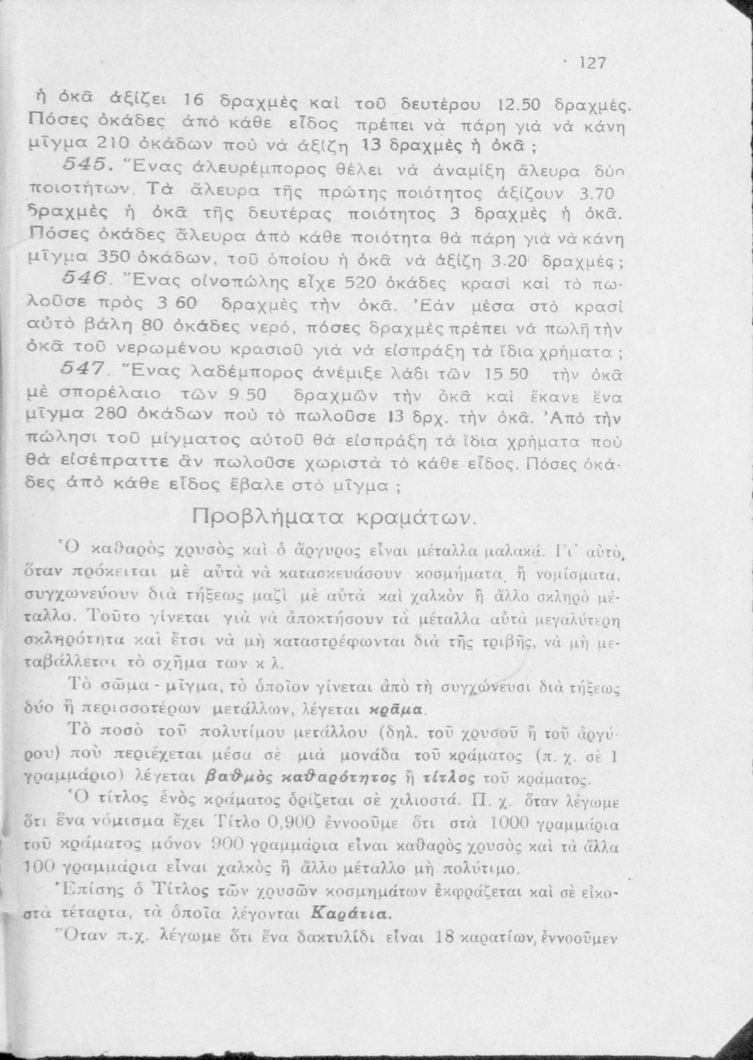 Σχολικό εγχειρίδιο Μαθηματικών ΣΤ΄ Δημοτικού που περιλαμβάνει ασκήσεις λογιστικού χαρακτήρα και ασκήσεις μέτρησης γεωμετρικών σχημάτων. Φέρει το σύμβολο της δικτατορίας.