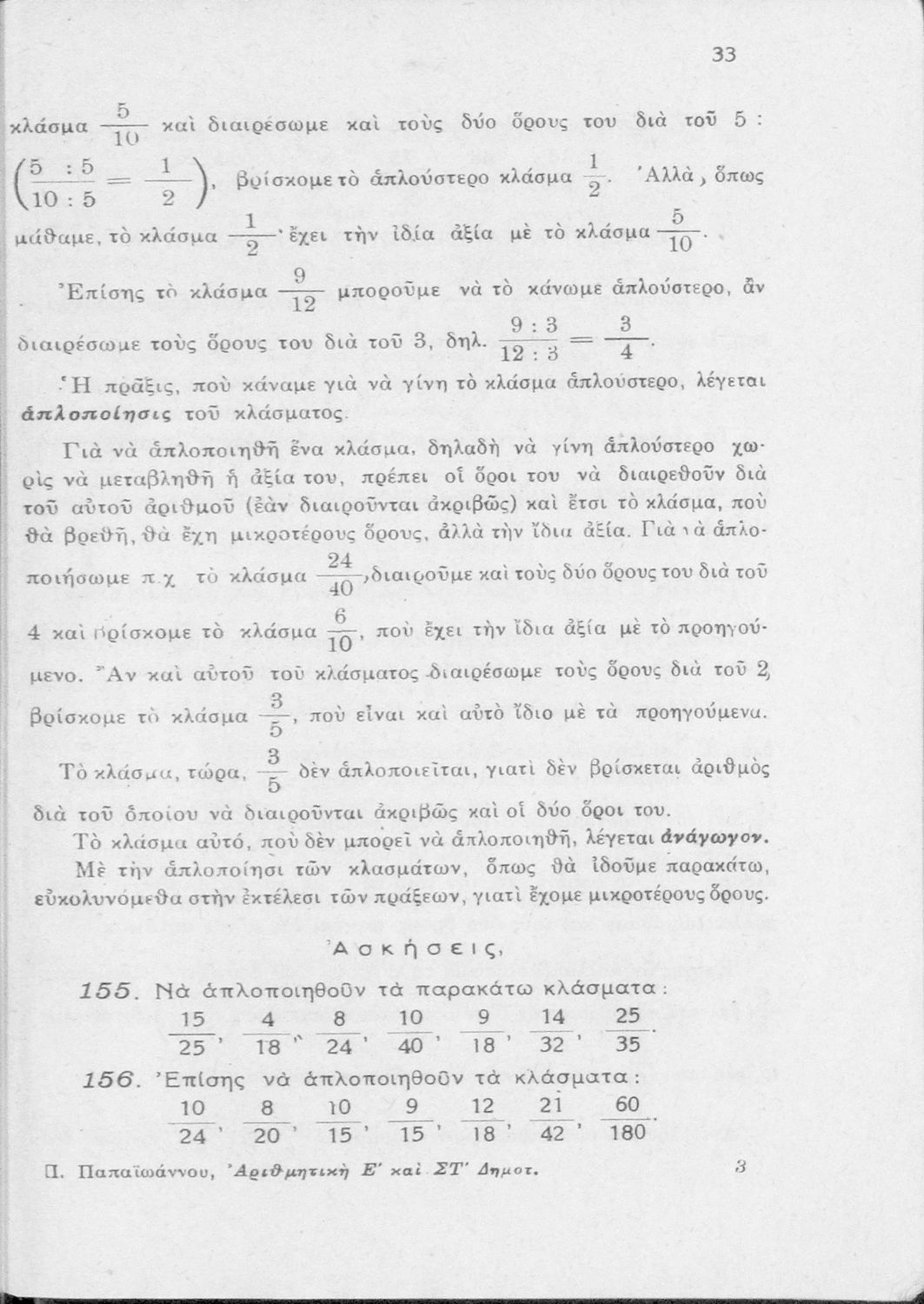 Αριθμητική Ε΄ και ΣΤ΄ τάξεως του Δημοτικού Σχολείου