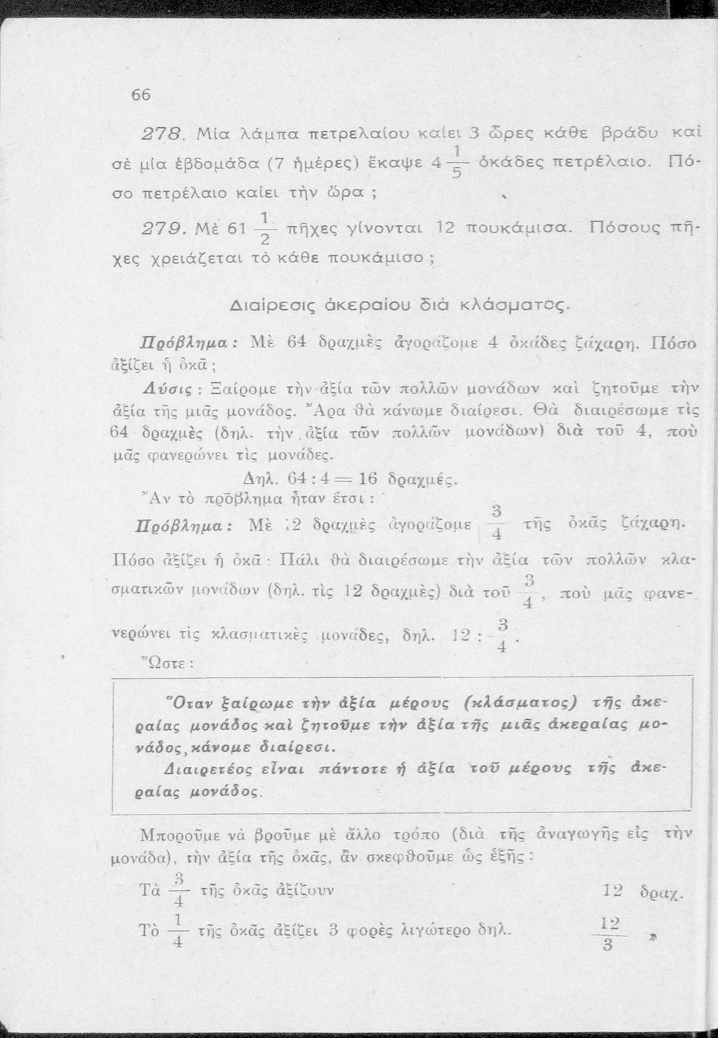 Παρουσίαση περιεχομένου: Μαθητικό βοήθημα Αριθμητικής για τις Ε΄ και ΣΤ΄ Δημοτικού που περιέχει ασκήσεις με επιχειρηματικό προσανατολισμό και εστιάζει στις αριθμητικές πράξεις με κλάσματα και την απλή μέθοδο των τριών.
