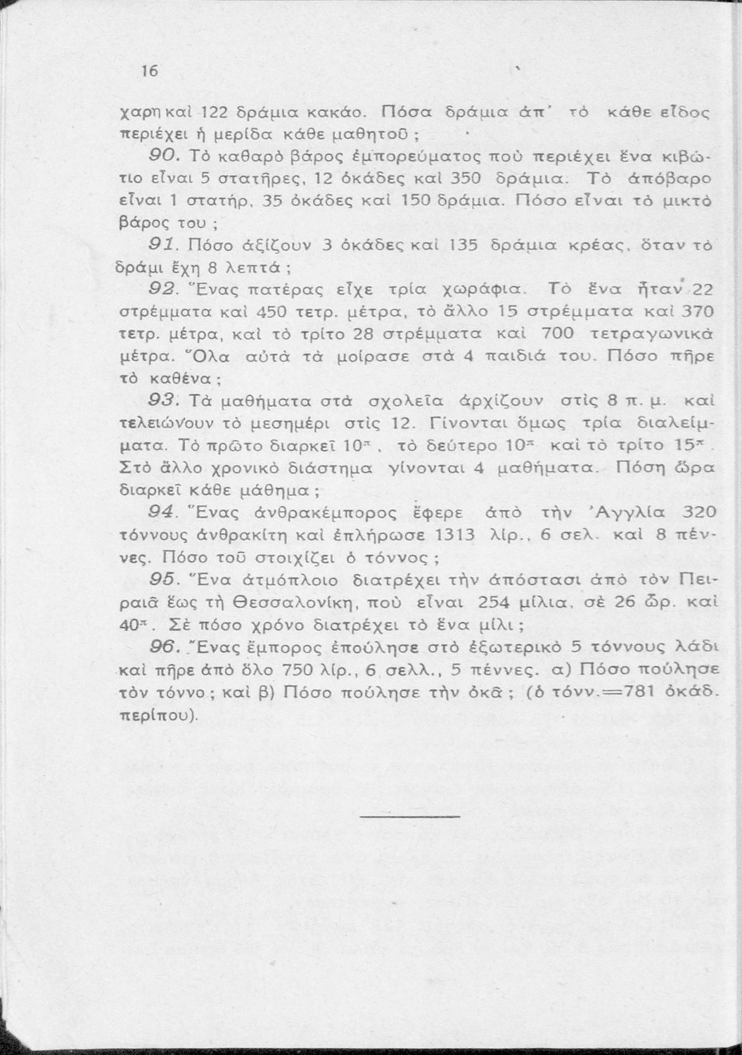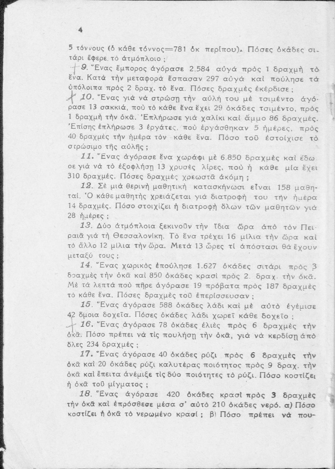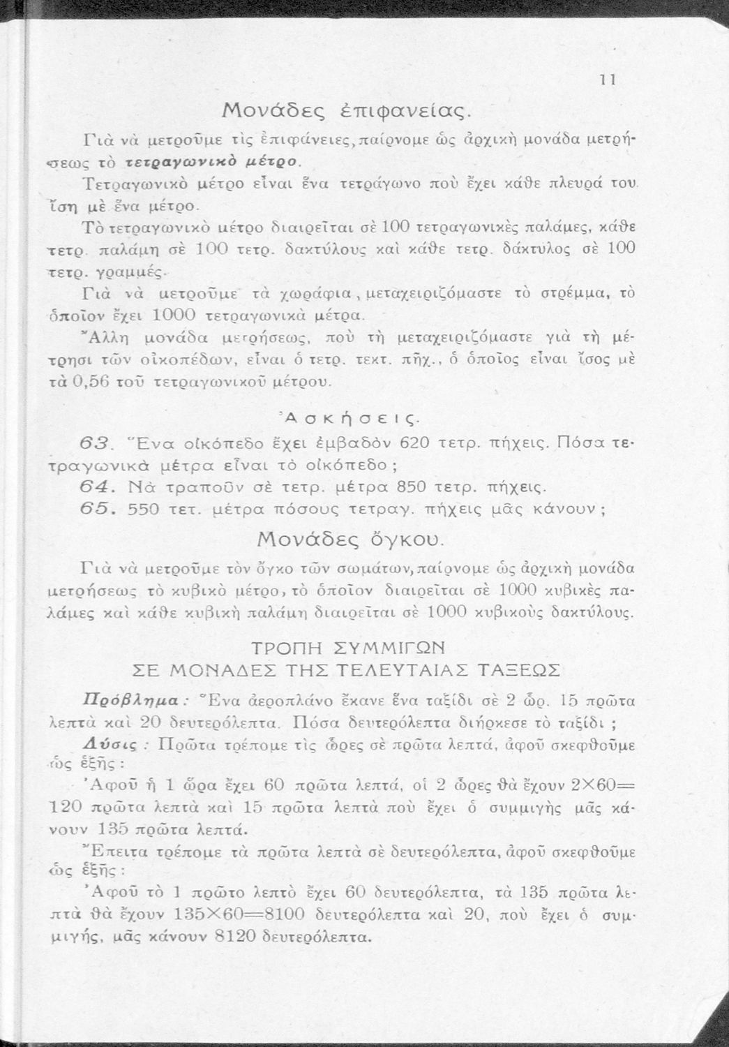 Σχολικό εγχειρίδιο Μαθηματικών ΣΤ΄ Δημοτικού που περιλαμβάνει ασκήσεις λογιστικού χαρακτήρα και ασκήσεις μέτρησης γεωμετρικών σχημάτων. Φέρει το σύμβολο της δικτατορίας.