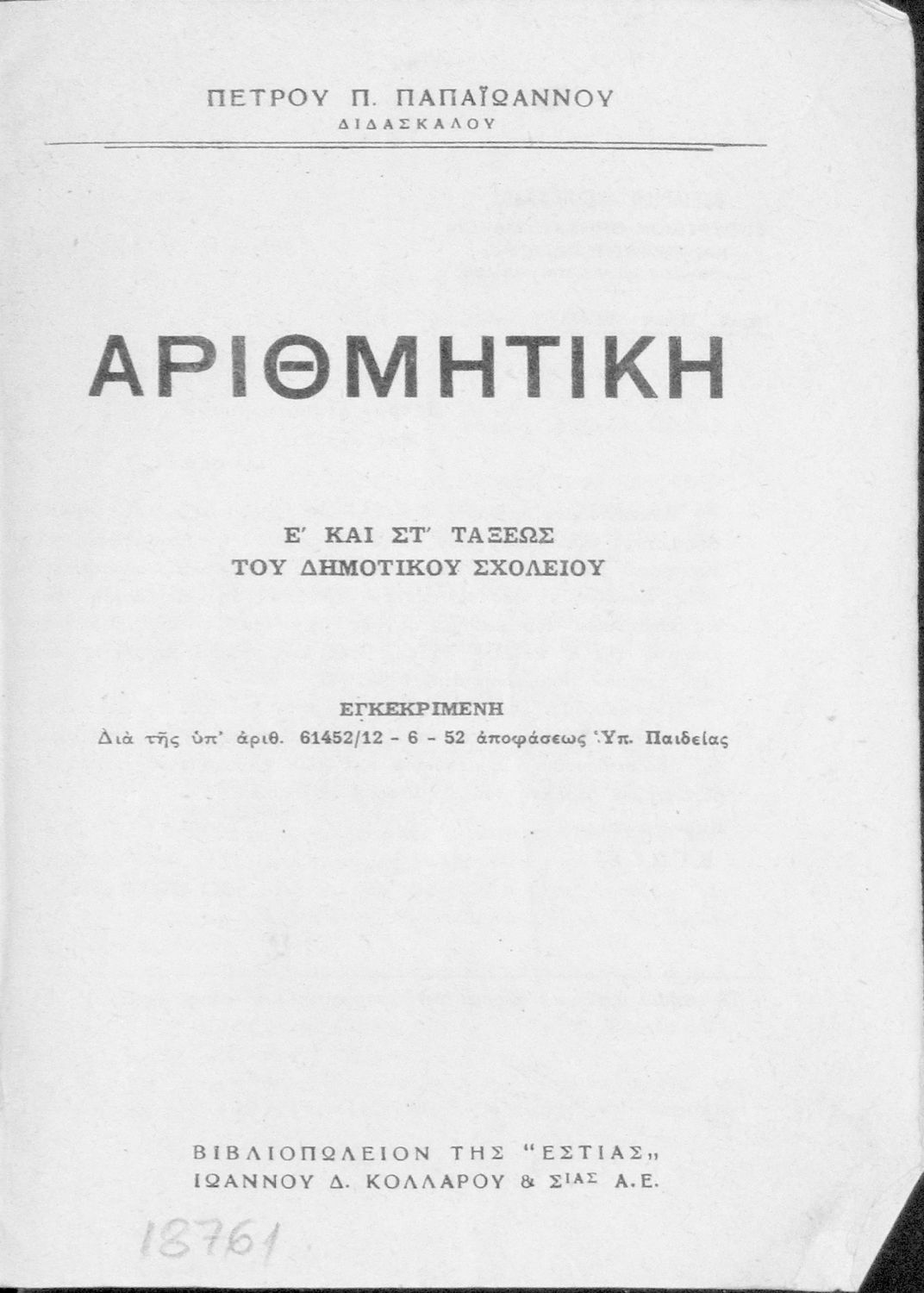 Τίτλος: Αριθμητική Ε΄ και ΣΤ΄ τάξεως του Δημοτικού Σχολείου