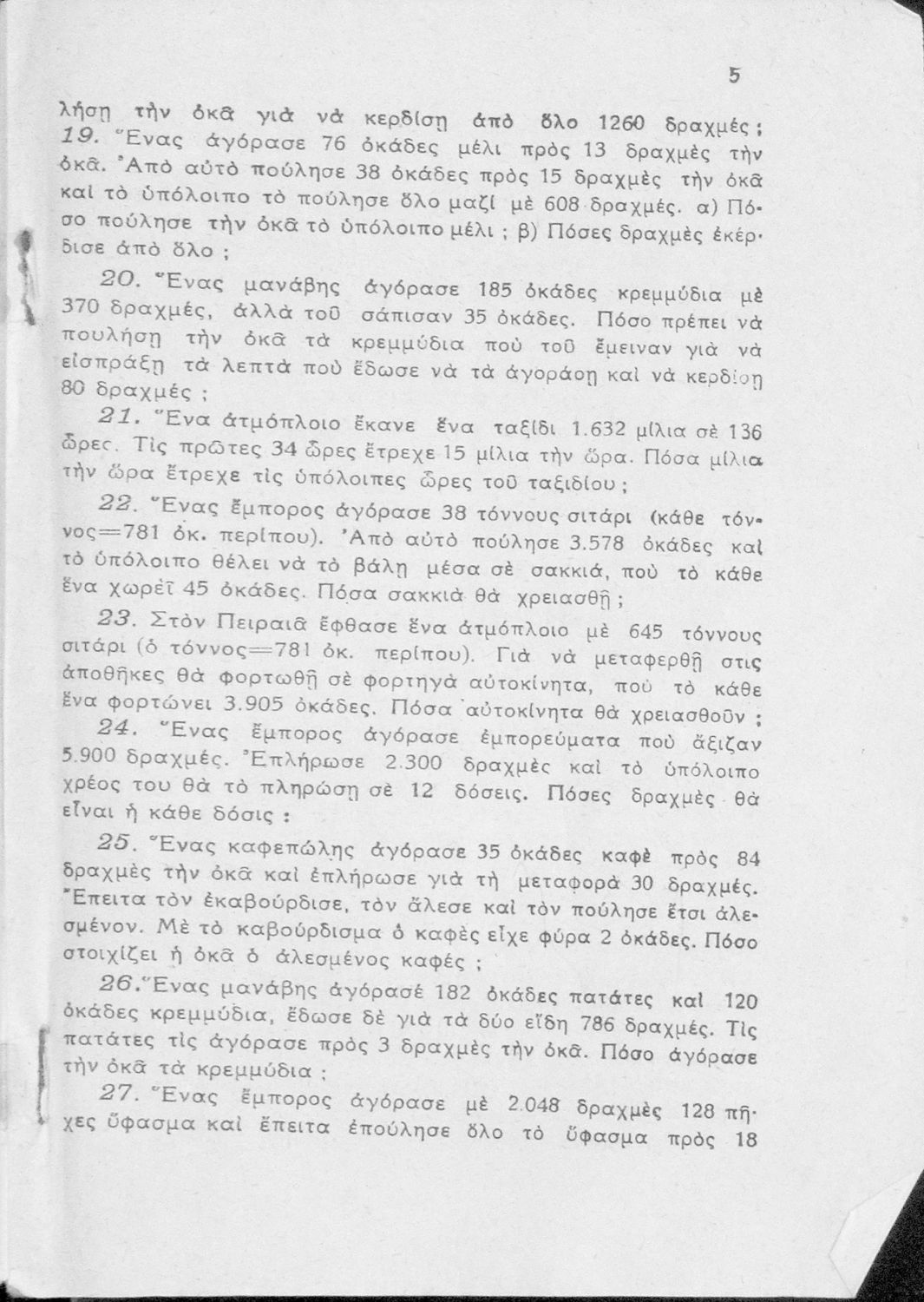 Παρουσίαση περιεχομένου: Μαθητικό βοήθημα Αριθμητικής για τις Ε΄ και ΣΤ΄ Δημοτικού που περιέχει ασκήσεις με επιχειρηματικό προσανατολισμό και εστιάζει στις αριθμητικές πράξεις με κλάσματα και την απλή μέθοδο των τριών.