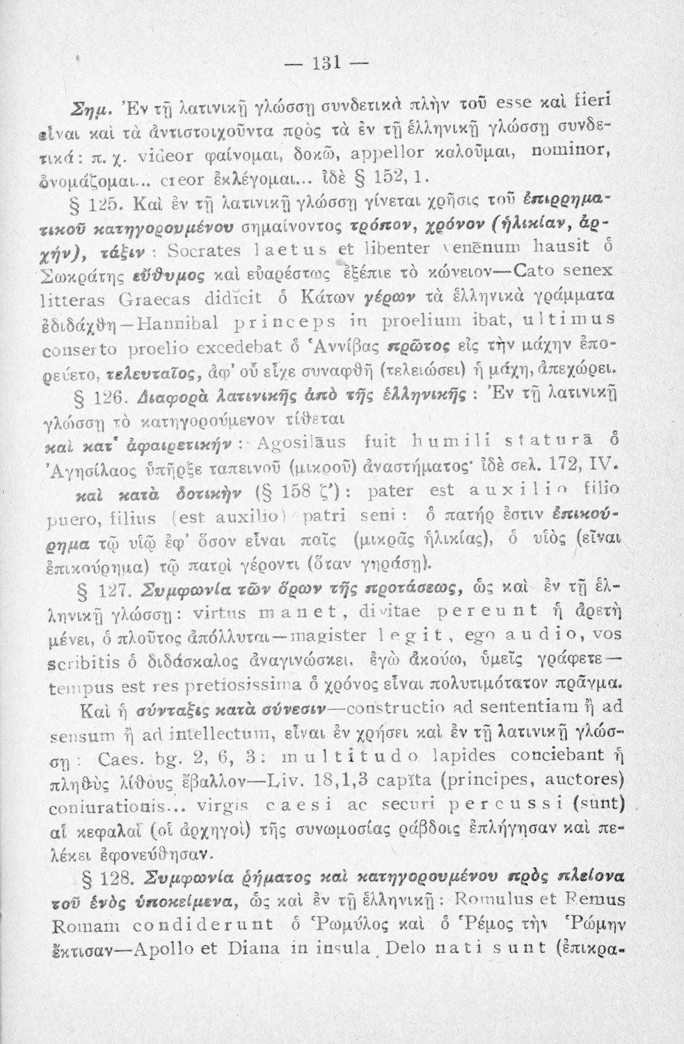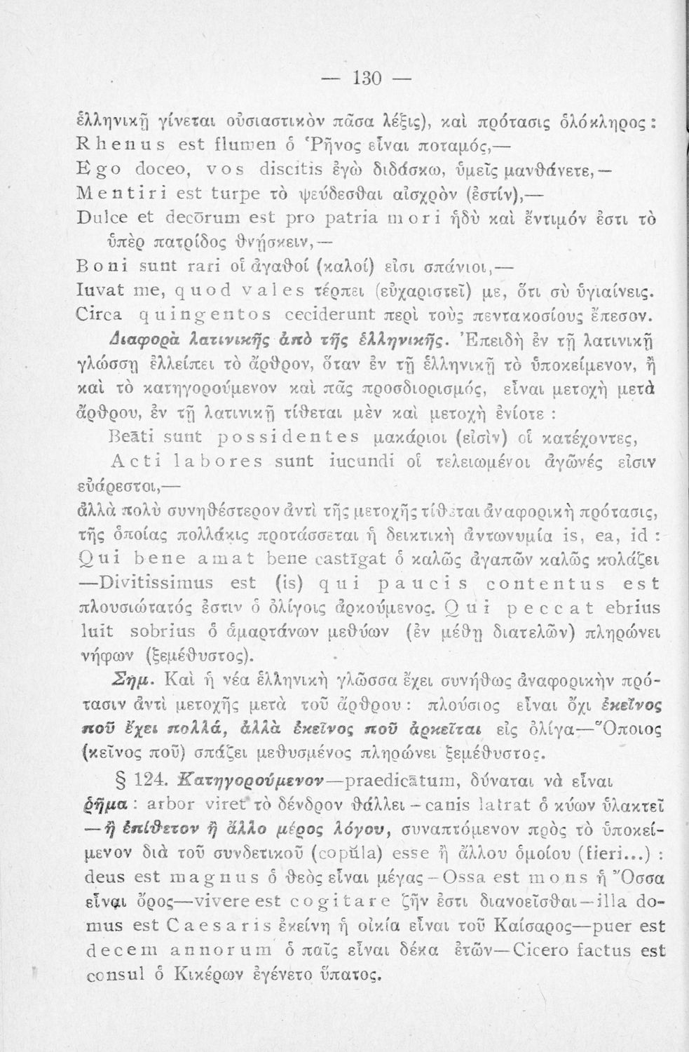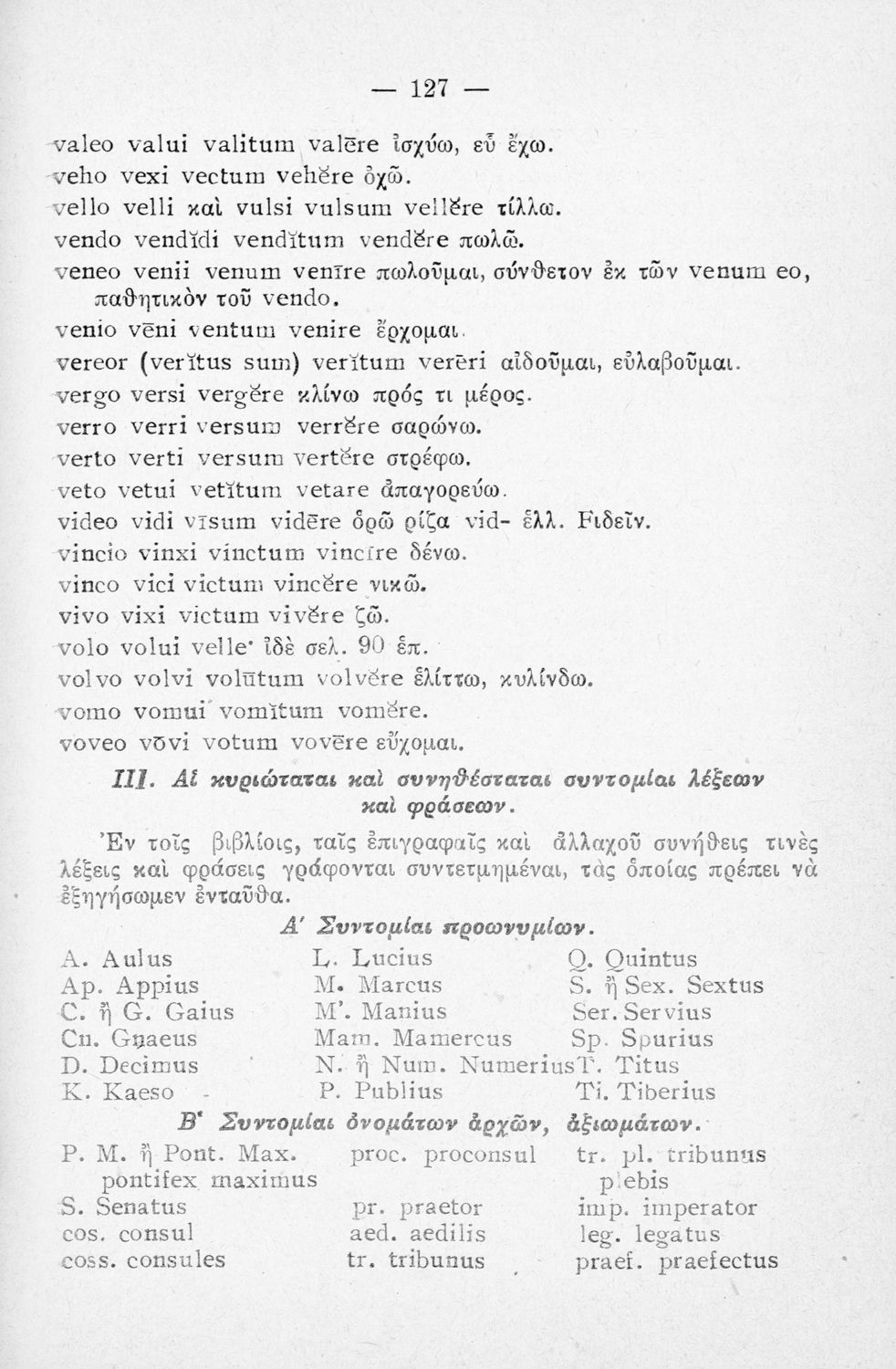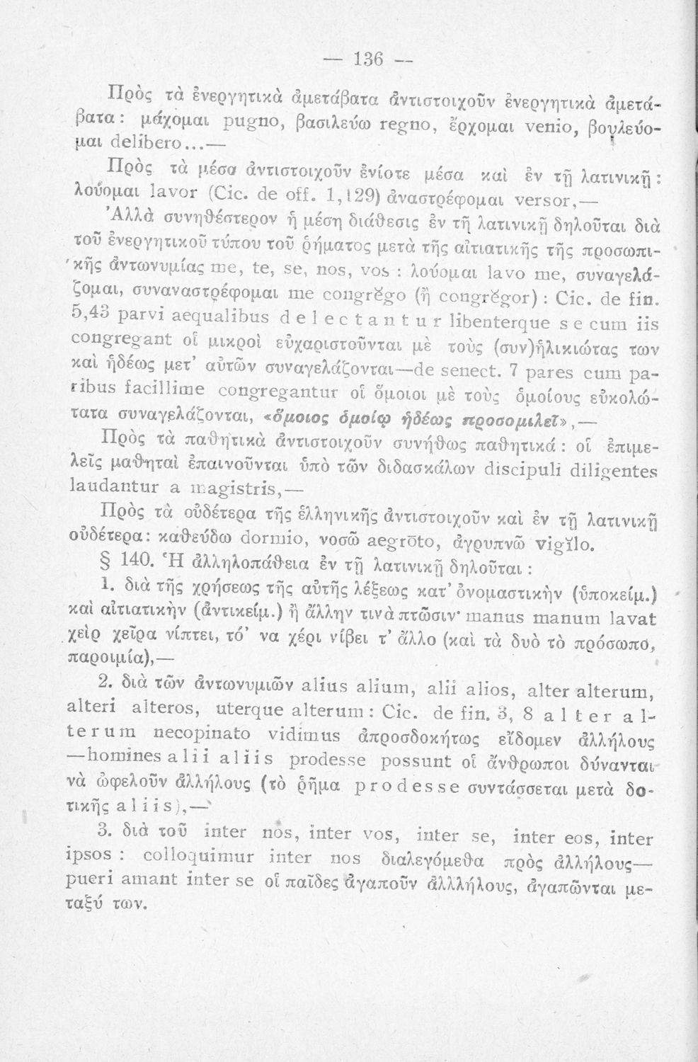 Σχολικό εγχειρίδιο Λατινικών Α΄, Β΄, Γ' Γυμνασίου που περιλαμβάνει γραμματική και συντακτικό και είναι χωρισμένο σε φθογγολογικό, τυπολογικό και ετυμολογικό μέρος.